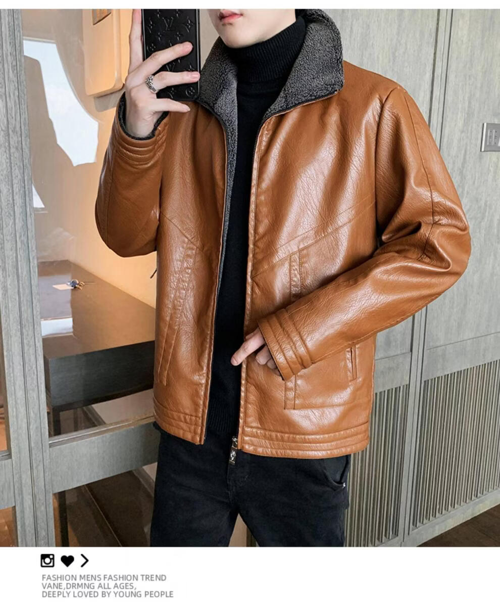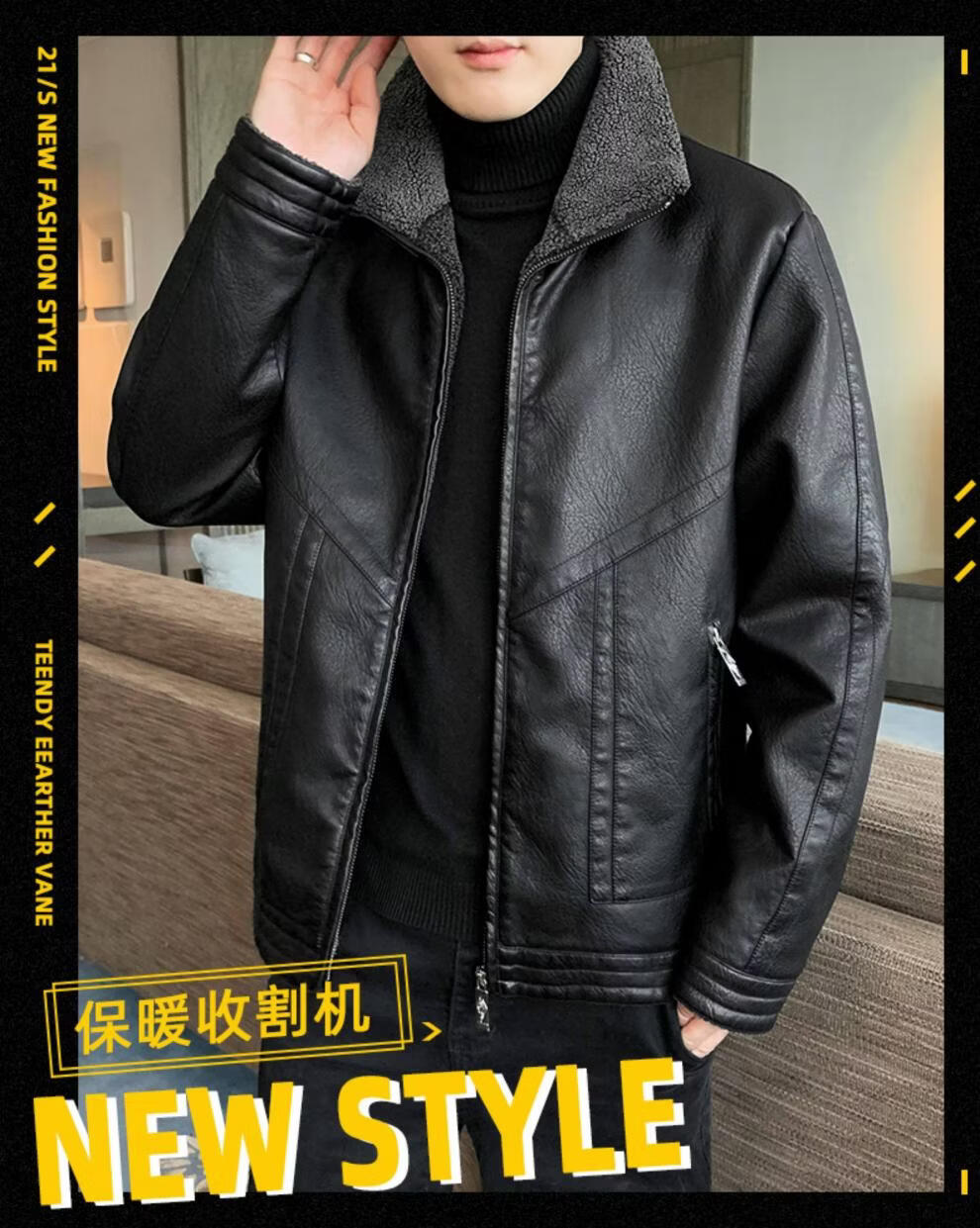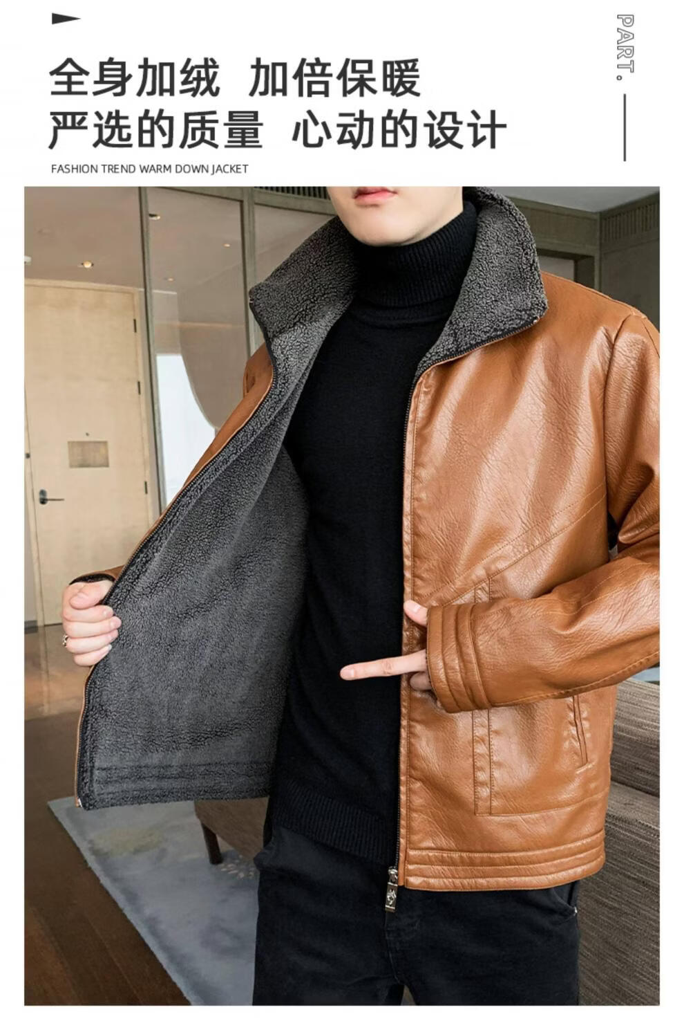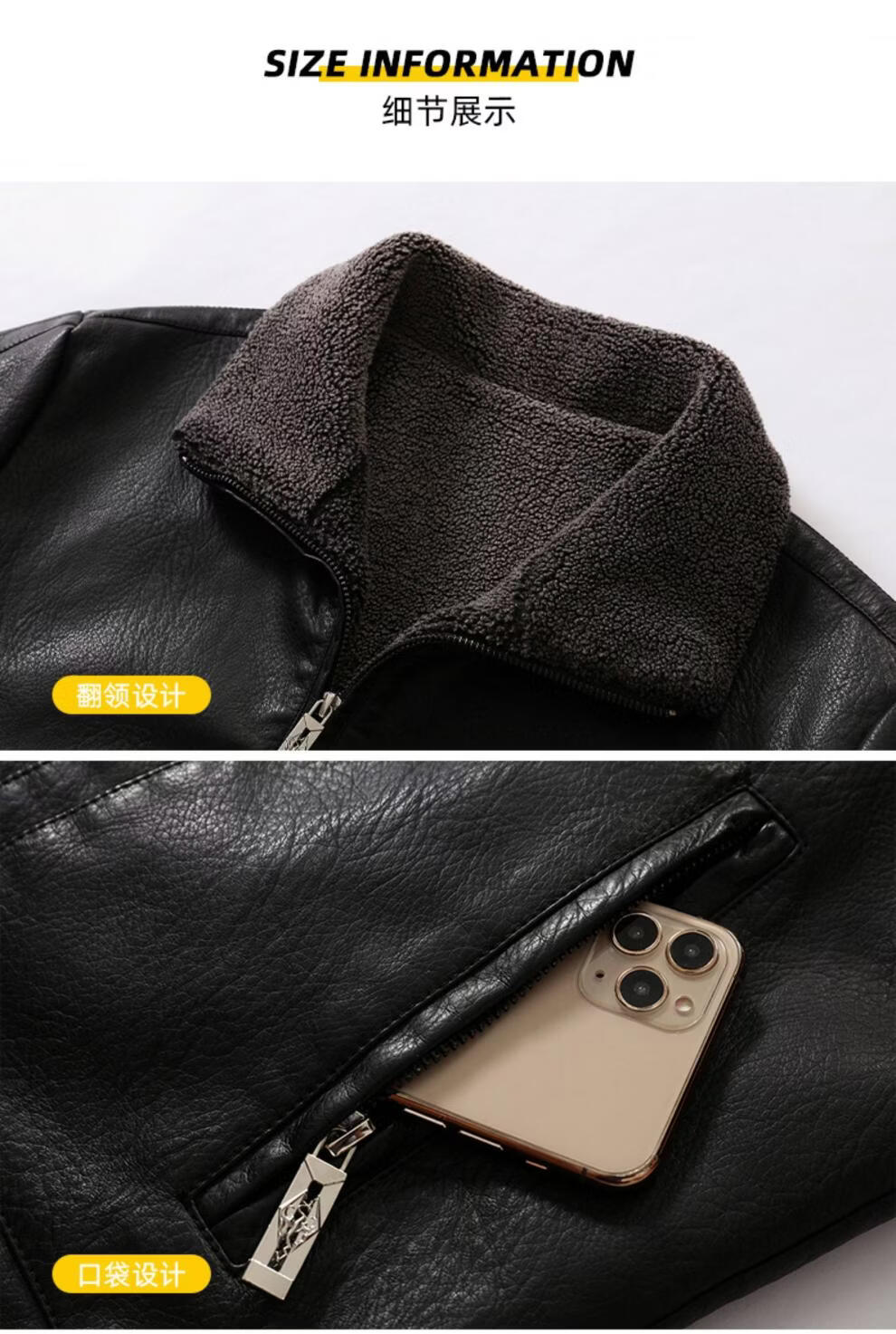 Hengyuanxiang autumn and winter leather jacket men's velvet thickened fur all-in-one warm jacket fat man loose plus size leather jacket trend black 6917 L