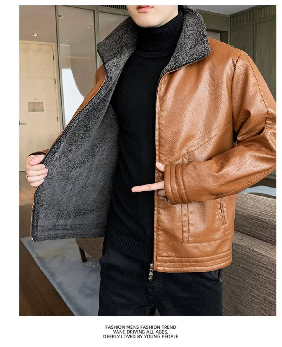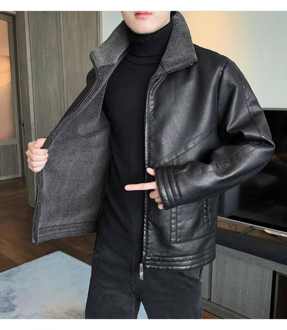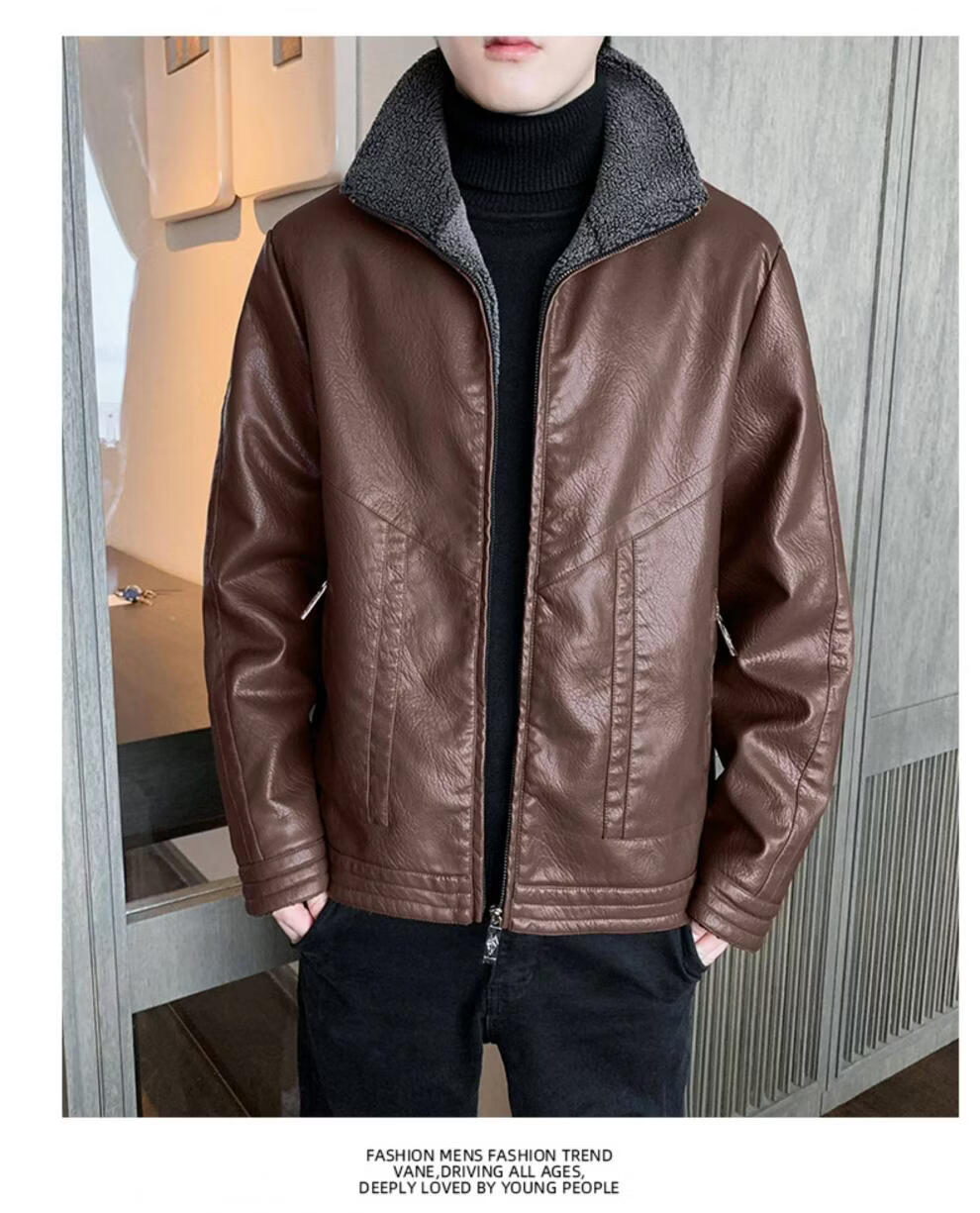 Hengyuanxiang autumn and winter leather jacket men's velvet thickened fur all-in-one warm jacket fat man loose plus size leather jacket trend black 6917 L