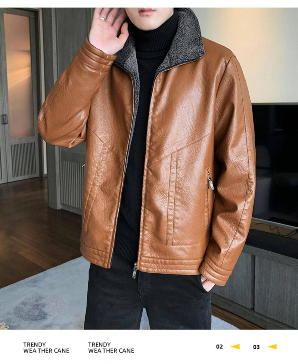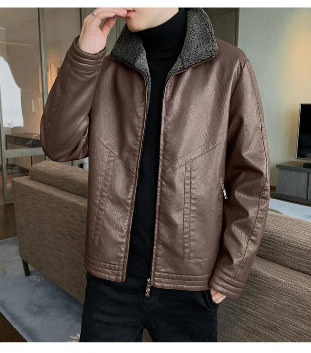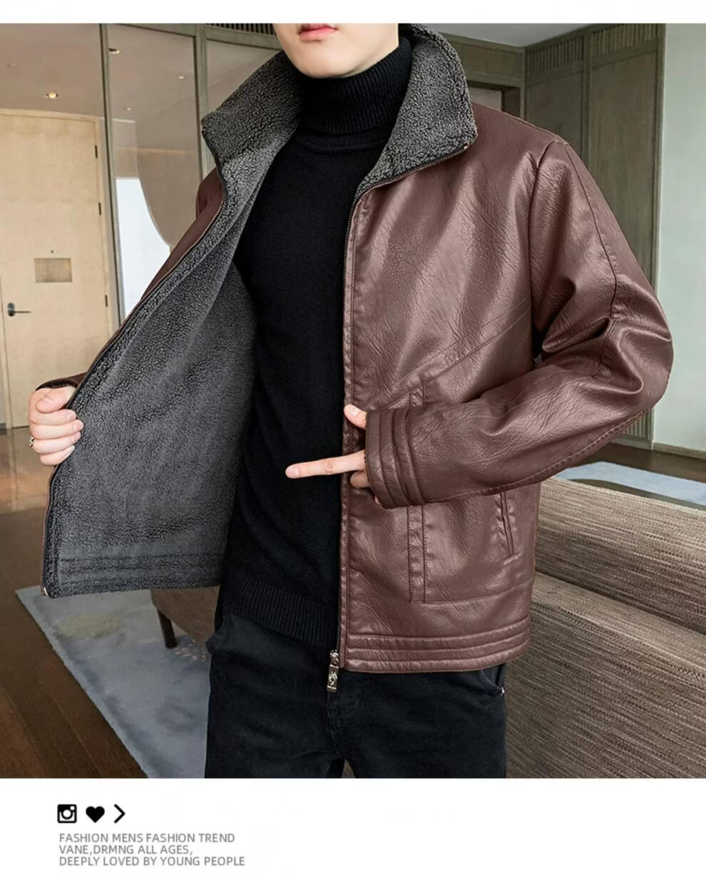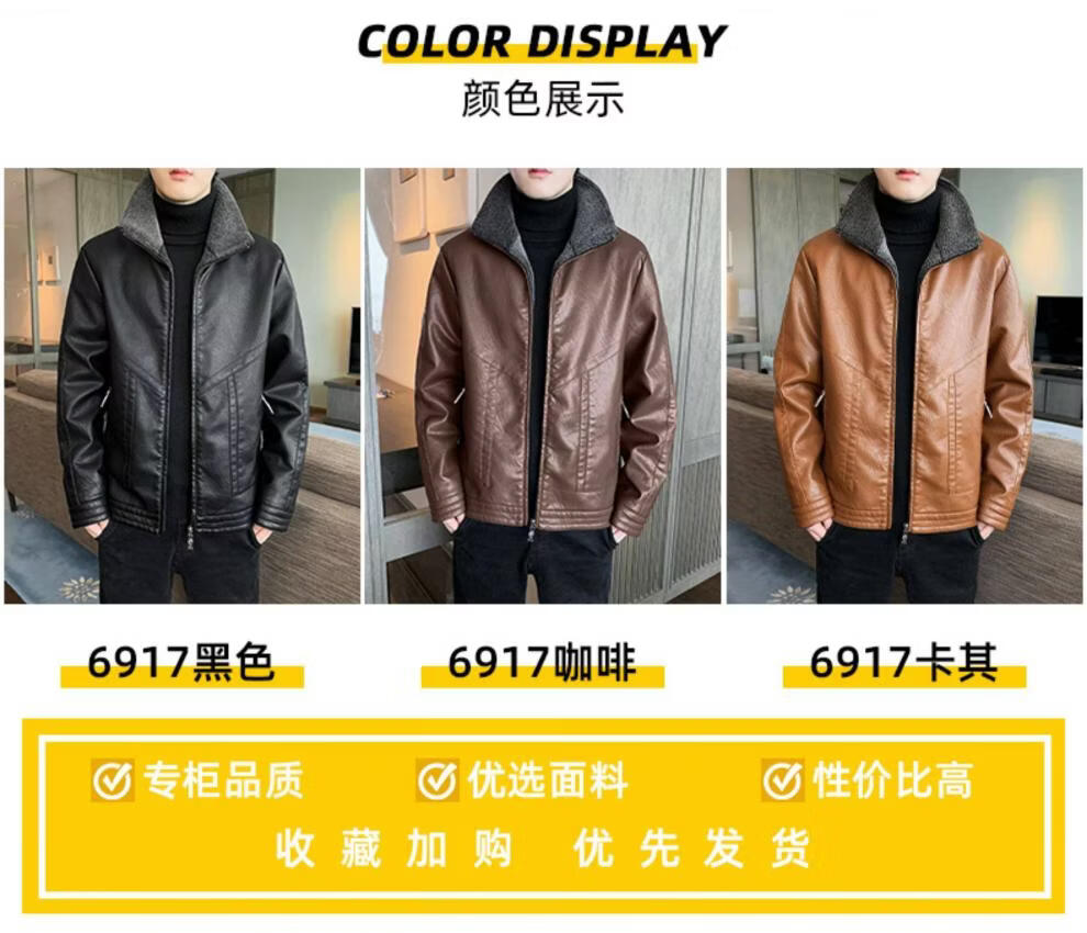 Hengyuanxiang autumn and winter leather jacket men's velvet thickened fur all-in-one warm jacket fat man loose plus size leather jacket trend black 6917 L