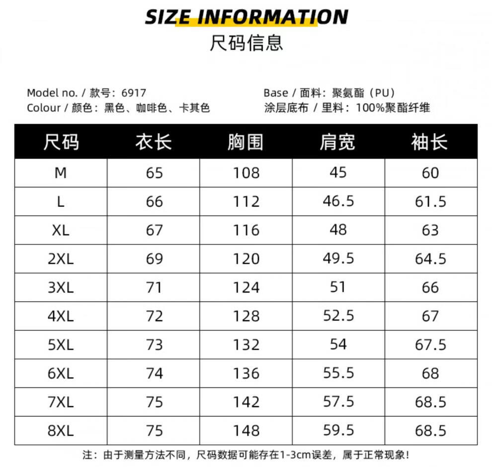 China (cm) 165 / 88-90 170 / 96-98 175 / 108-110 180 / 118-122 185 / 126-130