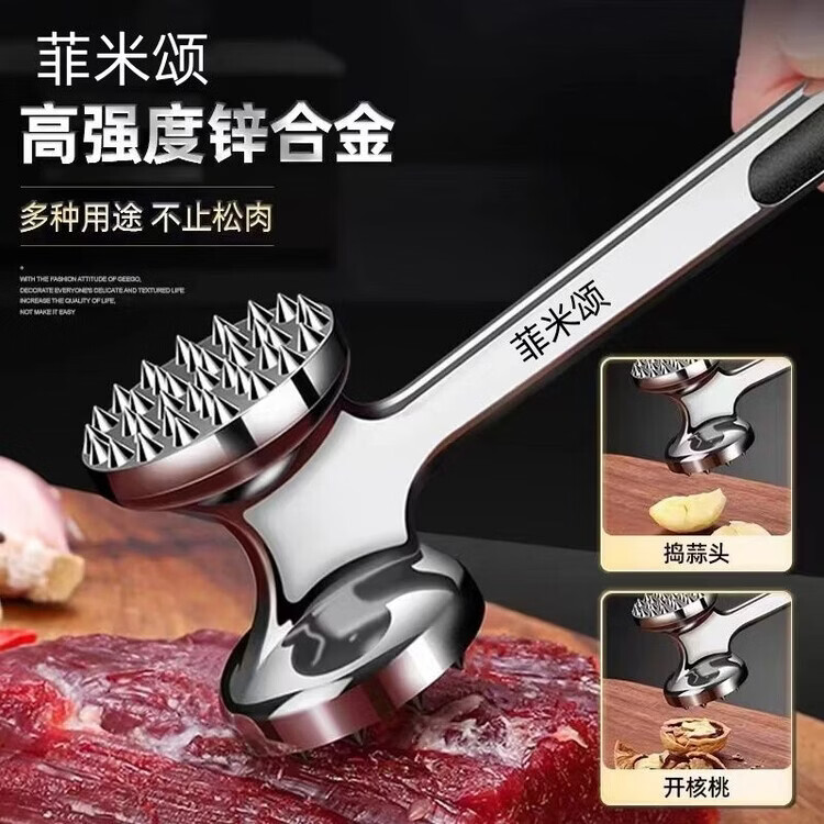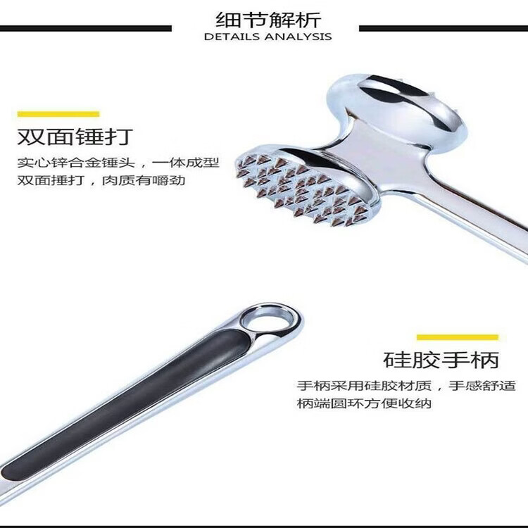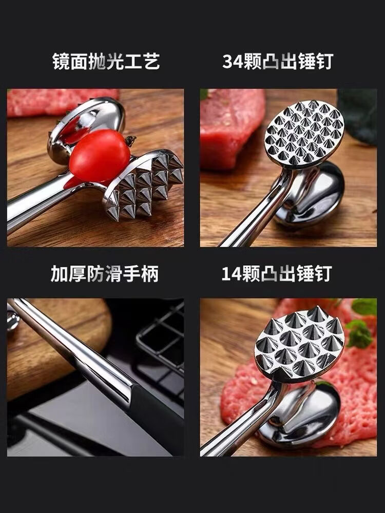 Martillo para carne de acero inoxidable Miaopule 304, martillo de doble cara para uso doméstico, martillo para carne especial para chuletas de cerdo, filetes y chuletas de pollo, material estándar alemán, martillo para carne sólido de doble cara con agujeros y gran tamaño
