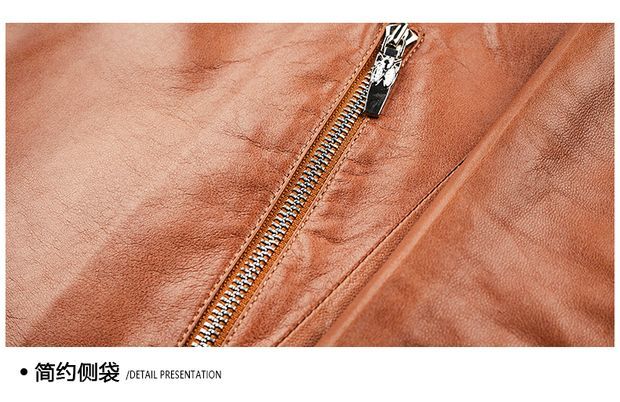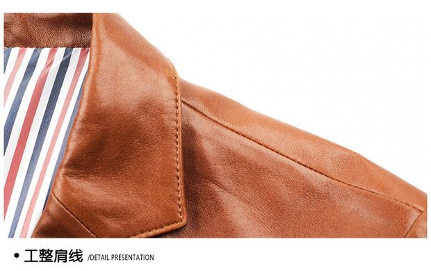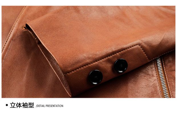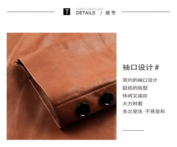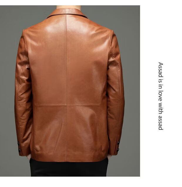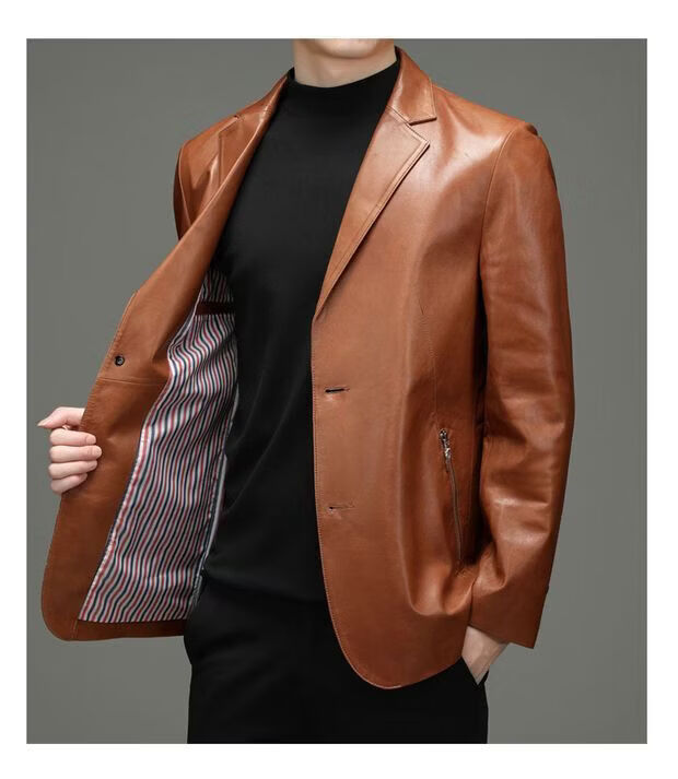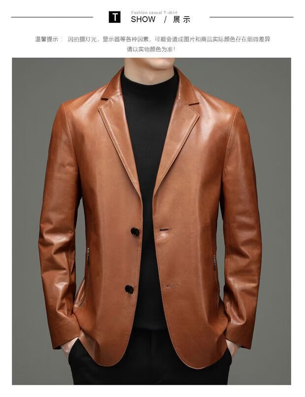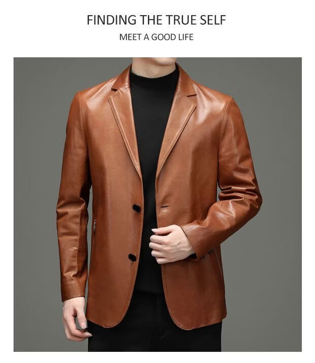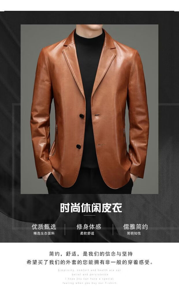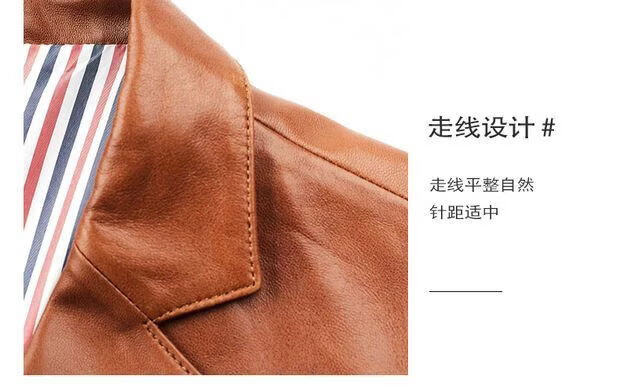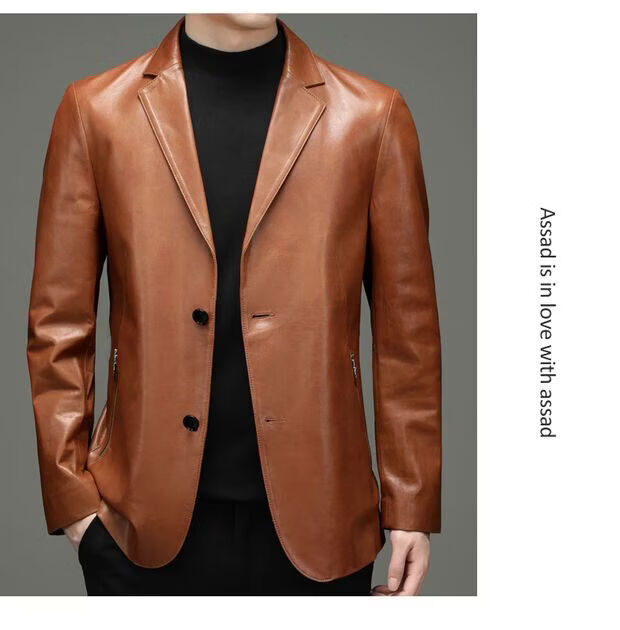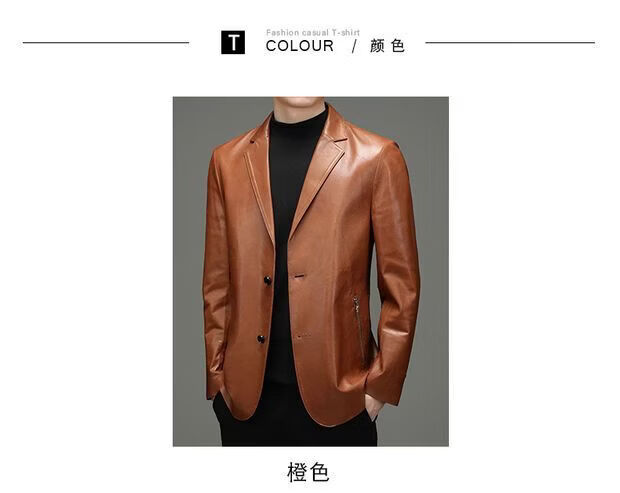 Chaomengcheng Autumn and Winter Men's Sheepskin Genuine Leather Suit Young and Middle-aged Leather Jacket Dad's Suit Leather Jacket Orange (Haining Sheepskin First-layer Genuine Leather) S 165-(100Jin Jin is equal to within 0.5kg)