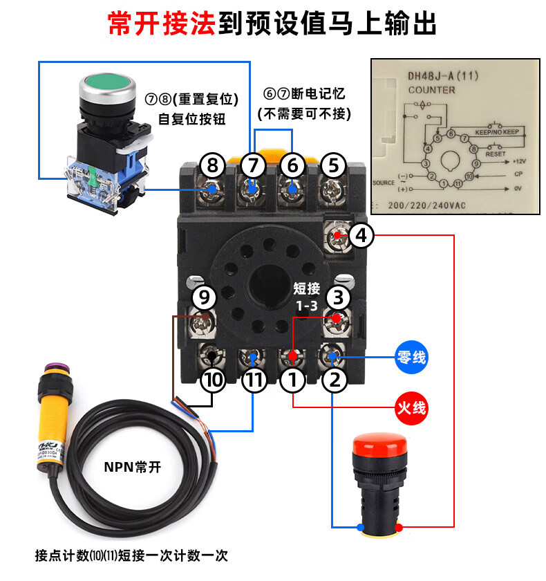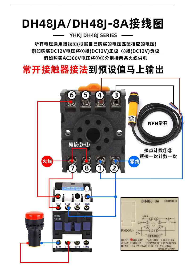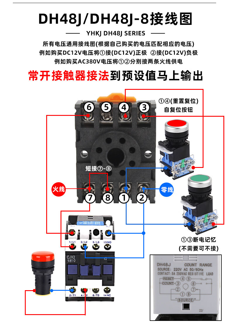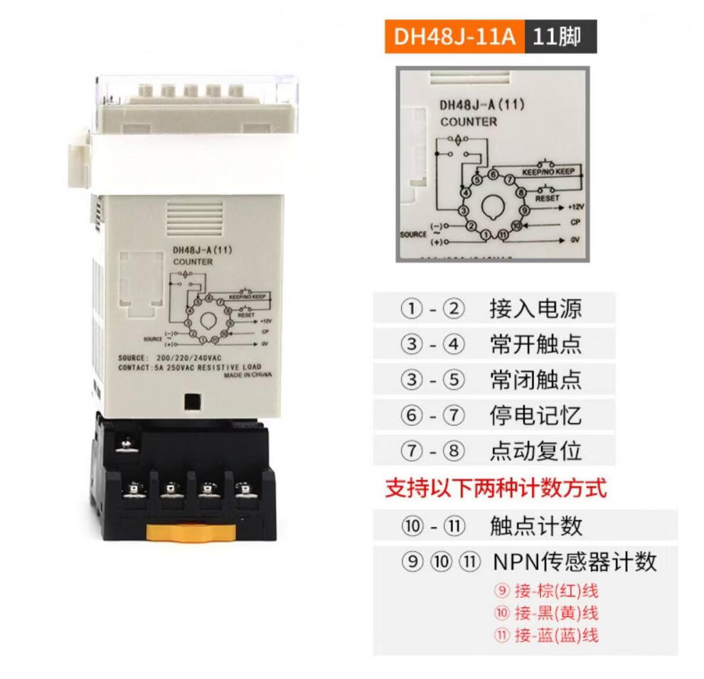 High-precision digital display counter DH48J-8 8A11A power outage memory sensor electronic counting 11 feet DH48J-11A_AC220V