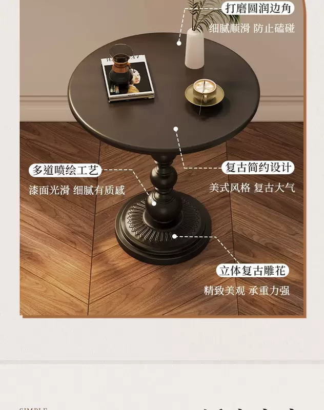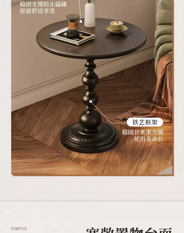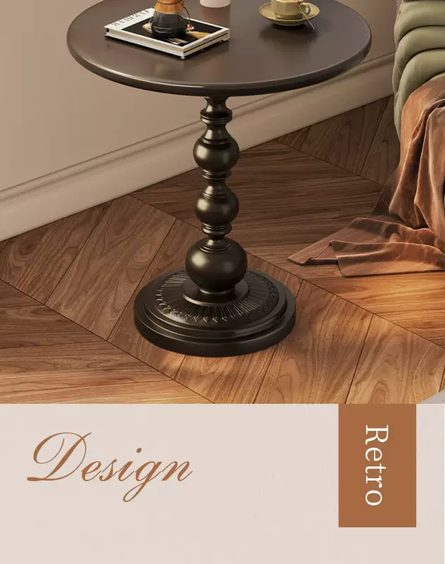 Yusenyi American Retro Living Room Side Table Sofa Side Cabinet Light Luxury Small Coffee Table Creative Bedside Table Small Apartment Corner Table Small Round Table Matte Black (Diameter 40 Height 40) Low Table