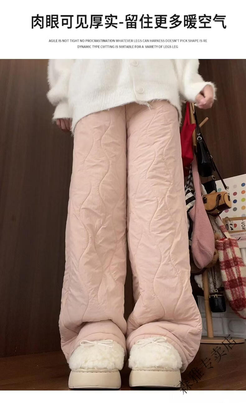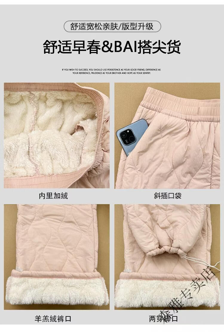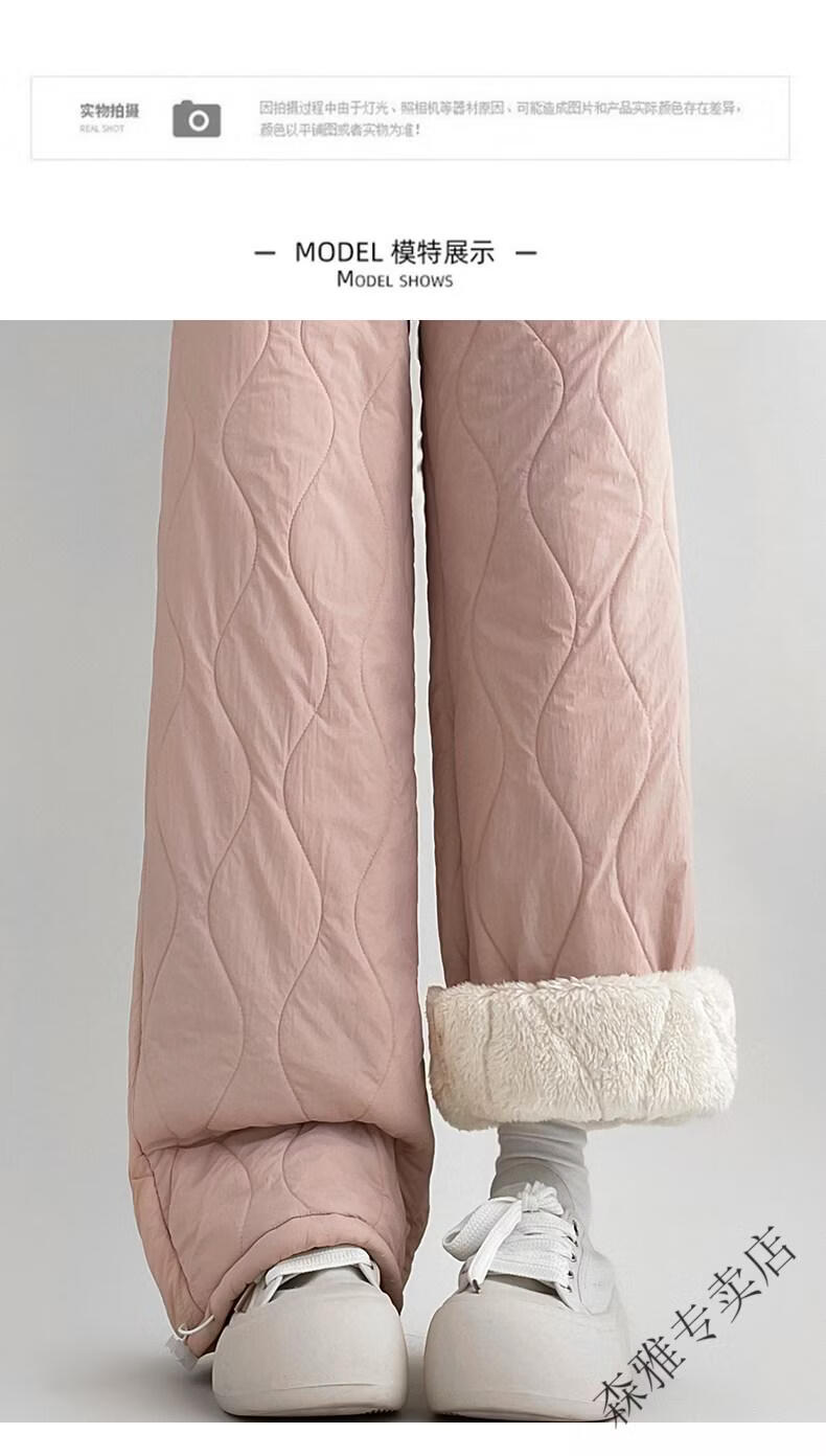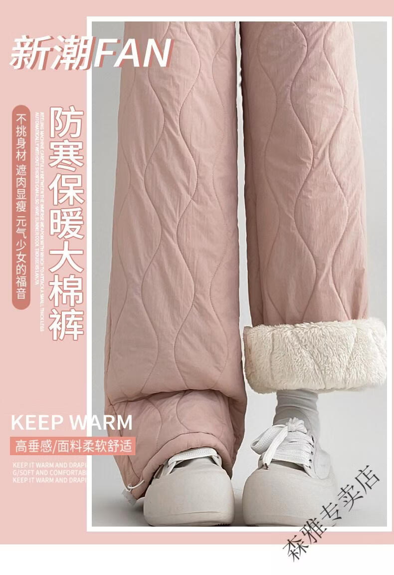 Hengyuanxiang lamb velvet cotton pants for women in autumn and winter 2026 new Northeastern extra thick warm velvet trousers spliced with plush leg wide leg trousers Extra thick lamb velvet style - off-white Extended style High quality S Recommended weight 80-90 Jin Jin is equal to 0.5 kg