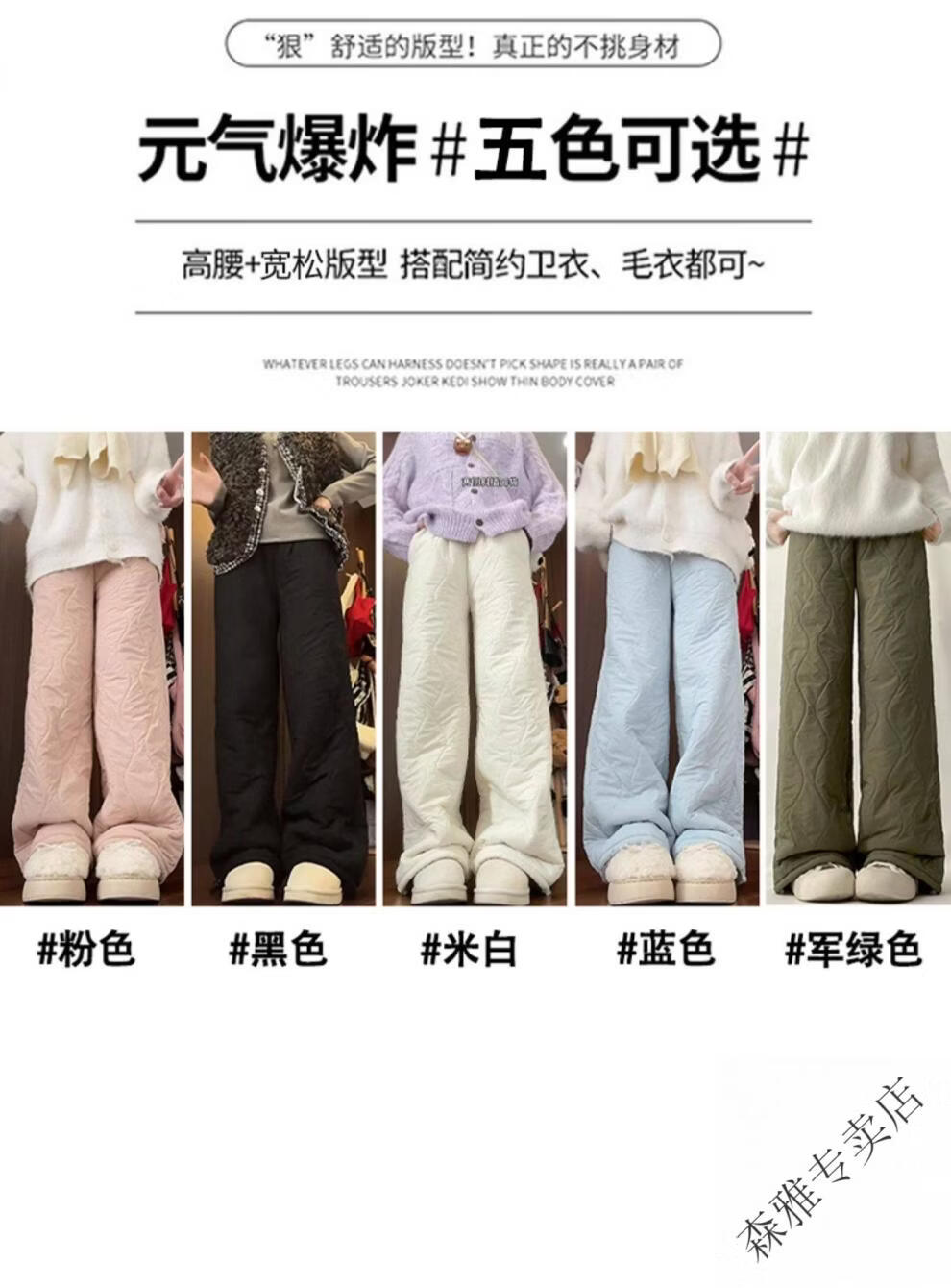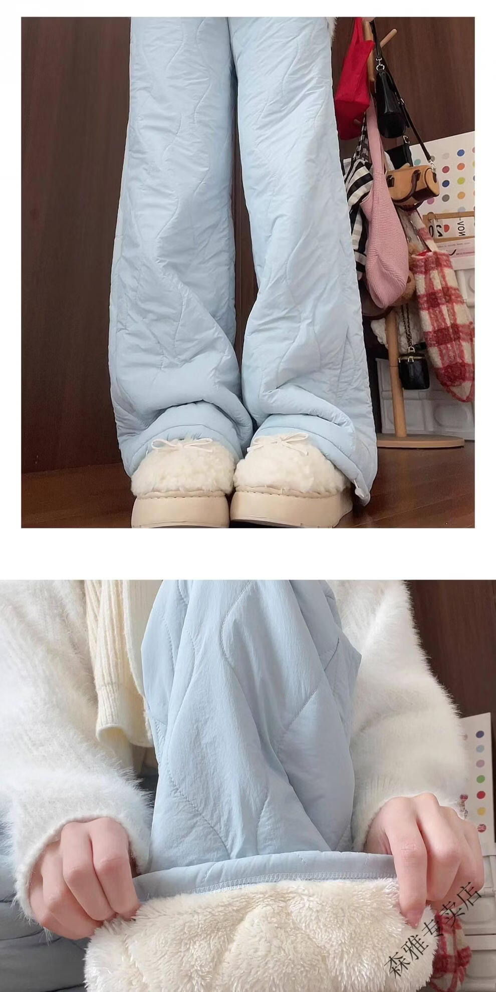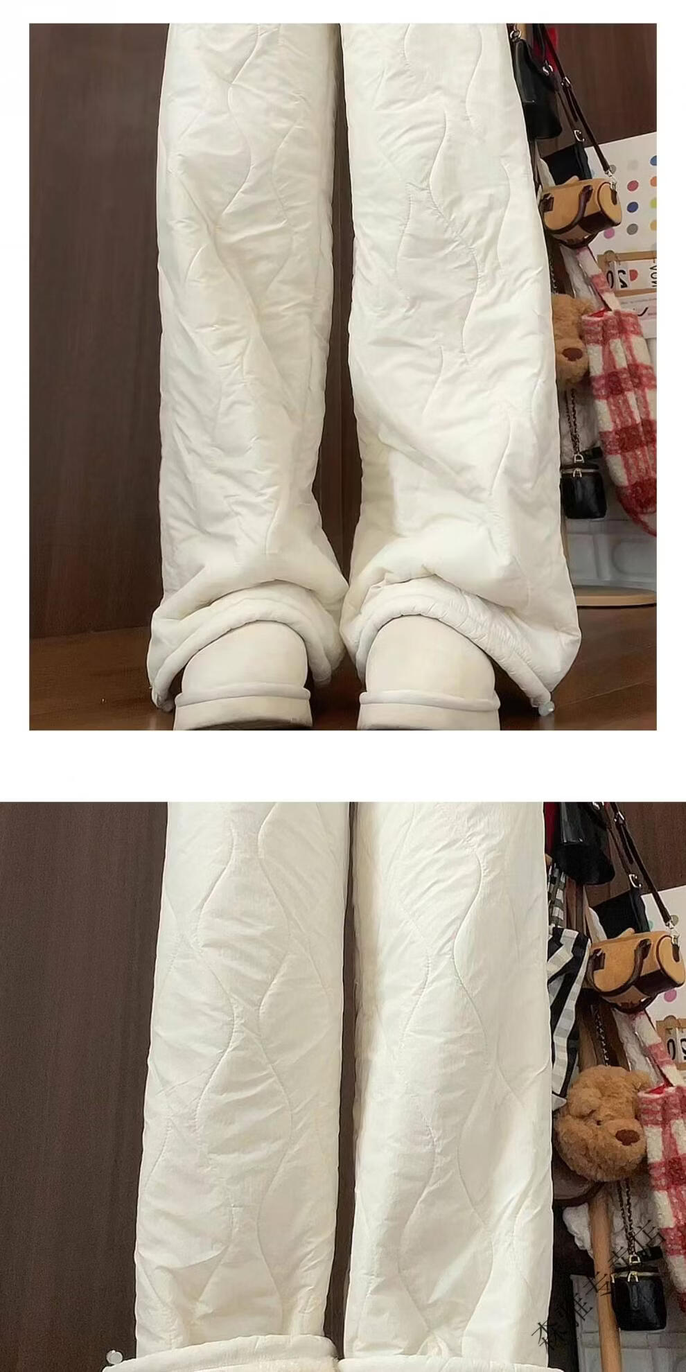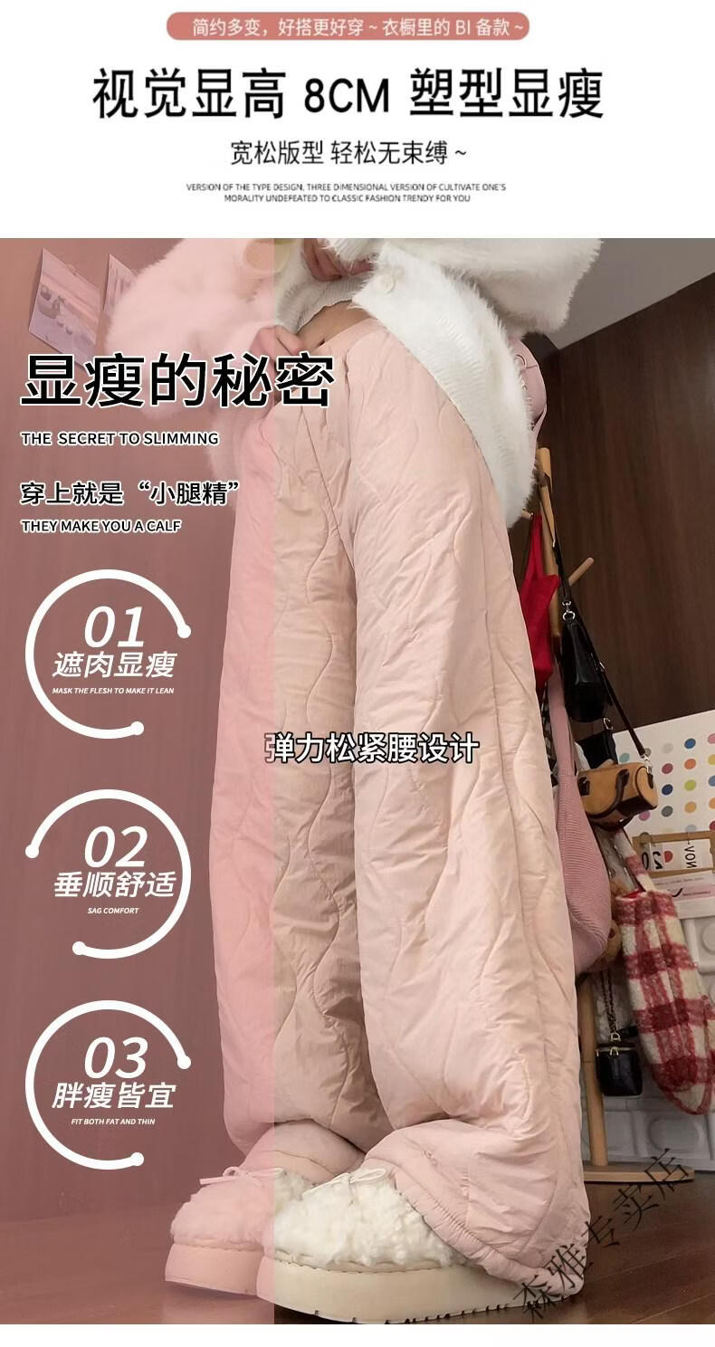 Hengyuanxiang lamb velvet cotton pants for women in autumn and winter 2026 new Northeastern extra thick warm velvet trousers spliced with plush leg wide leg trousers Extra thick lamb velvet style - off-white Extended style High quality S Recommended weight 80-90 Jin Jin is equal to 0.5 kg