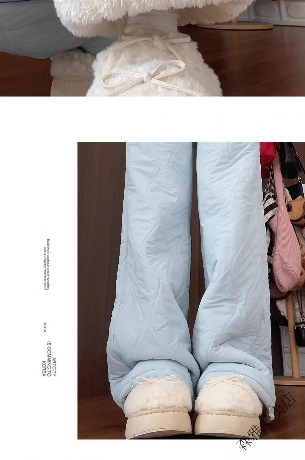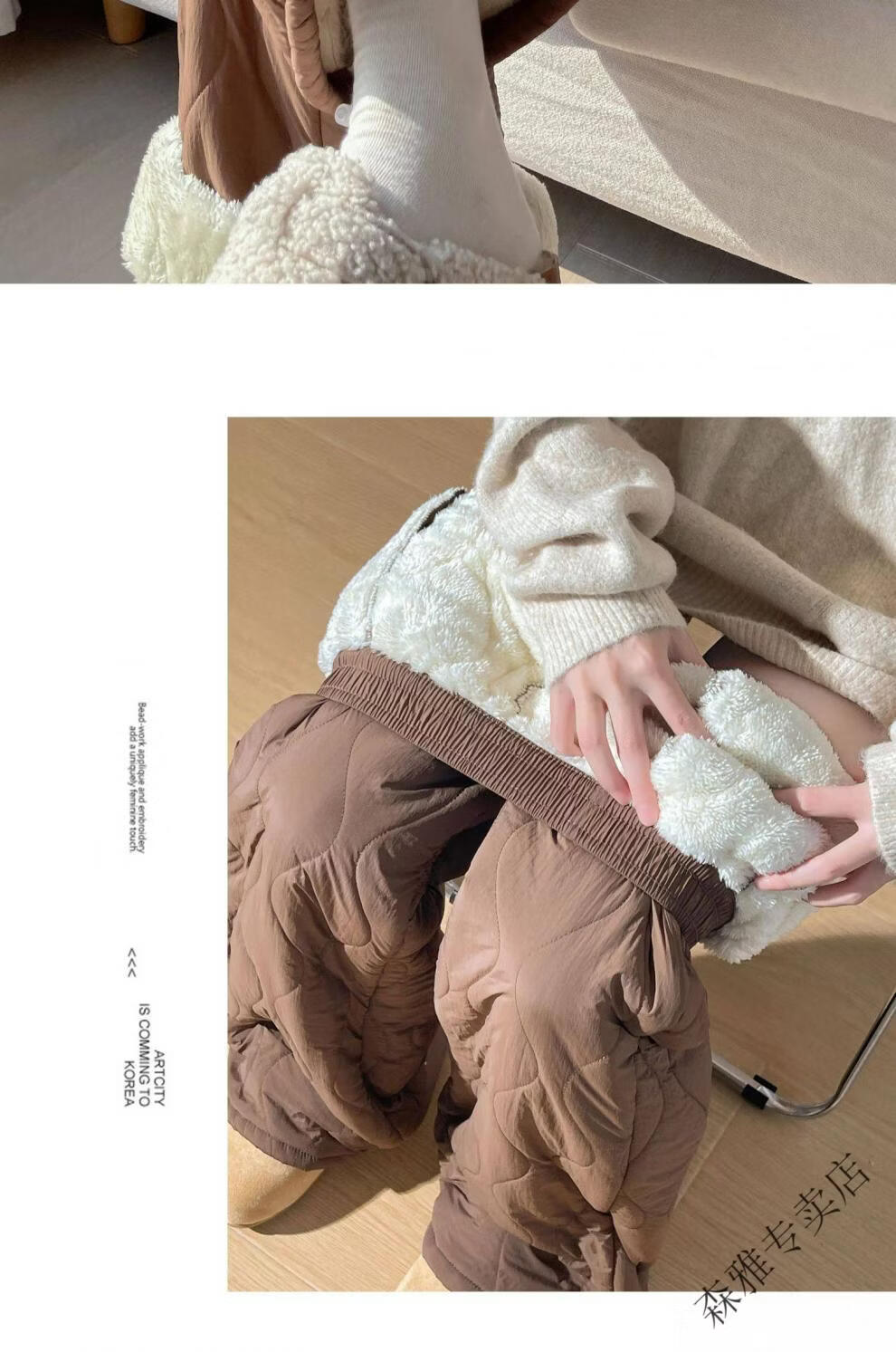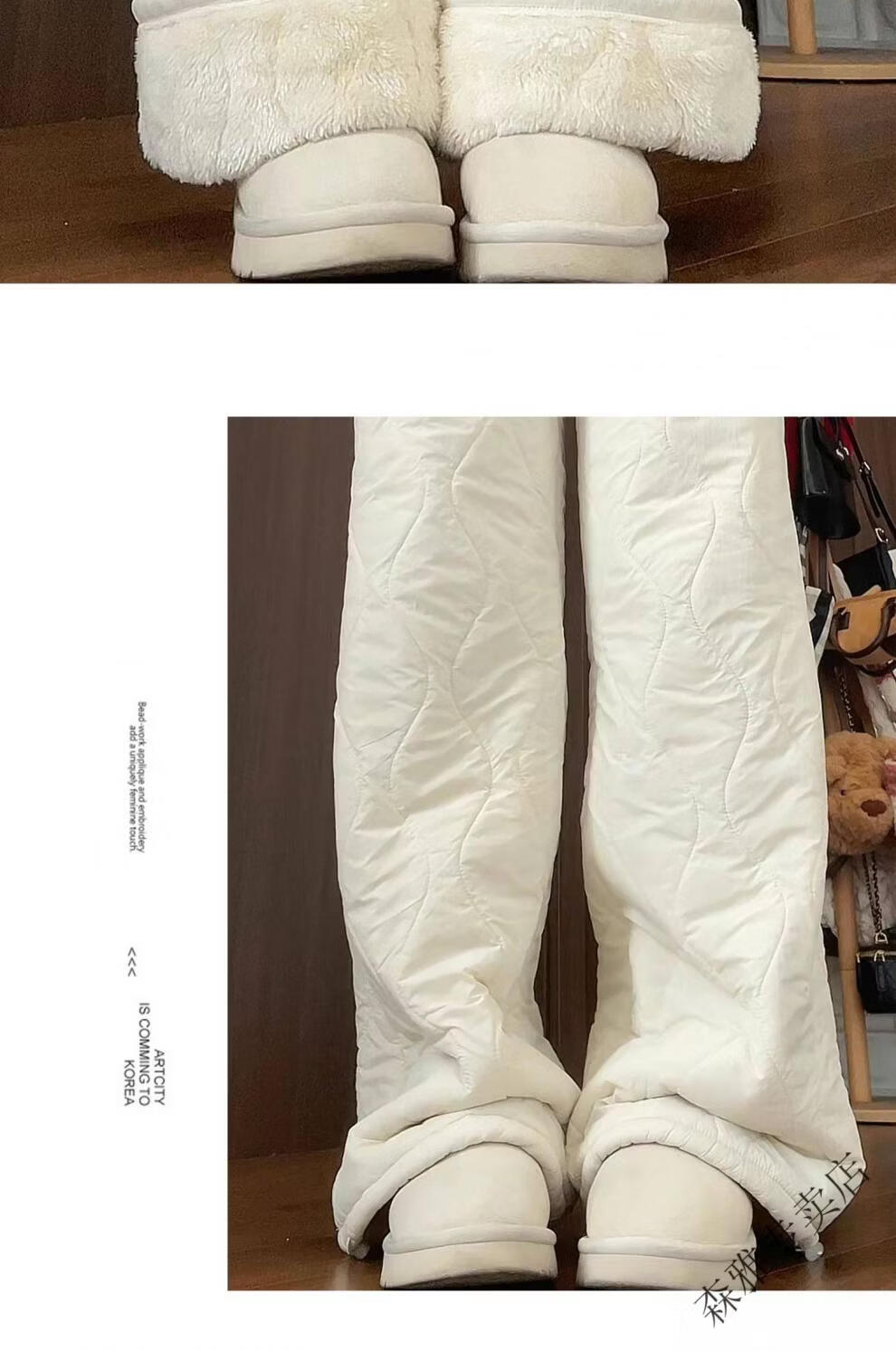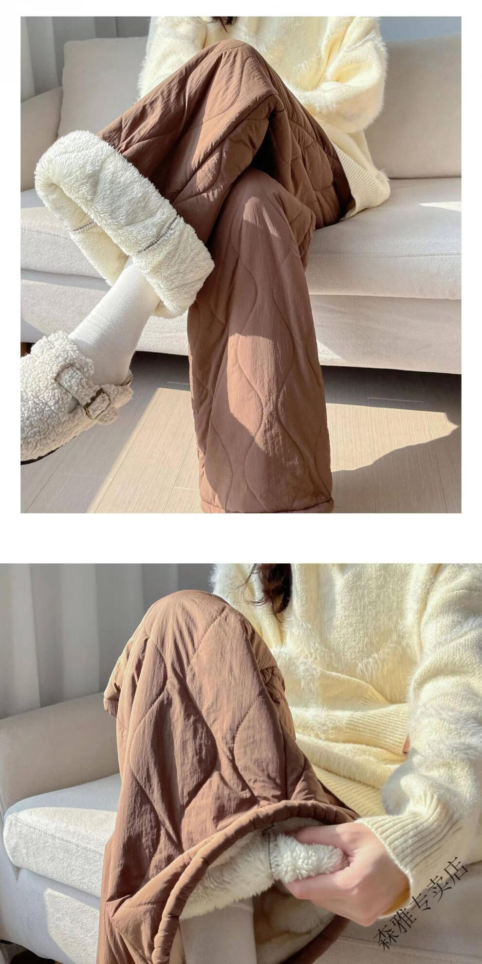 Hengyuanxiang lamb velvet cotton pants for women in autumn and winter 2026 new Northeastern extra thick warm velvet trousers spliced with plush leg wide leg trousers Extra thick lamb velvet style - off-white Extended style High quality S Recommended weight 80-90 Jin Jin is equal to 0.5 kg