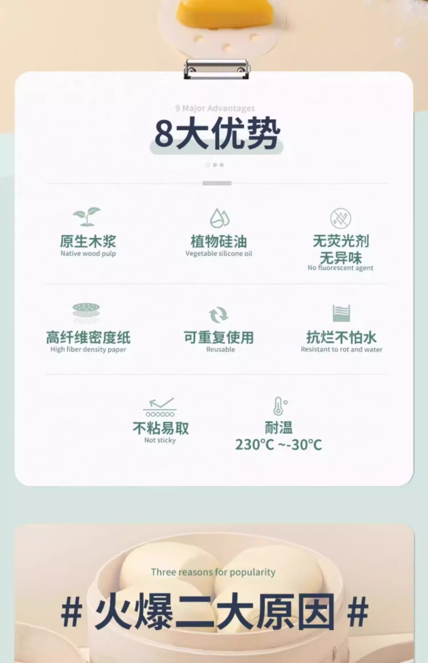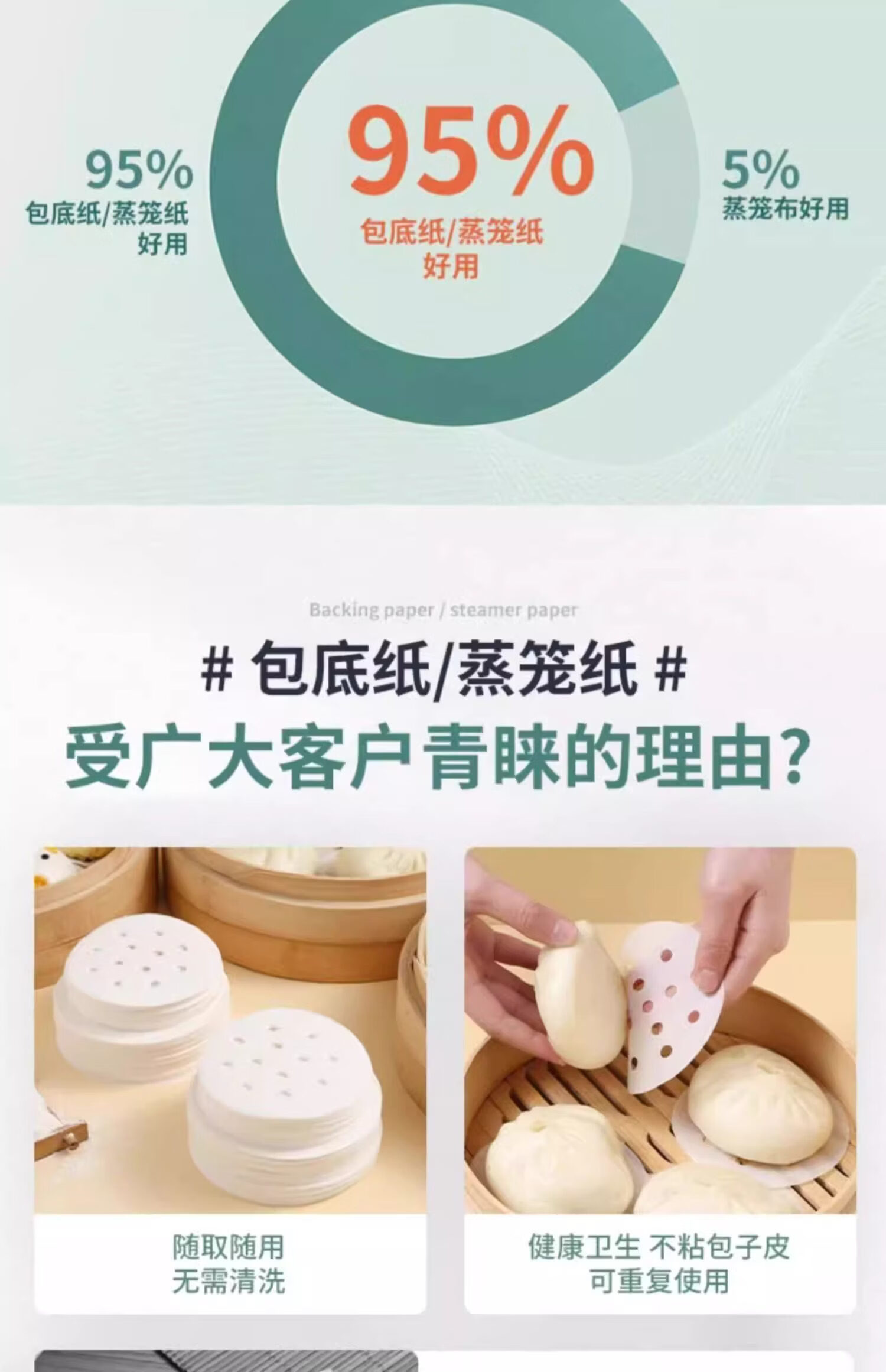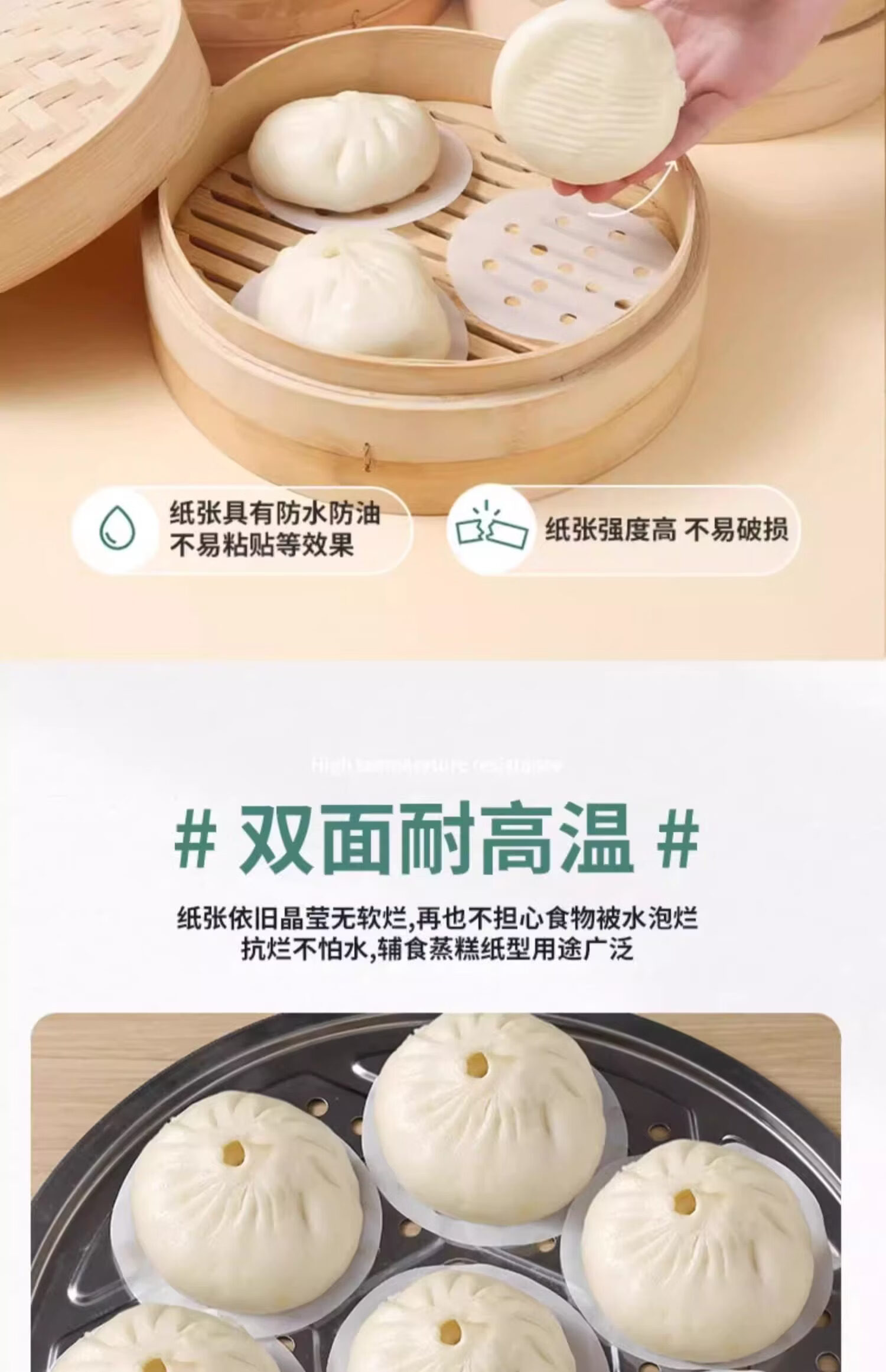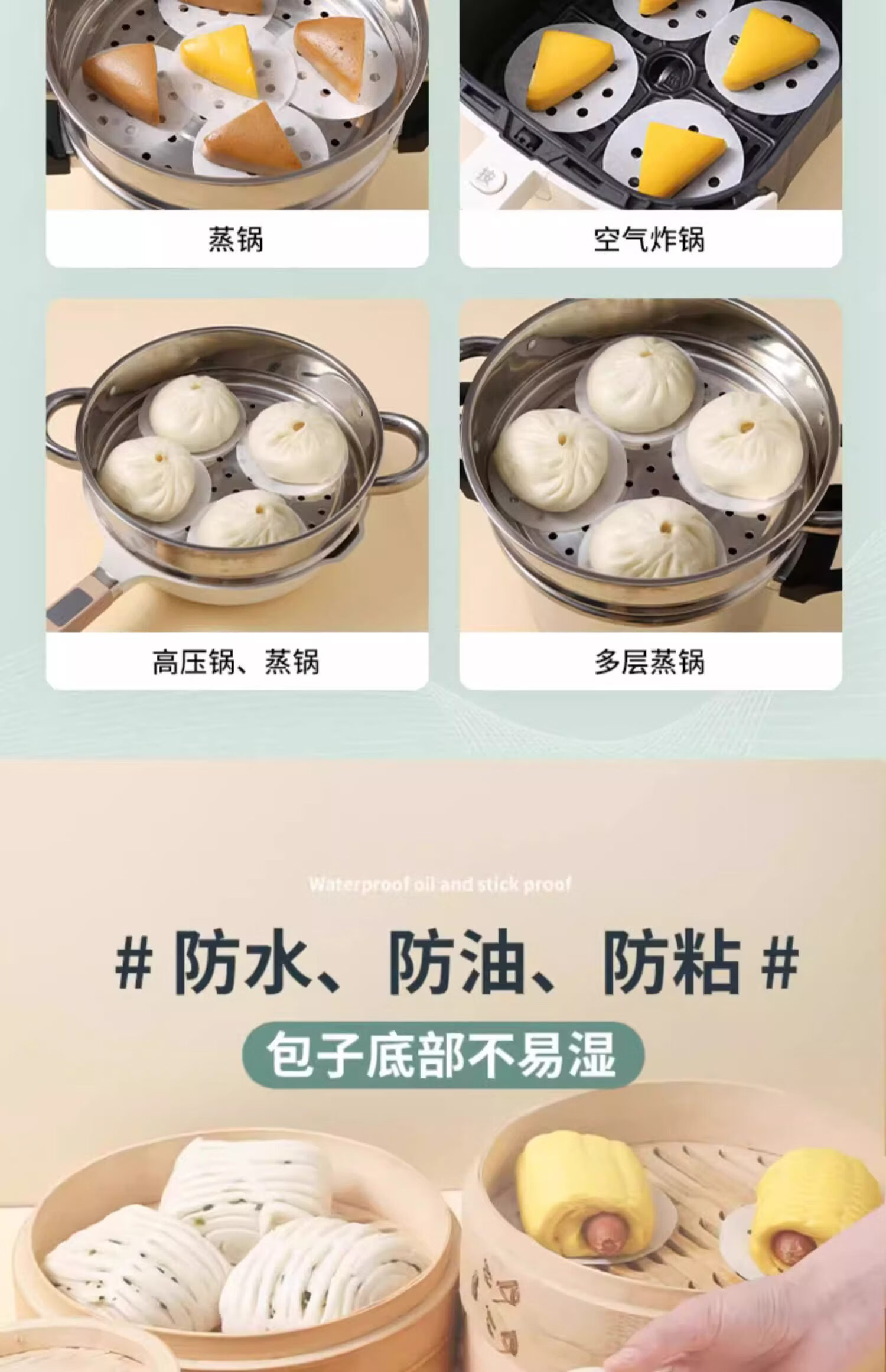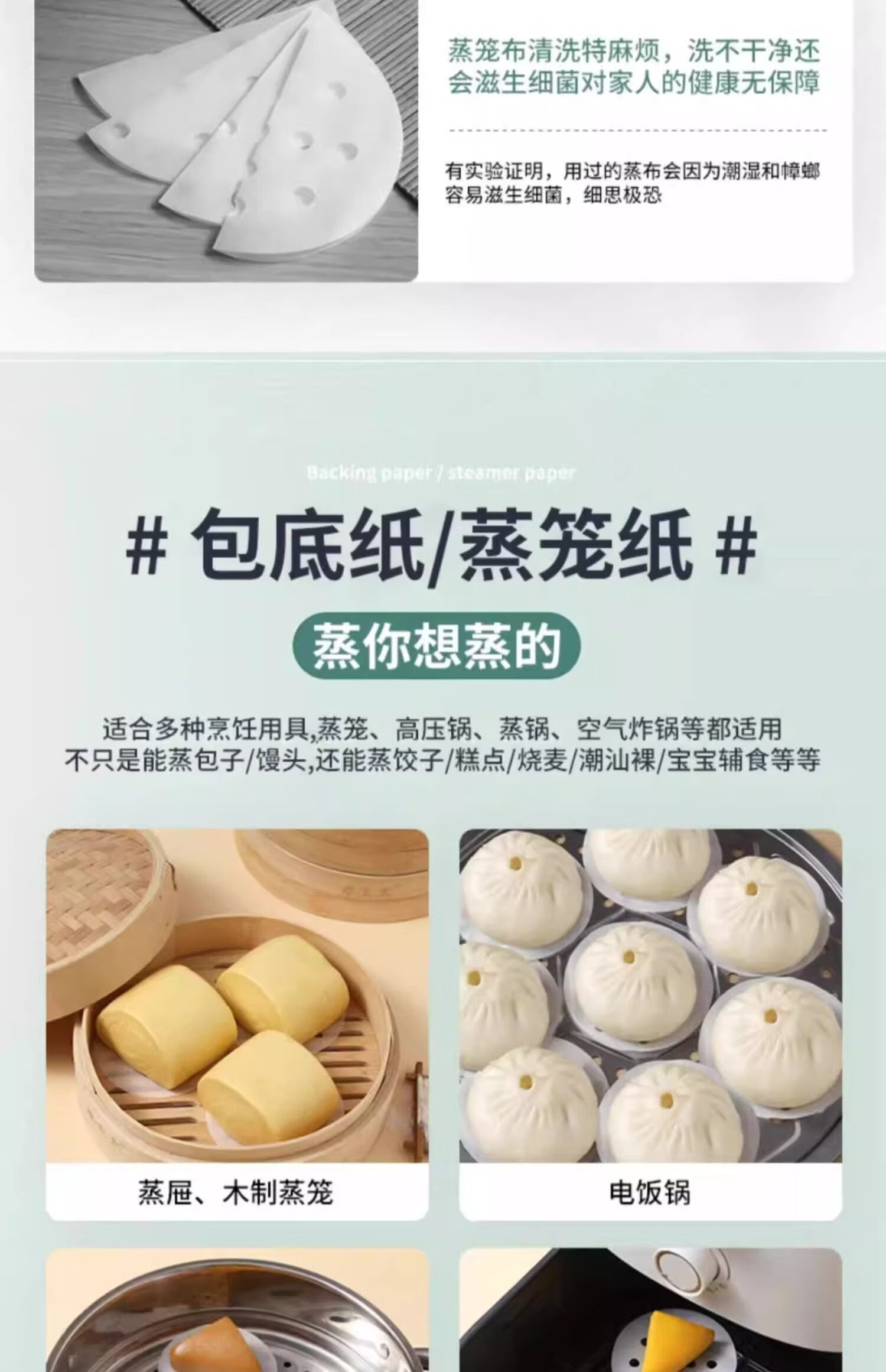 Shouli steamer paper steamed bun pad paper food-grade household special steamer cloth pad steamed bun pad disposable oil paper white 100 sheets 9cm