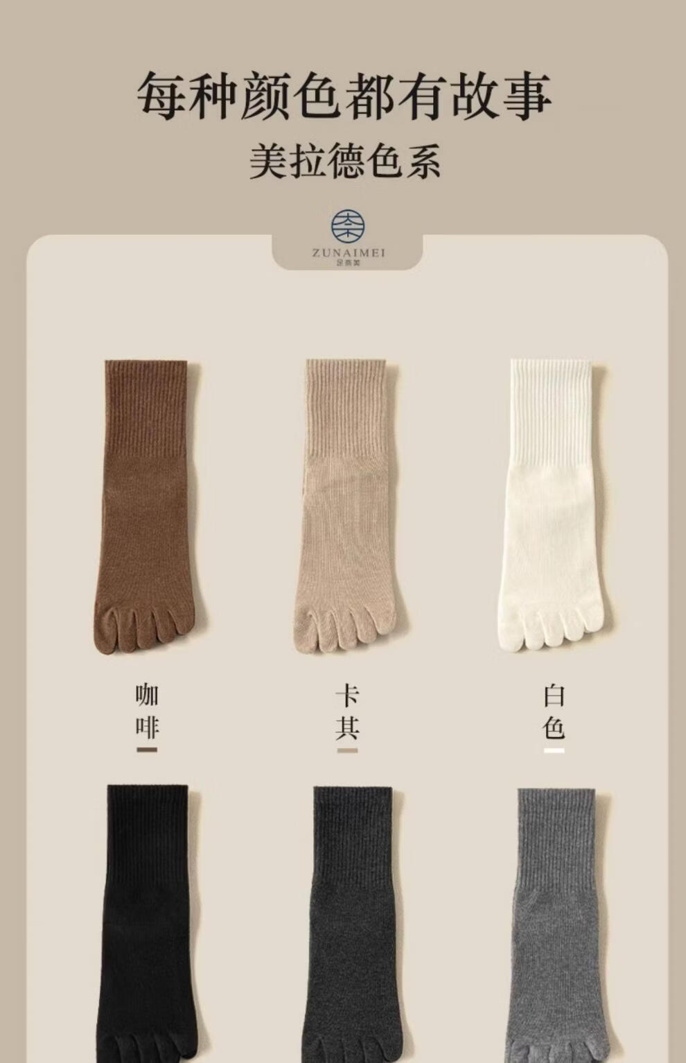 YZ Japanese imported brand wool five-finger socks for women in autumn and winter, cashmere warm winter thickened style with middle toes, khaki-light coffee-coffee-black, one size fits all (can be worn in sizes 34-39)