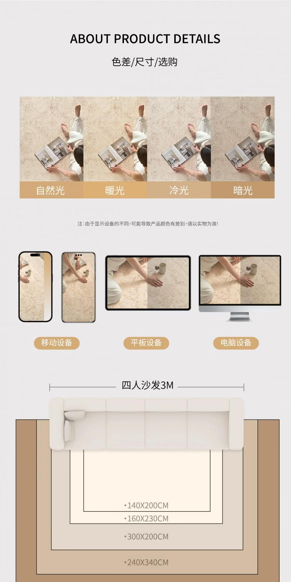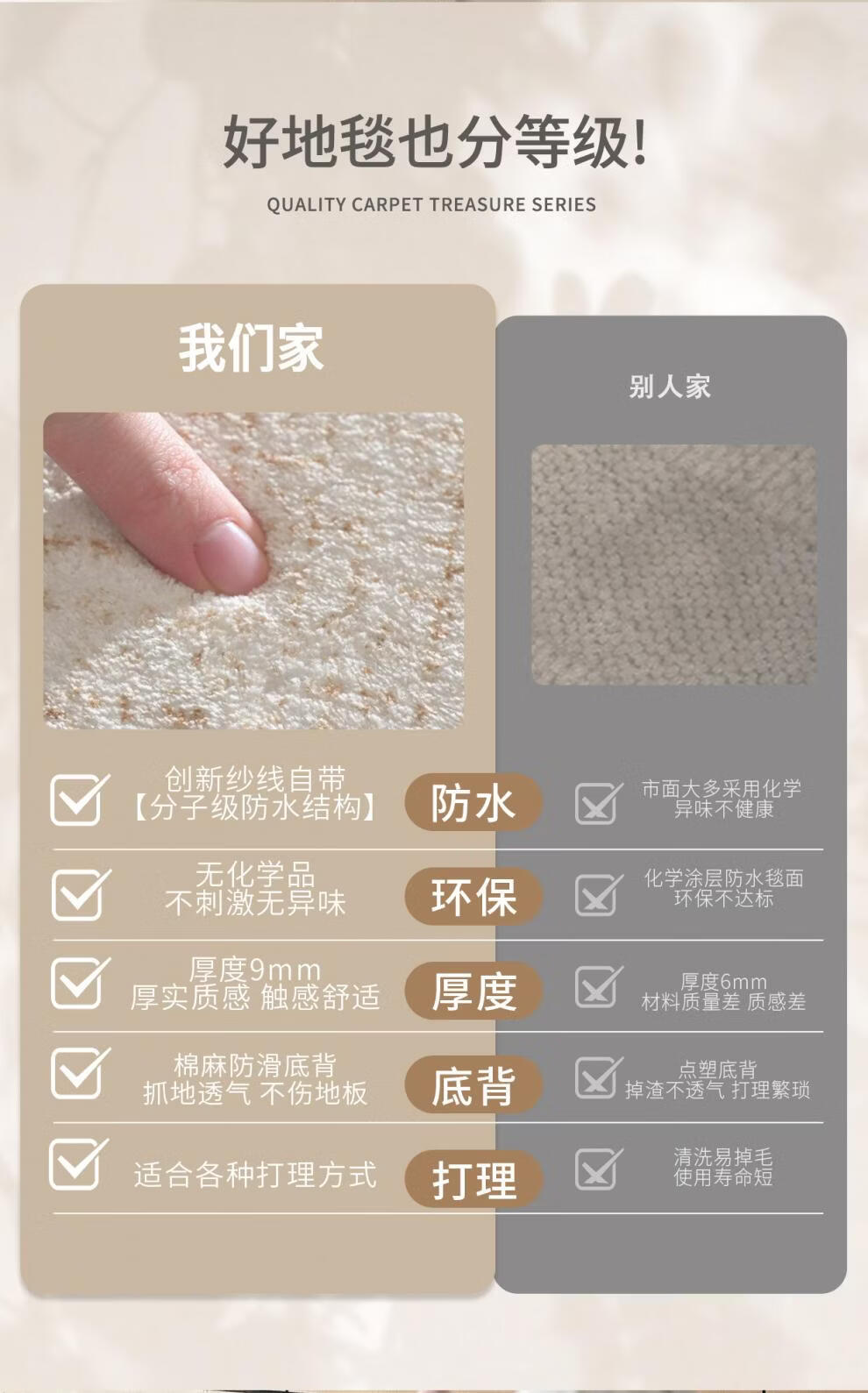 DONOYA Doroya Living Room Carpet Light Luxurious and High-Level No-Wash 2025 New Waterproof and Antifouling Cream Style Carpet Bedroom Dirty Resistant and Non-Slip S Imitation Cashmere-Dye Spring Clothes 300 400Cm Classic and Versatile, Never Go Wrong