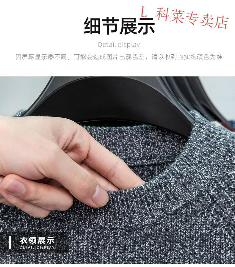LILANZ 7-needle thickened fancy yarn sweater quality winter warm half turtleneck sweater men's sweater black gray 8911 L