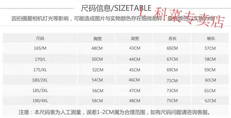 China (cm) 165 / 88-90 170 / 96-98 175 / 108-110 180 / 118-122 185 / 126-130