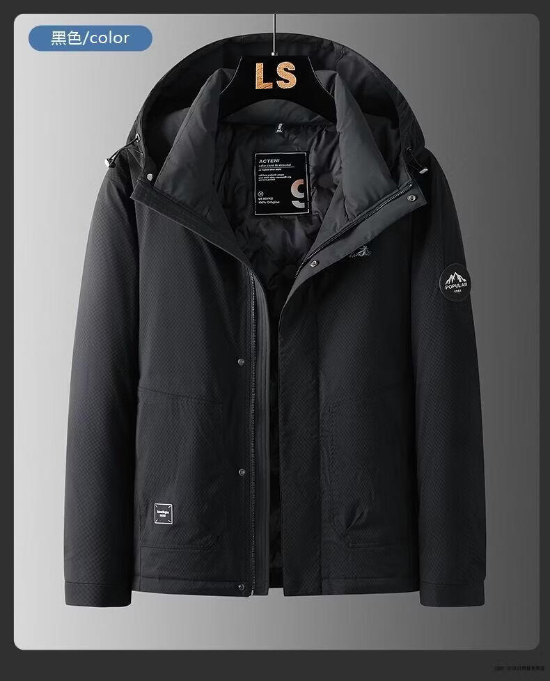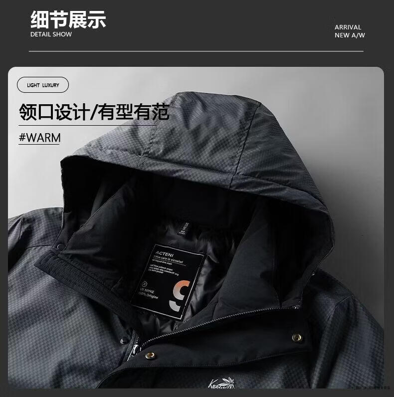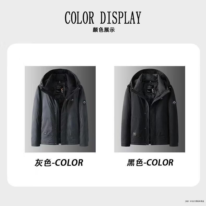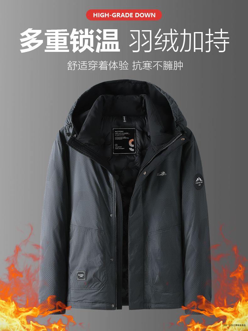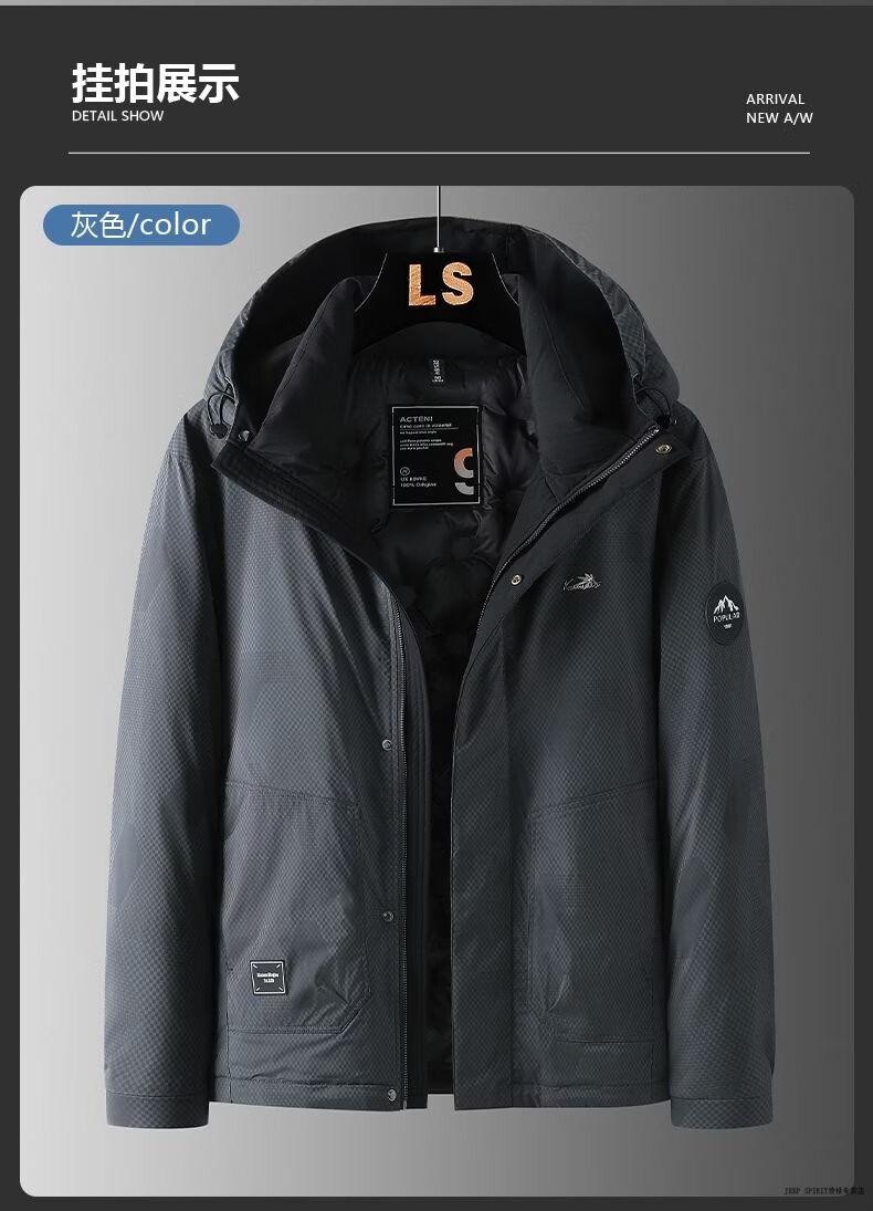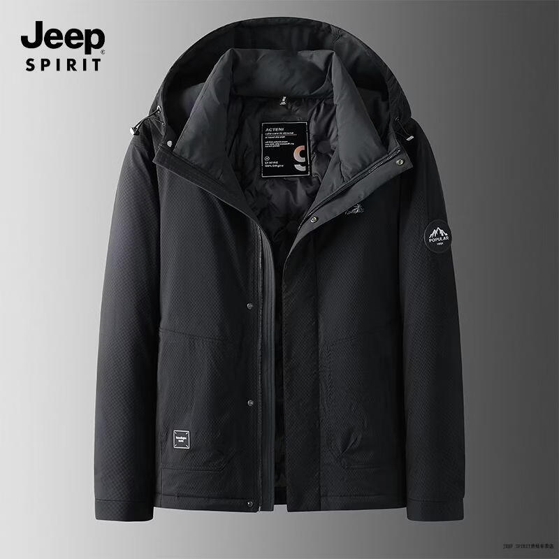 JEEP SPIRIT Jeep Men's Down Jacket 2026 Spring, Autumn and Winter New Hooded Warm Down Jacket Men's Jacket Gray 2XL 145-160Jin Jin equals 0.5 kg