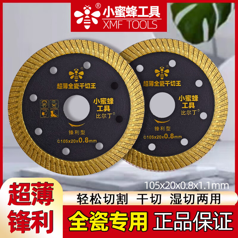 Little Bee ultra-thin 0.8 diamond cutting disc for all-ceramic tile dry cutting special vitrified tile ceramic grinder universal Little Bee ultra-thin all-ceramic tile dry cutting king 1 piece 105 diameter 20 inner diameter