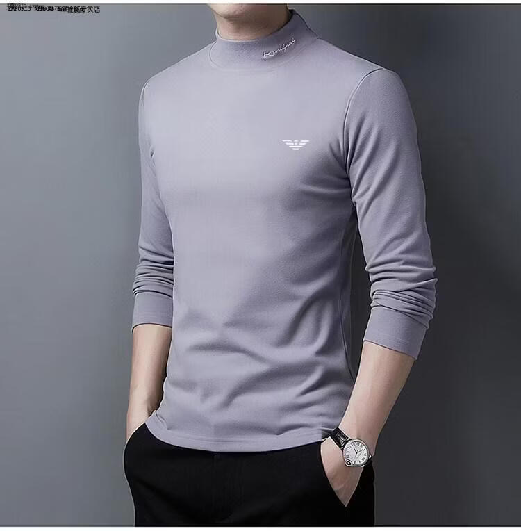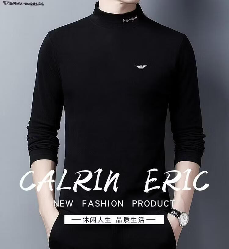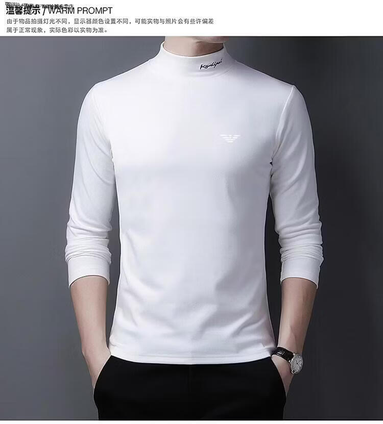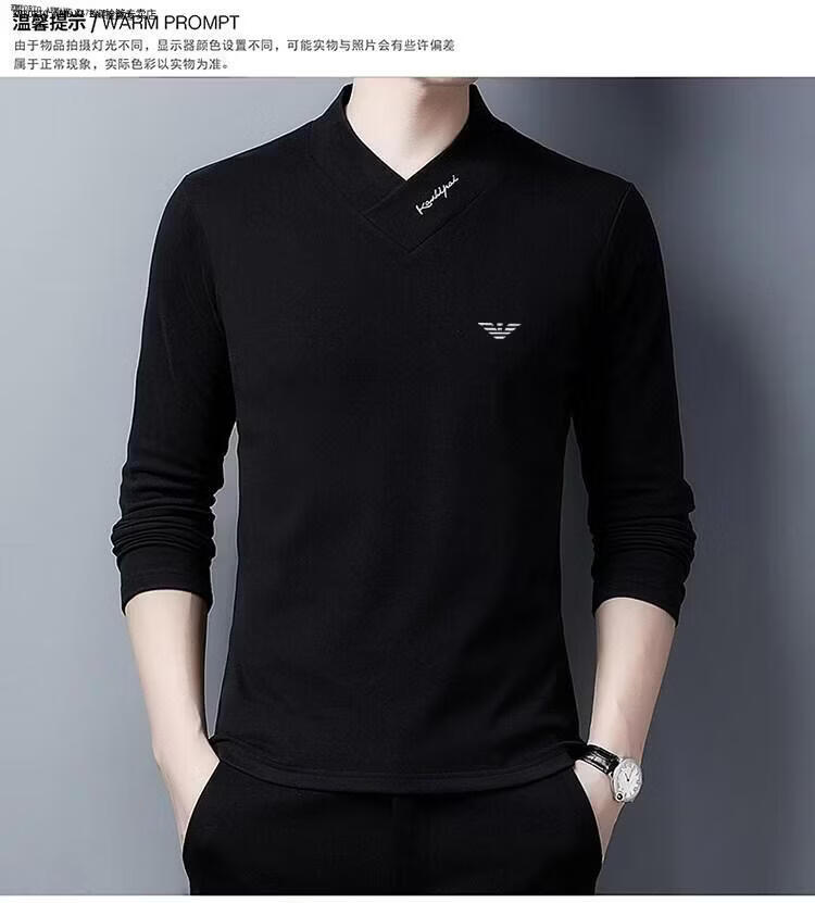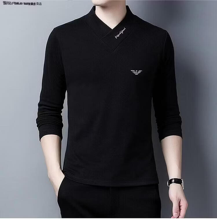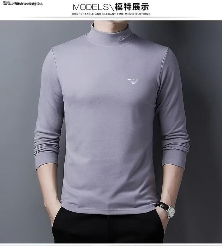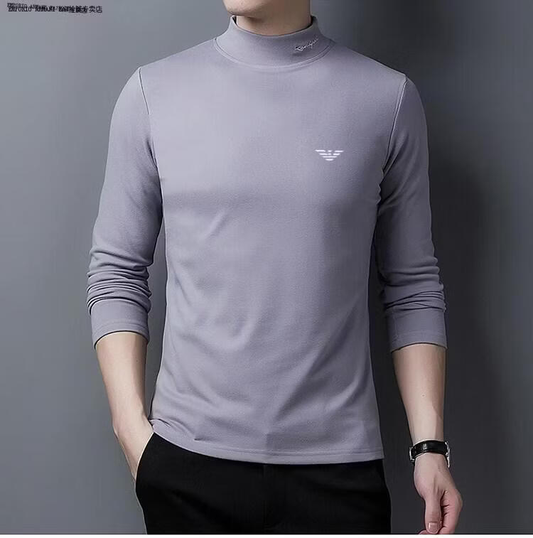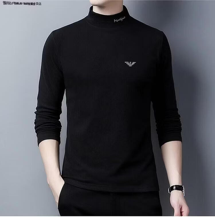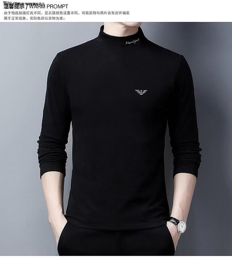 Emporio Armani EA7 Armani long-sleeved T-shirt men's German velvet stand-up collar with spring and autumn new double-sided velvet sweatshirt middle-aged bottoming shirt high collar black 03 L 170