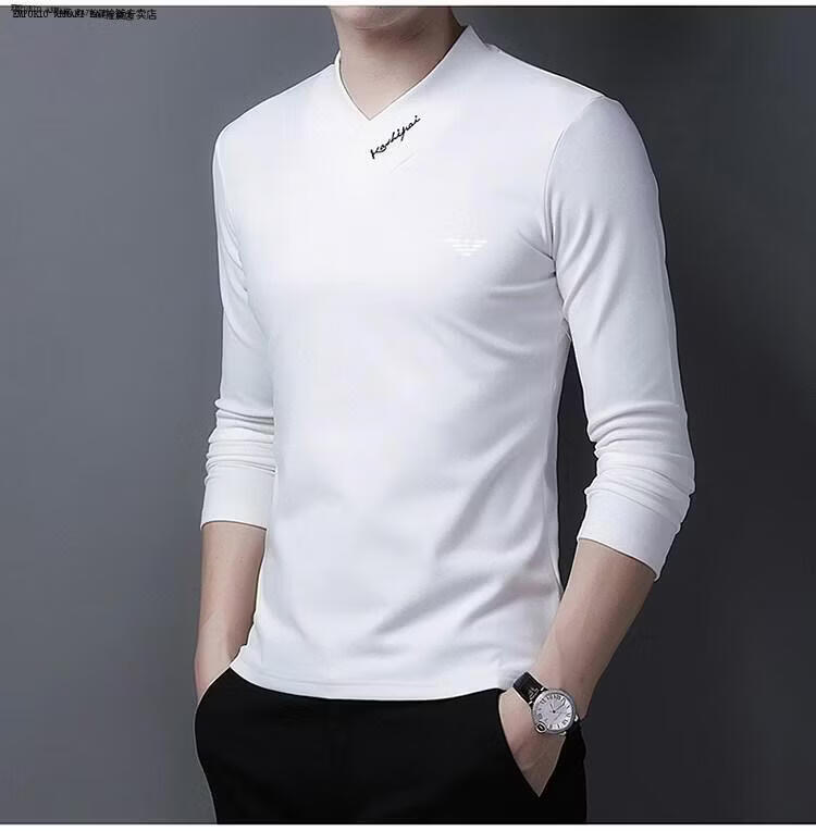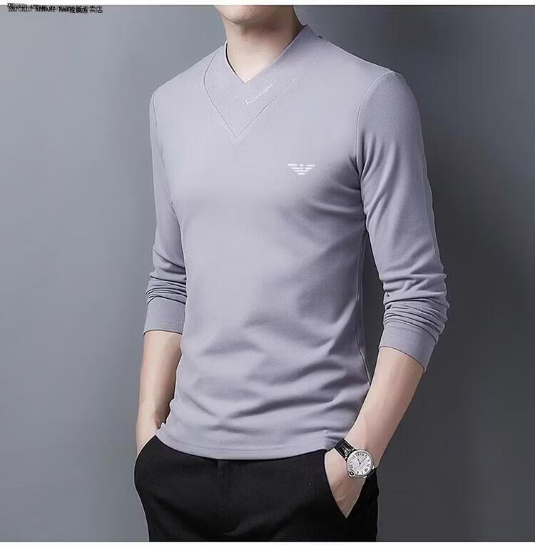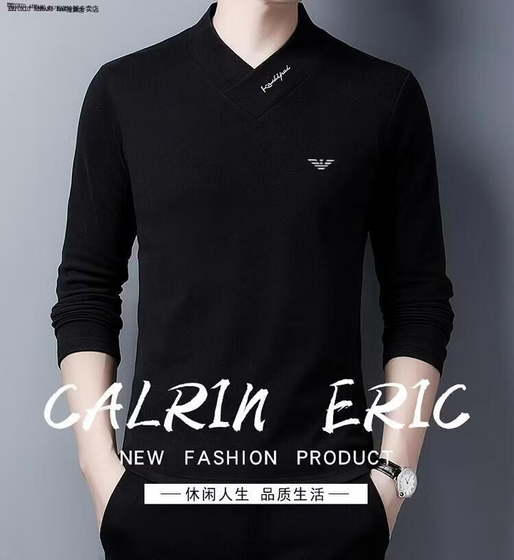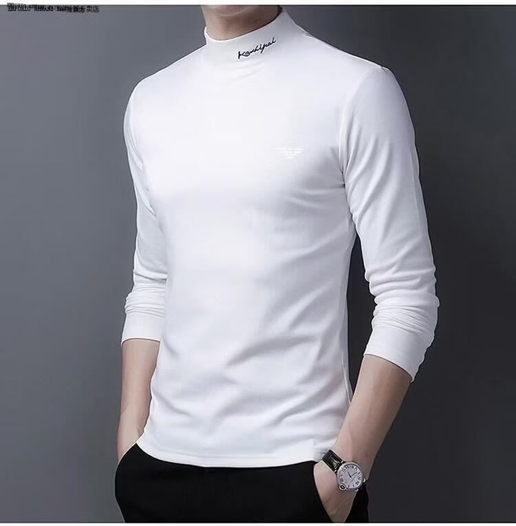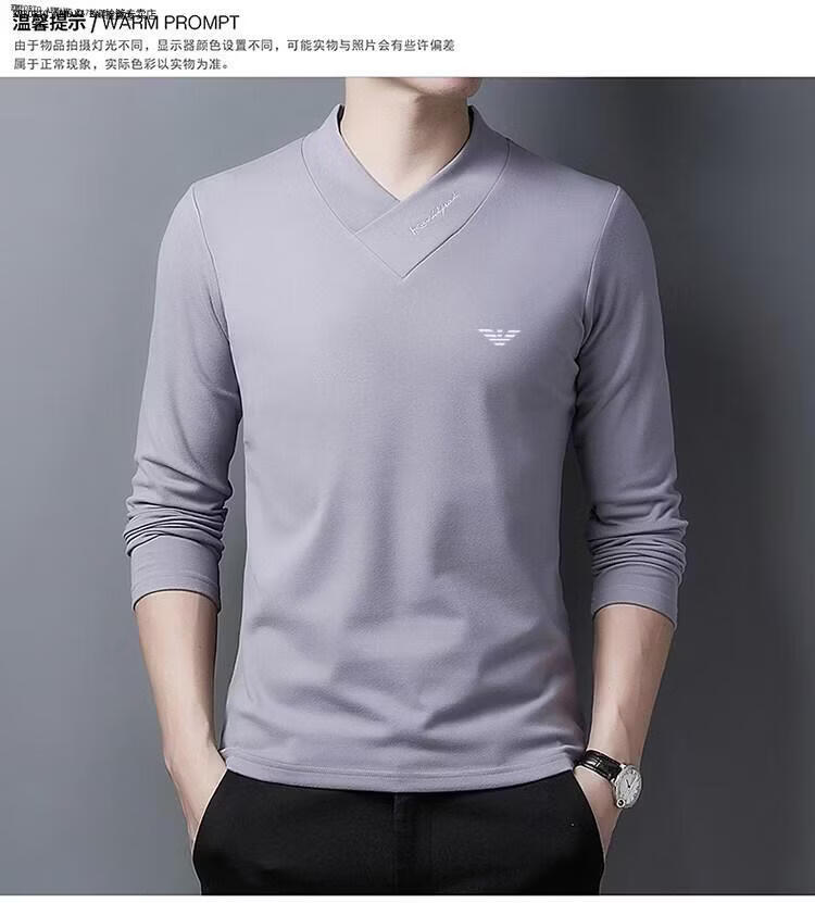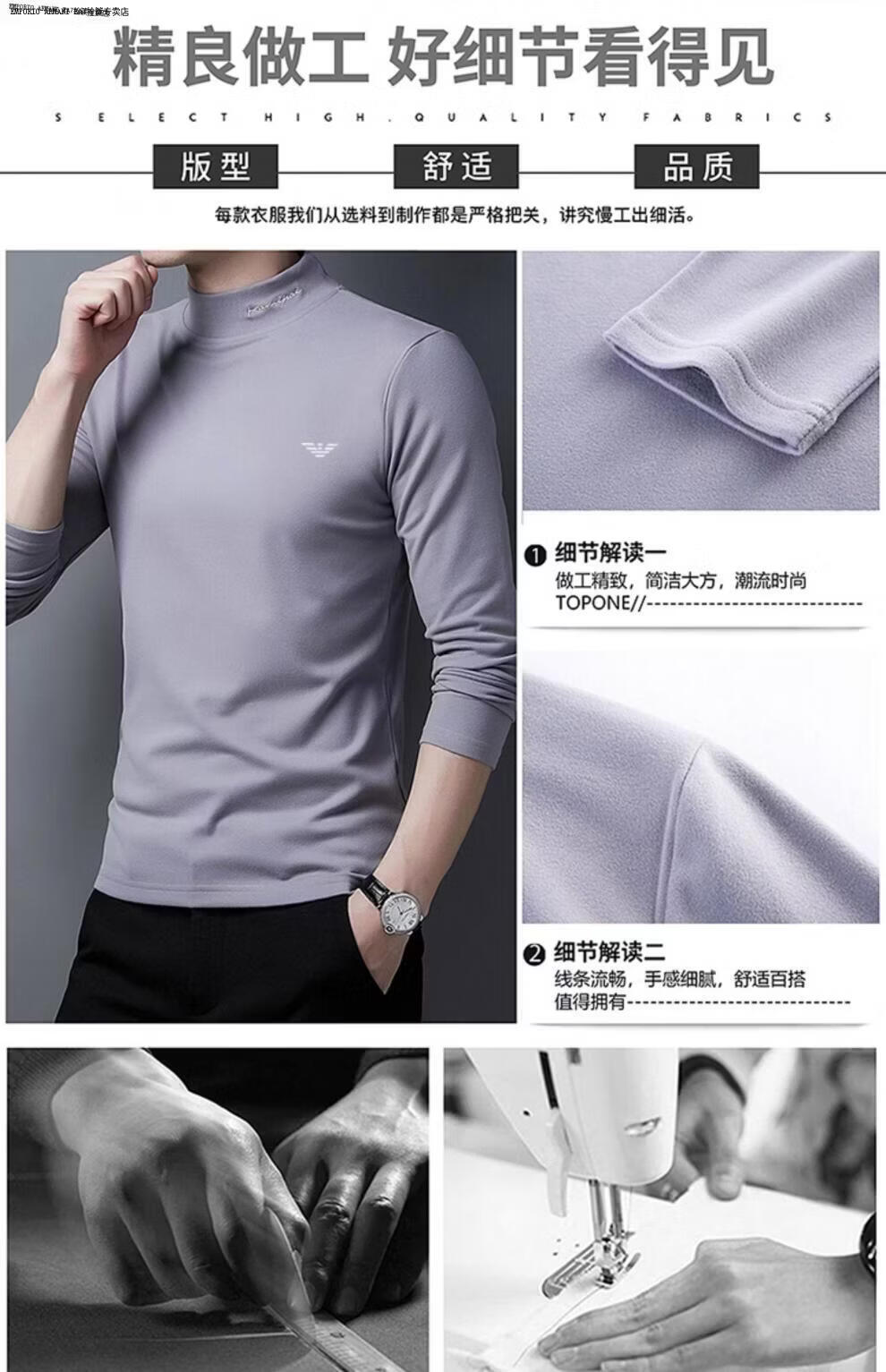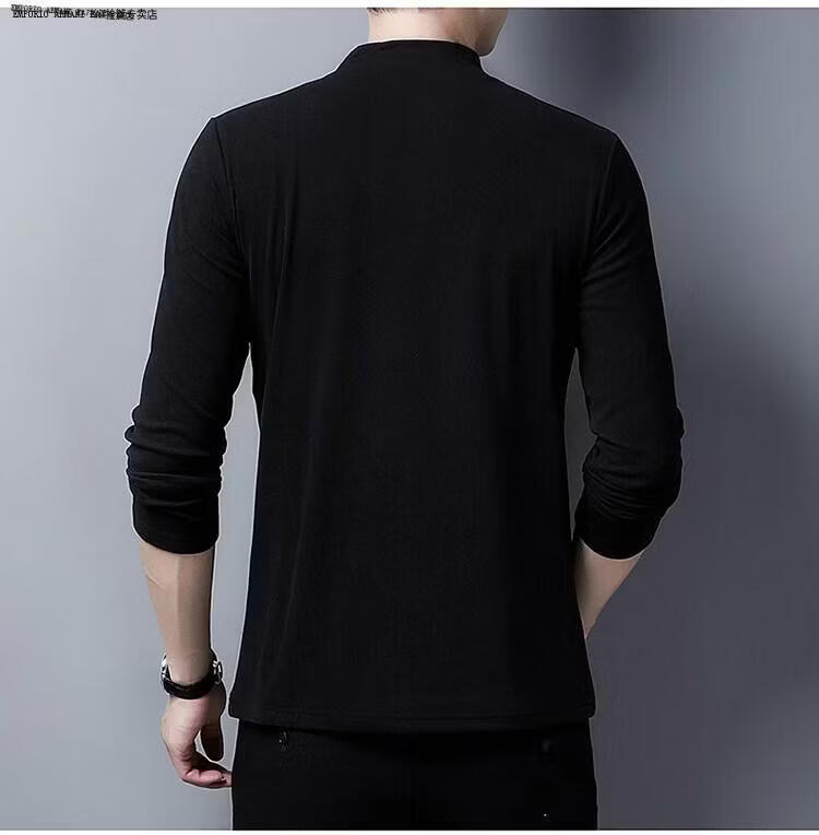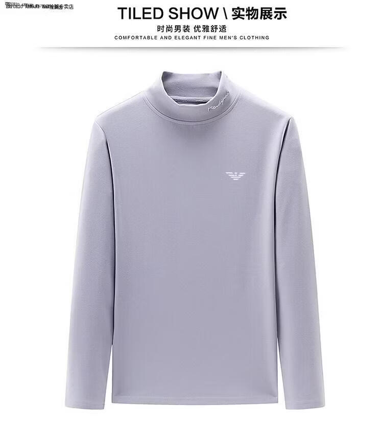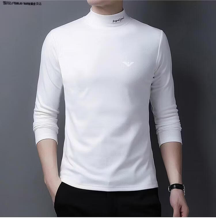 Emporio Armani EA7 Armani long-sleeved T-shirt men's German velvet stand-up collar with spring and autumn new double-sided velvet sweatshirt middle-aged bottoming shirt high collar black 03 L 170