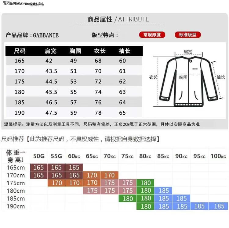 China (cm) 165 / 88-90 170 / 96-98 175 / 108-110 180 / 118-122 185 / 126-130