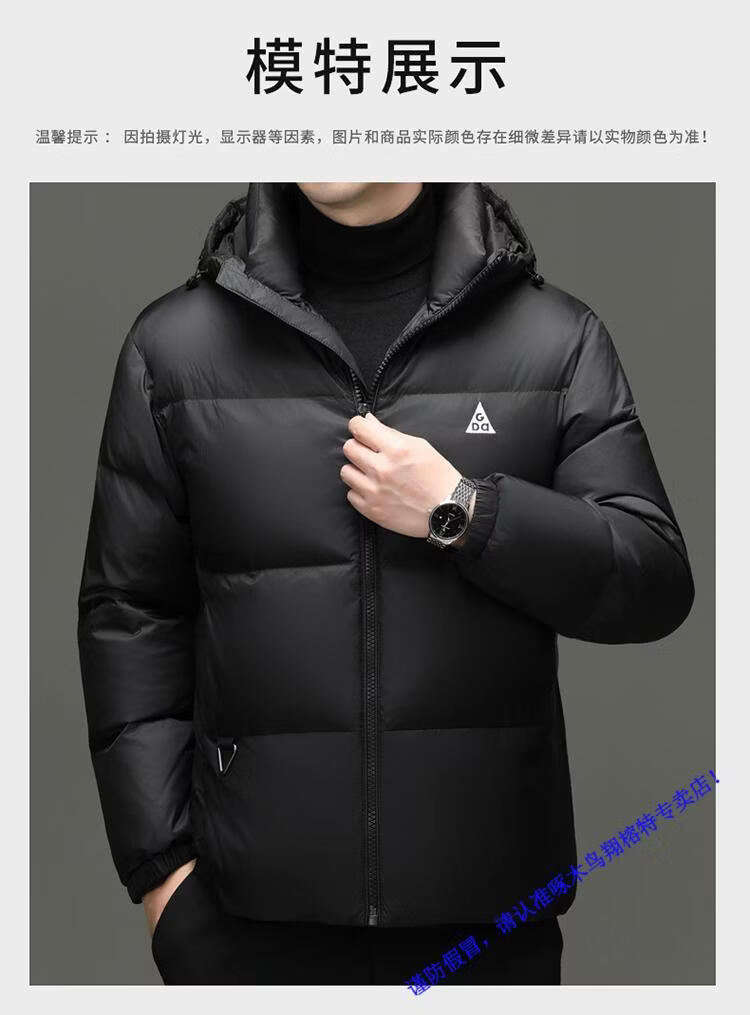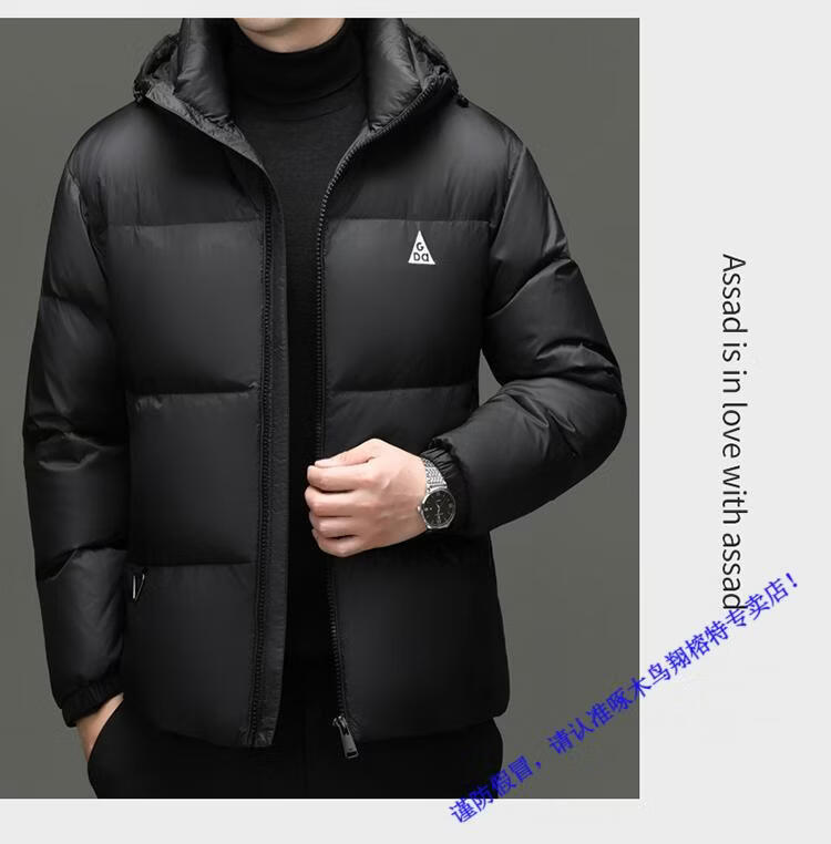 Woodpecker high-end down jacket men's jacket winter business casual fashion hooded bread coat thickened warm and cold-proof jacket RR-YR36038 black M 170/92A