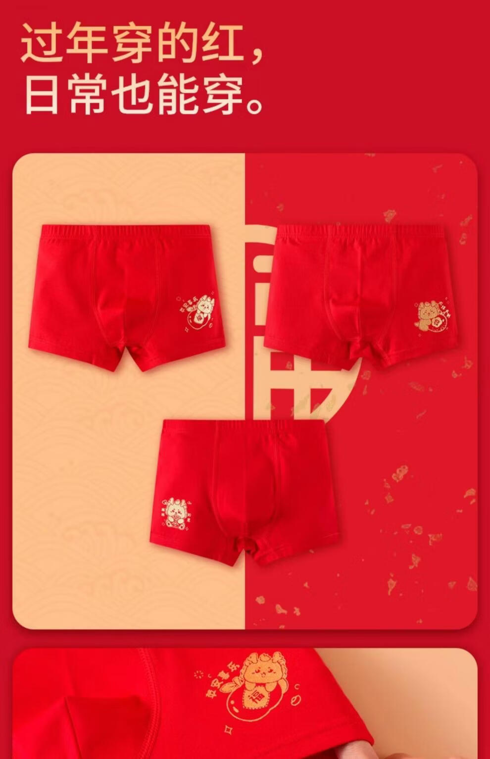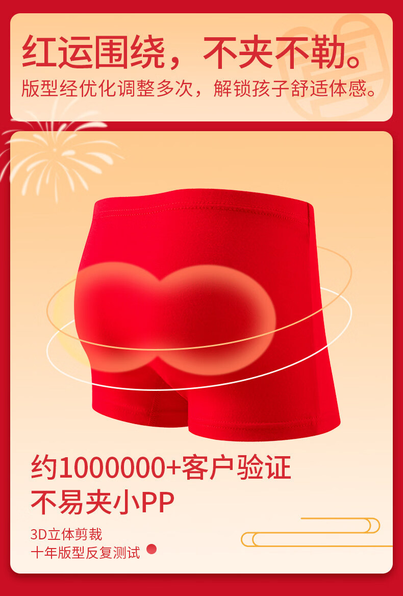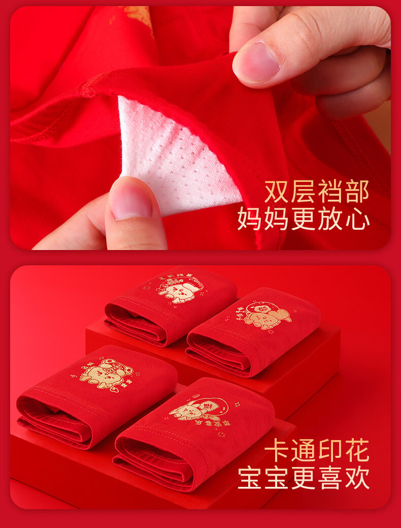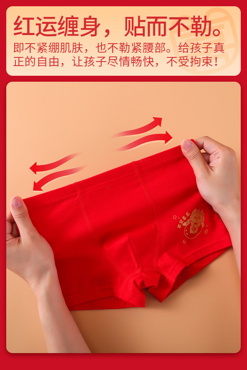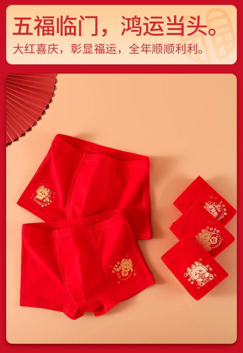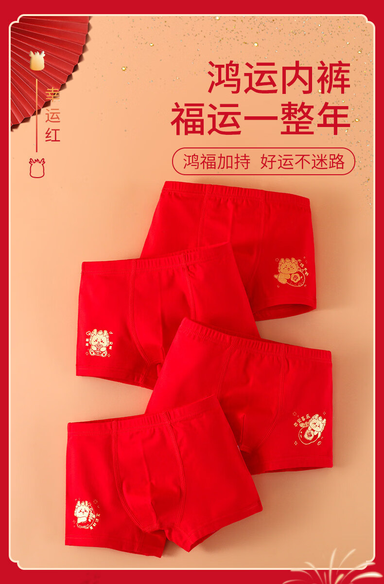 Modal children's pure cotton underwear red 13-year-old boy's zodiac year shorts medium and large boy's boxer briefs pure cotton He Lianlong style 2 pairs 120 recommended age 4-5 years old size (recommended height 105-115,