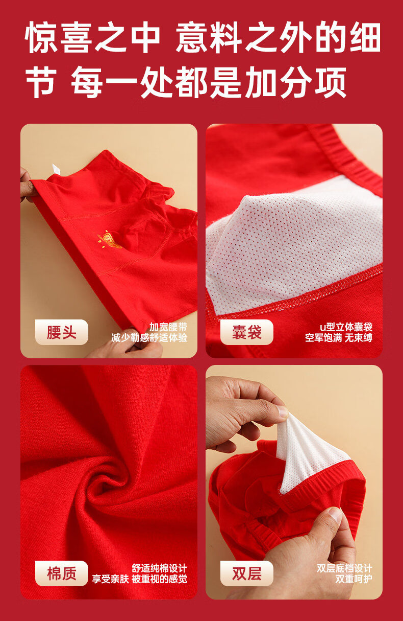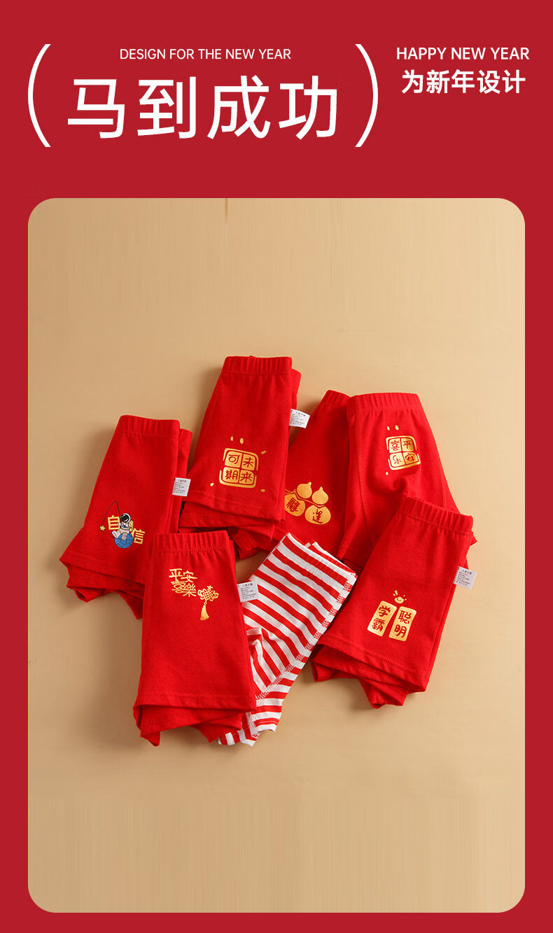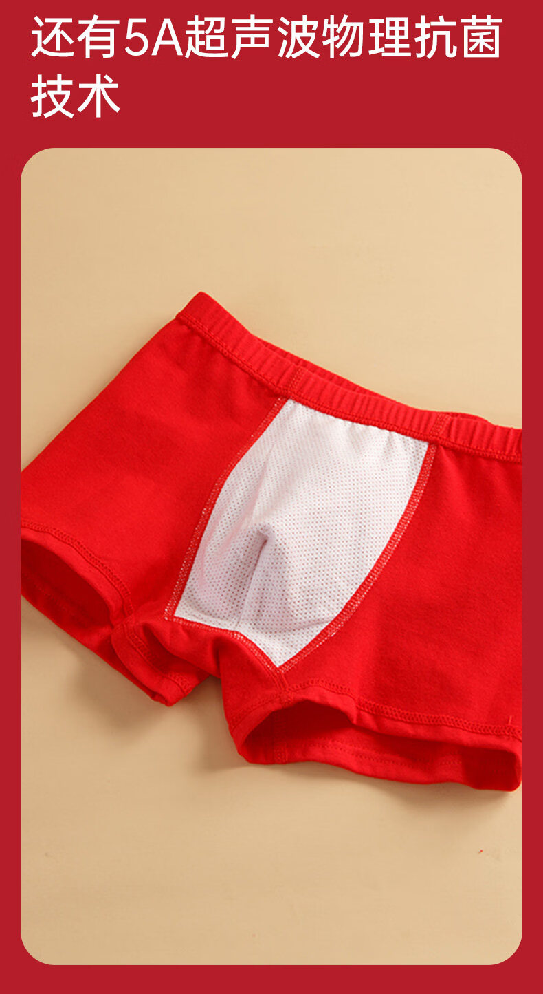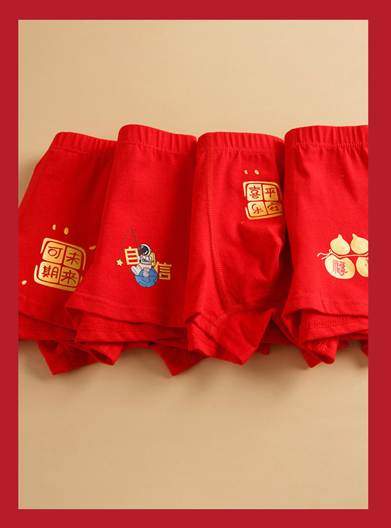 Modal boys' boxer briefs zodiac year of the horse, middle-aged children, 13 years old, teenage boys, red cotton, children's four corners, 12 years old, lucky stripes, 1 pair, 170 M size, height 90 size, recommended age 1-2 years old to 105 20-28