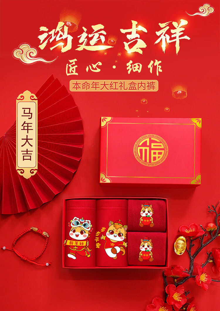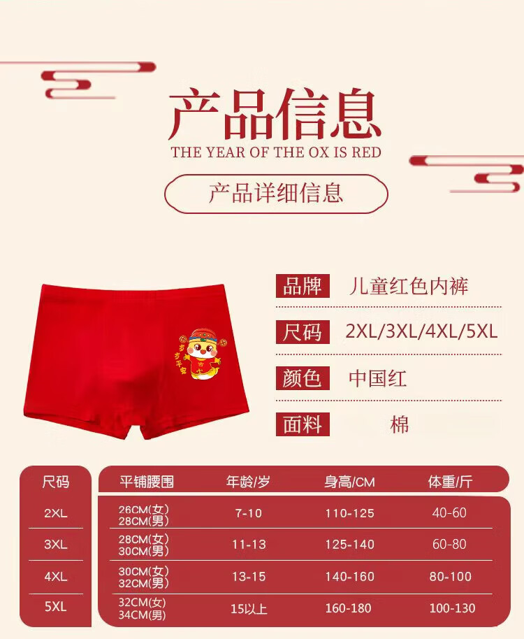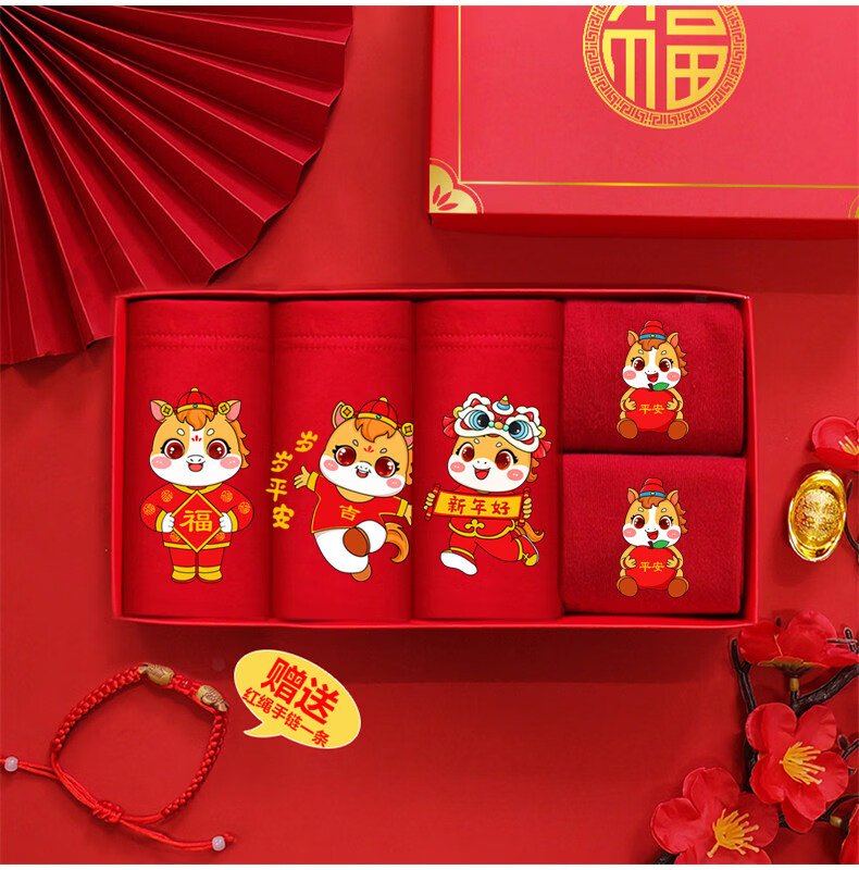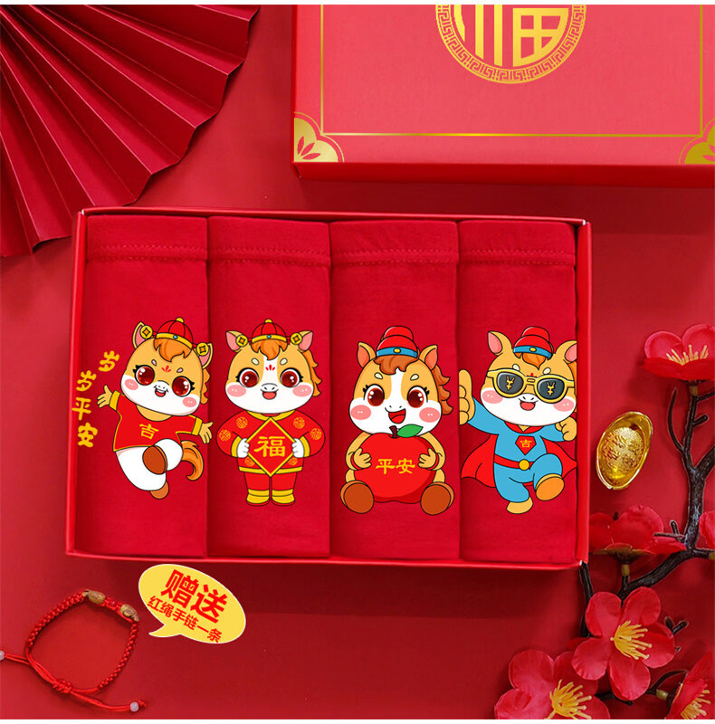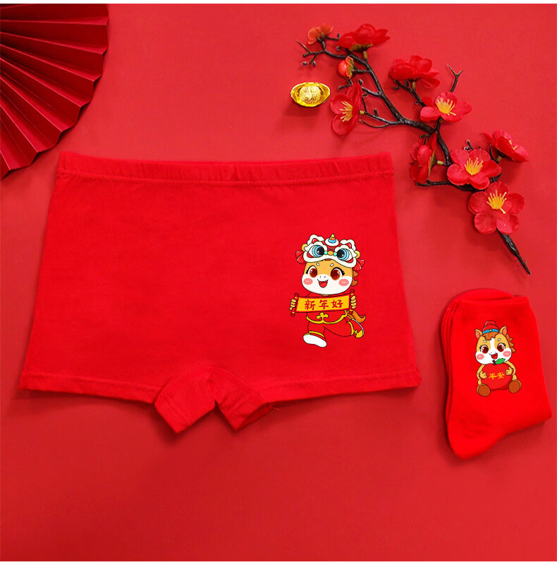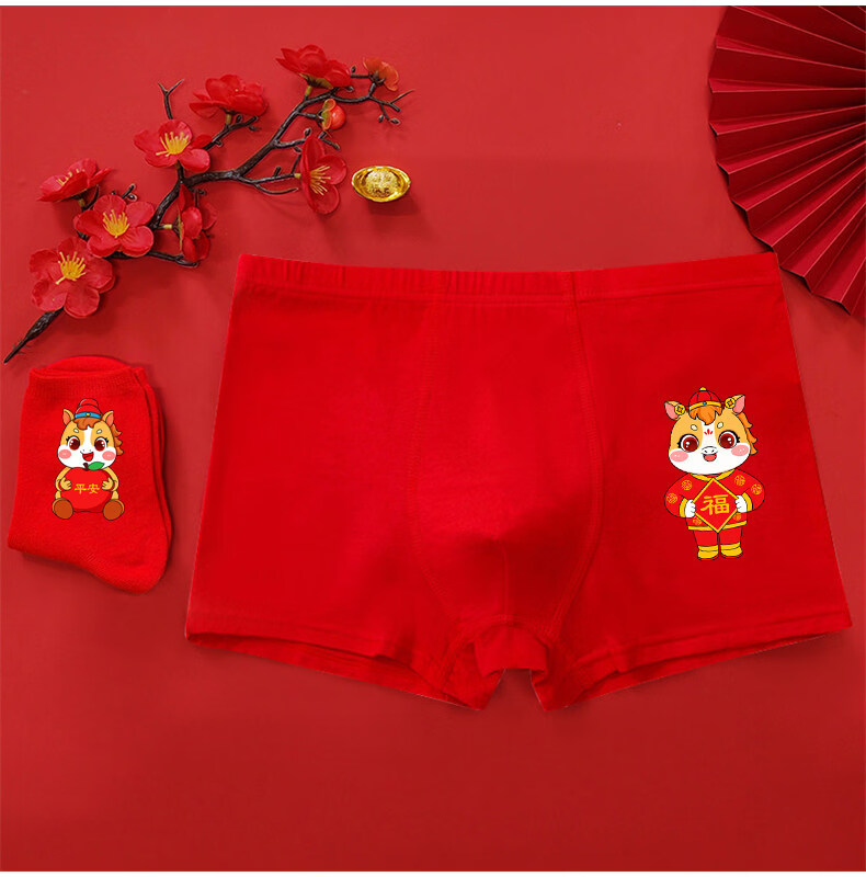 Modal Horse Year Children's Zodiac Year Underwear Boys Red Shorts Boxer Cotton Triangle Girls Socks 13 Old Children 12 Years Old Boys Year Old Peace + 1 Pair of Socks 170 2XL 40-55Jin Jin is equal to 0.5 kg