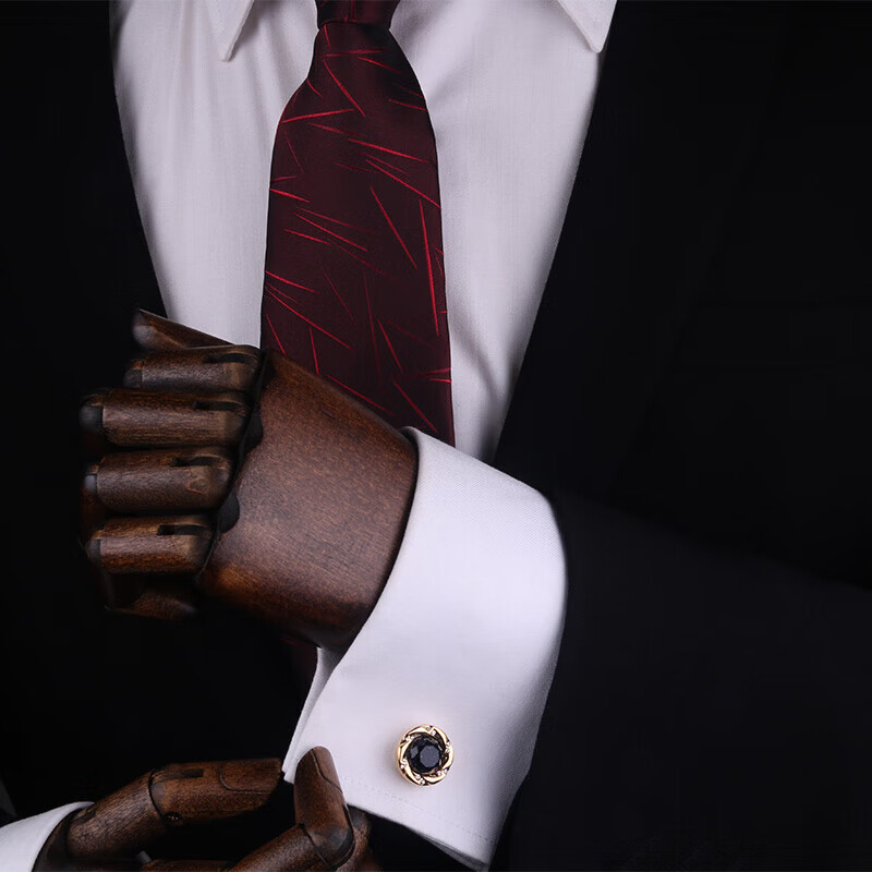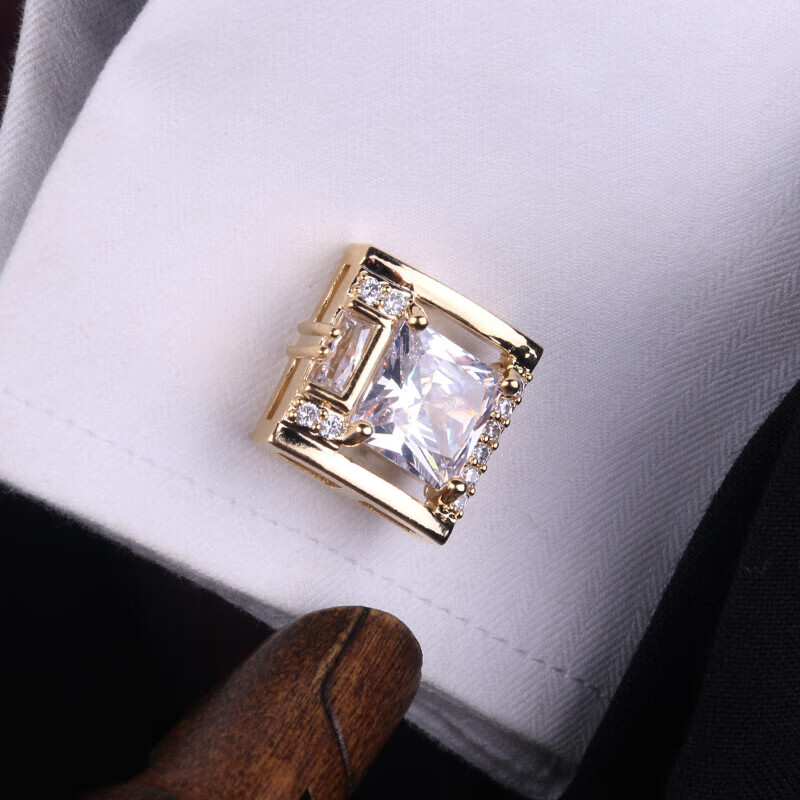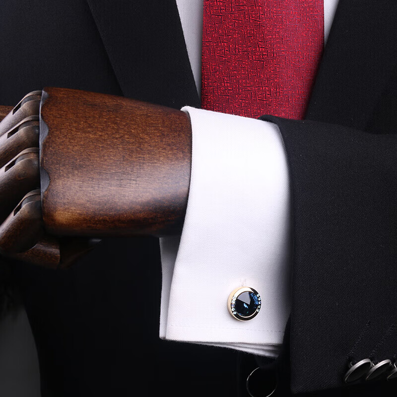 Men's French shirt cufflinks, hand-carved, suit French cufflinks, cufflinks, shirt cuff buttoning gift, gold-plated Qiyi crystal cufflinks