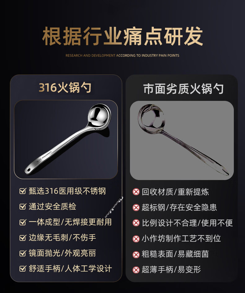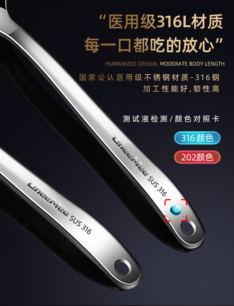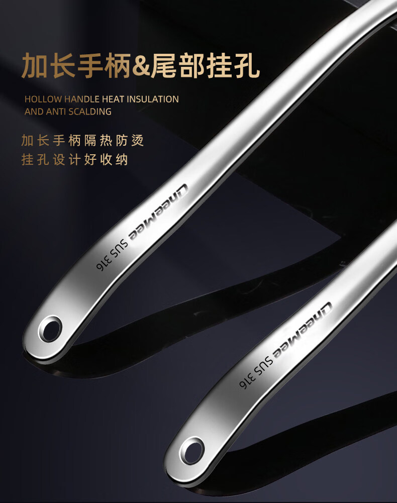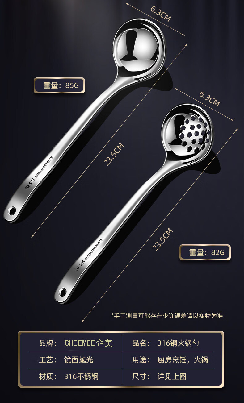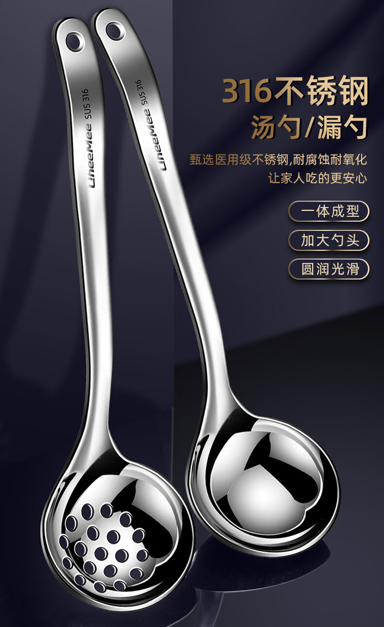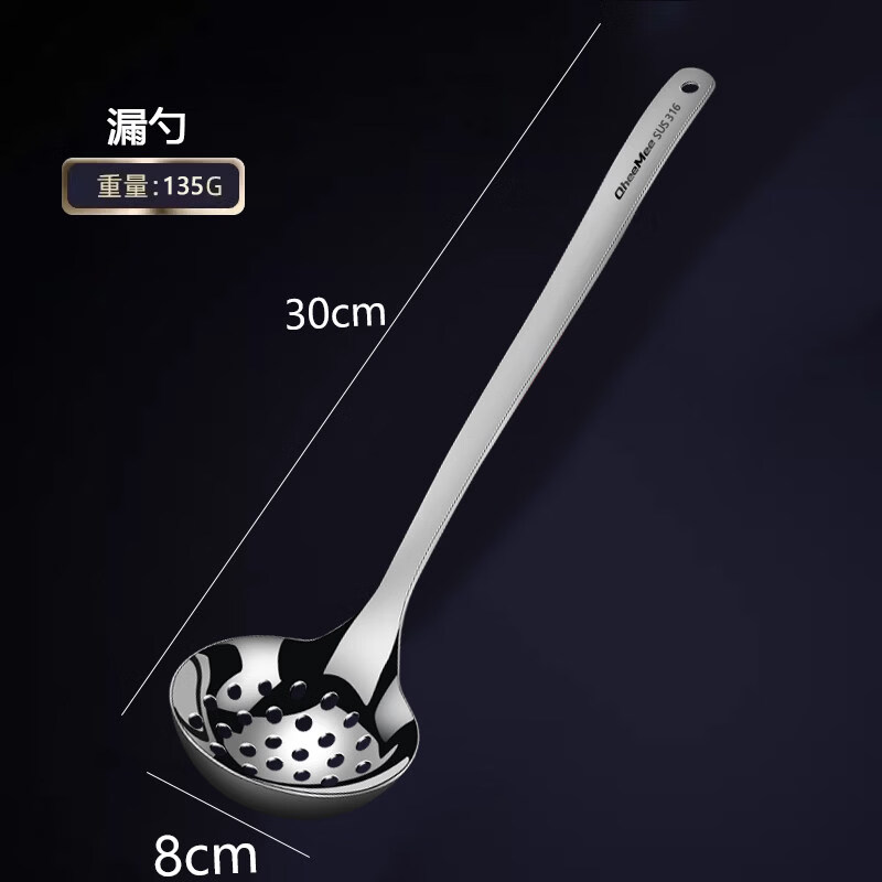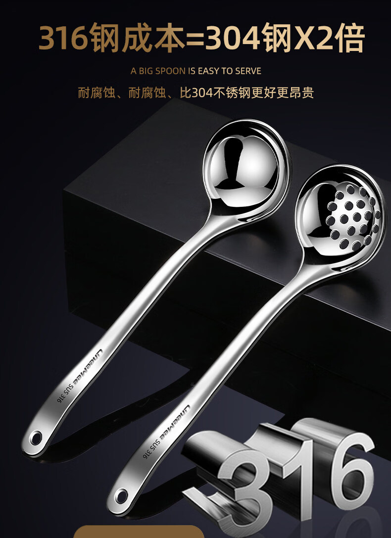 YANG BO EXTRA EAR food grade 316 stainless steel soup spoon colander household drinking soup spoon thickened long handle hot pot spoon kitchen serving spoon wooden 316 small hot pot soup spoon + colander