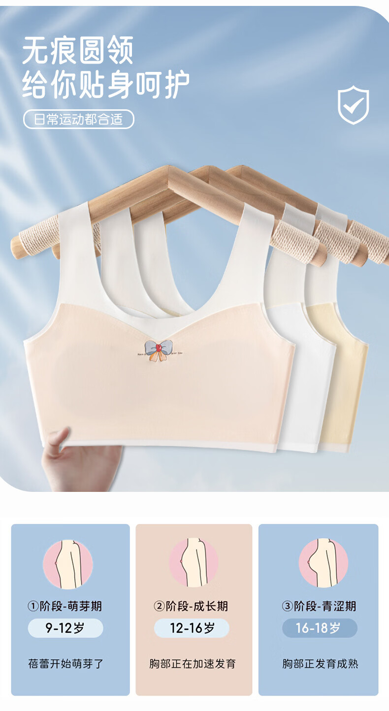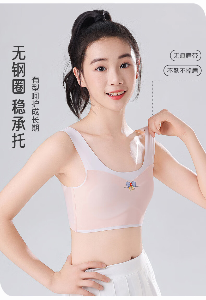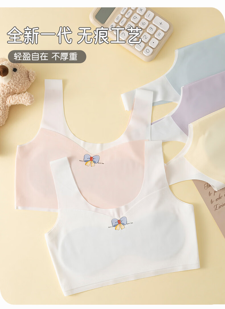 One-stage development period tube top girls' seamless underwear for primary and secondary school students 8-12 years old girls all-in-one vest white M 45-65Jin Jin equals 0.5kg