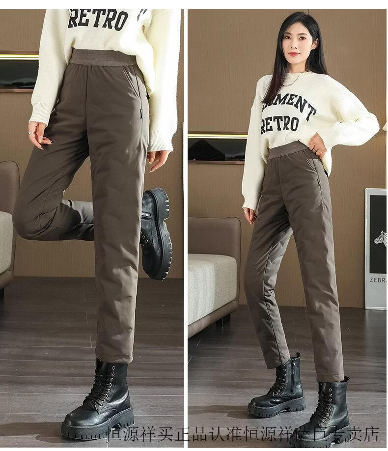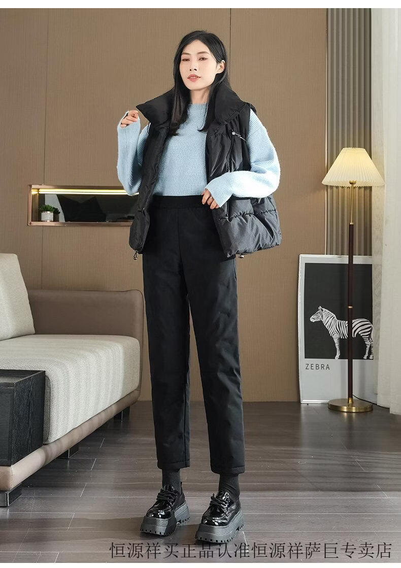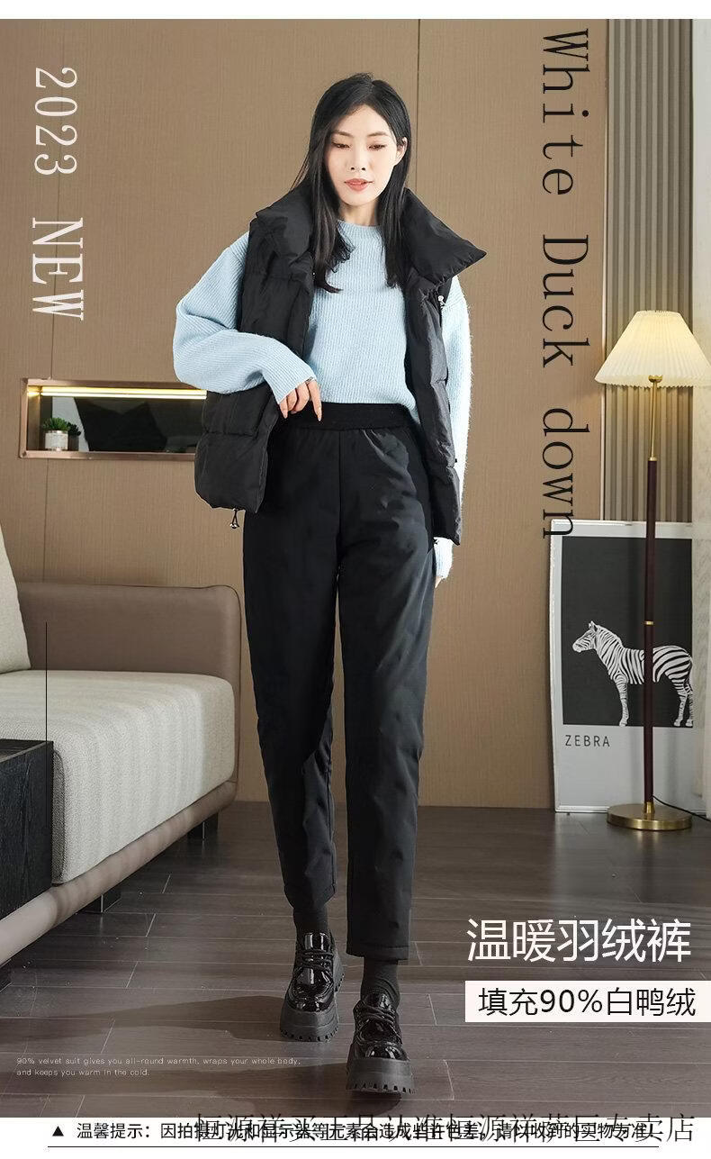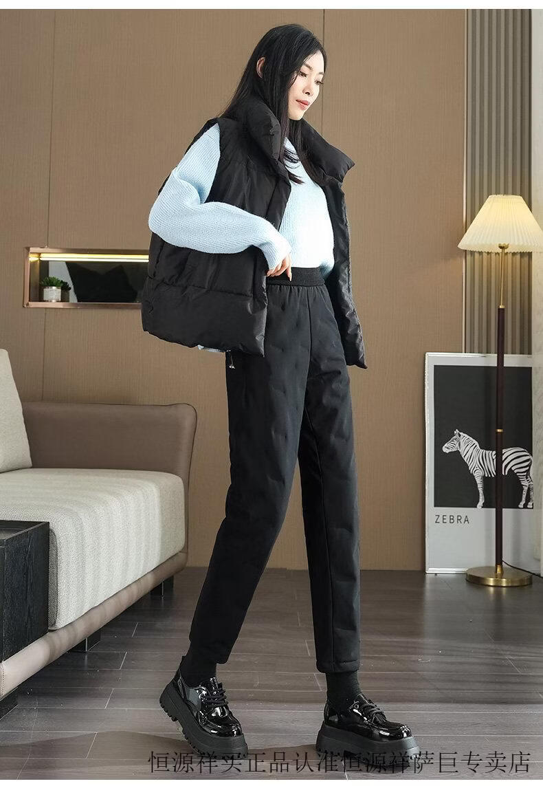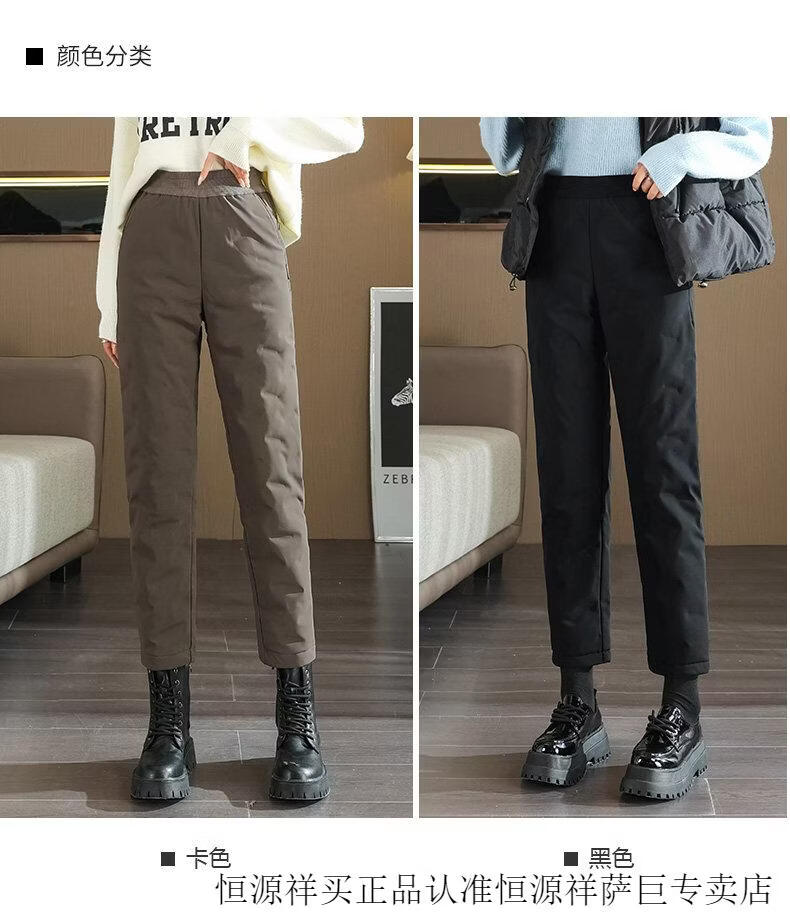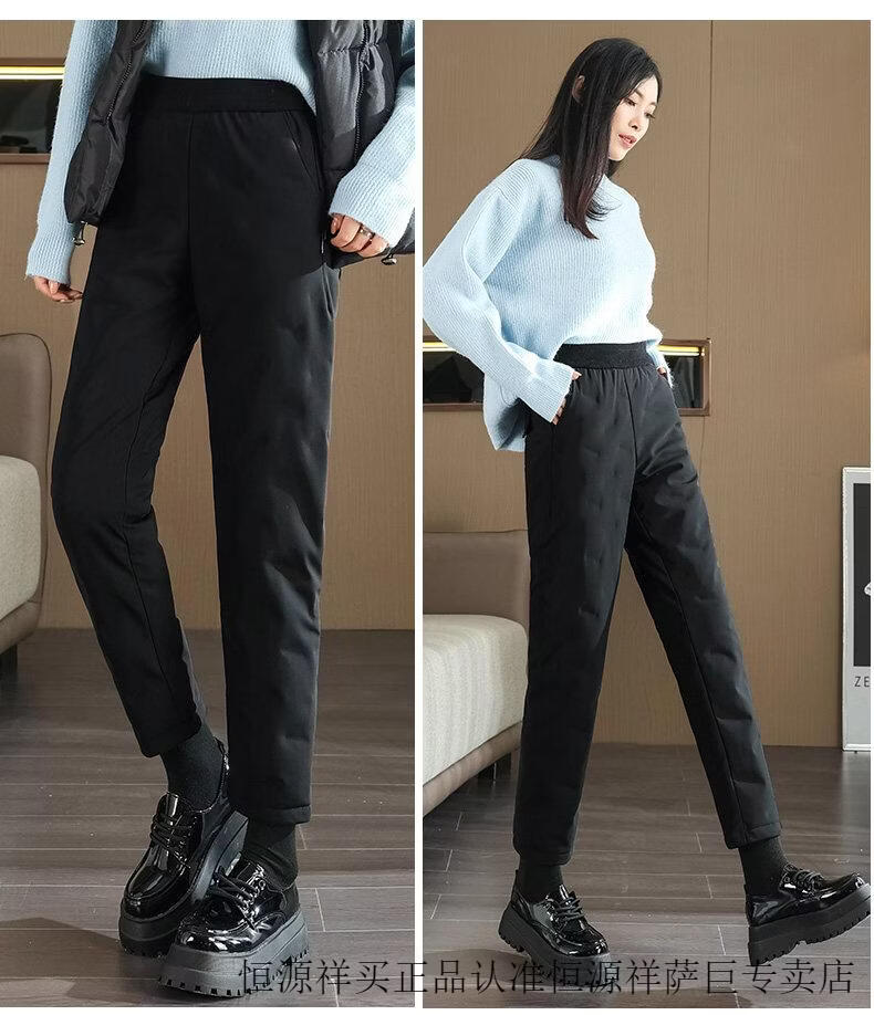 Hengyuanxiang high-end down pants for women to wear in winter, high-waisted, fashionable, slimming, thickened white duck down, lightweight and warm cigarette pants, black, normal style, height 164 and below, one size fits all, 2794-103Jin Jin is equal to 0.5 kg