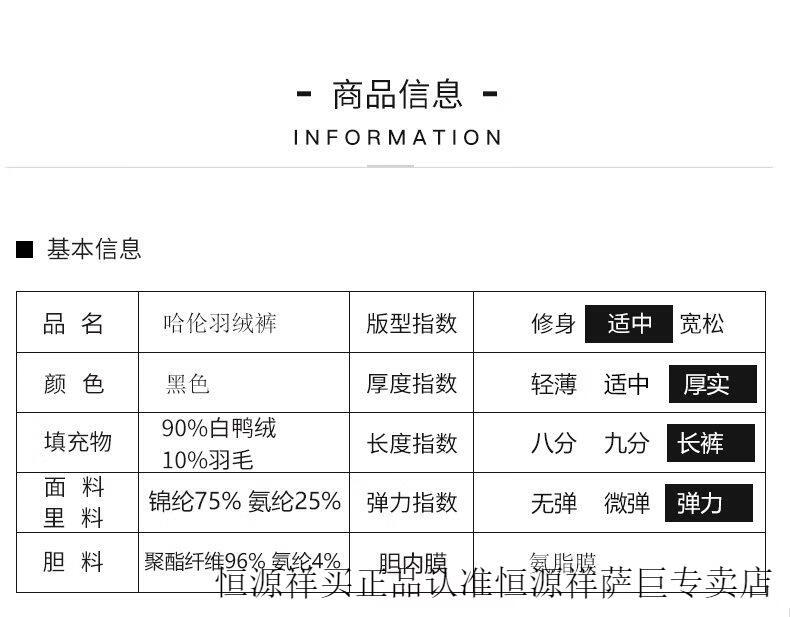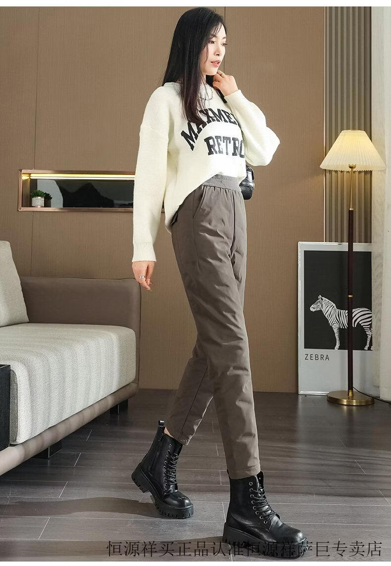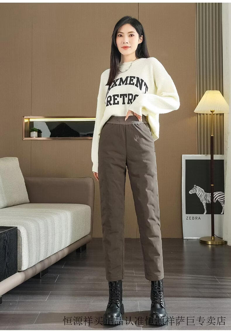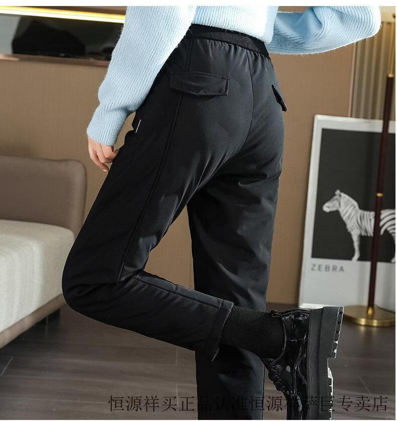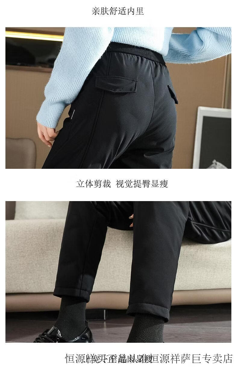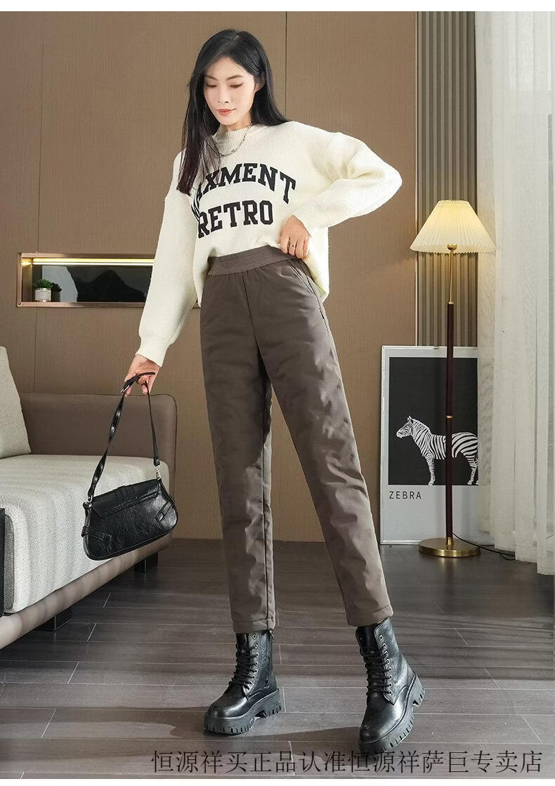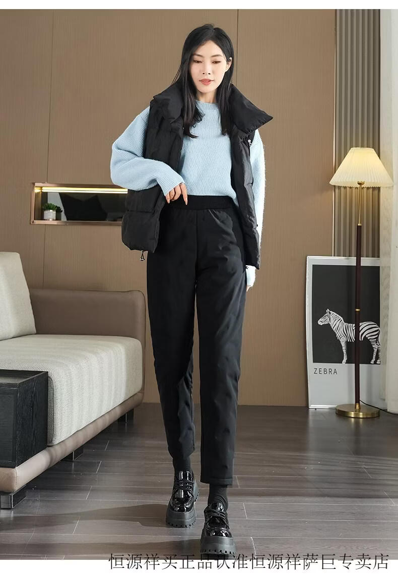 Hengyuanxiang high-end down pants for women to wear in winter, high-waisted, fashionable, slimming, thickened white duck down, lightweight and warm cigarette pants, black, normal style, height 164 and below, one size fits all, 2794-103Jin Jin is equal to 0.5 kg