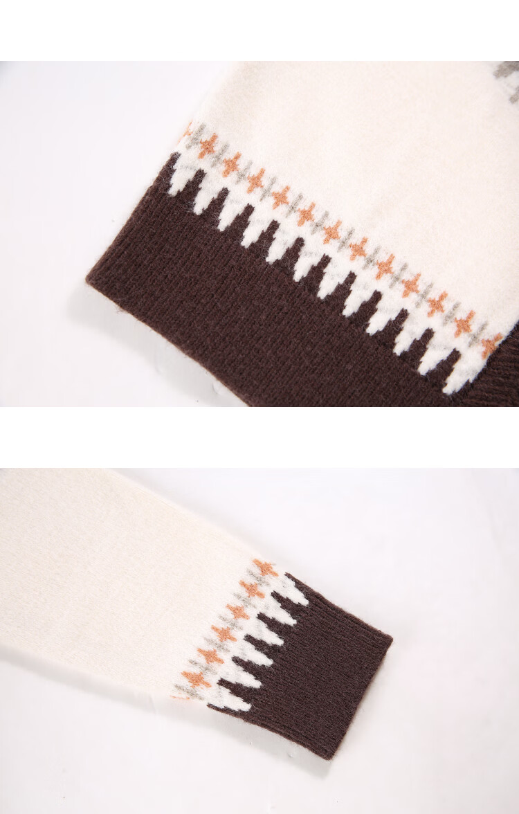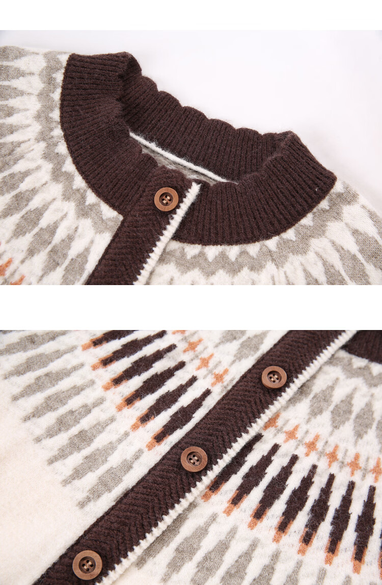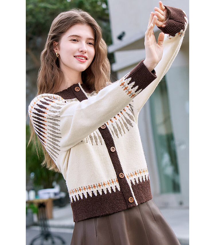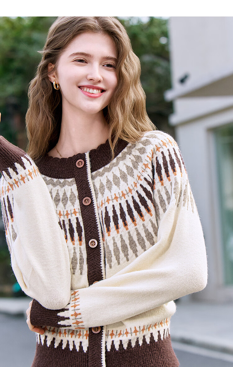 Betu Women's 2025 Winter New Wool Knitted Sweater Fair Isle Jacquard Slim Trendy Top Women 2412X03 Apricot S