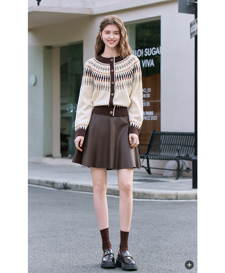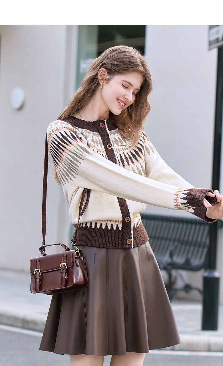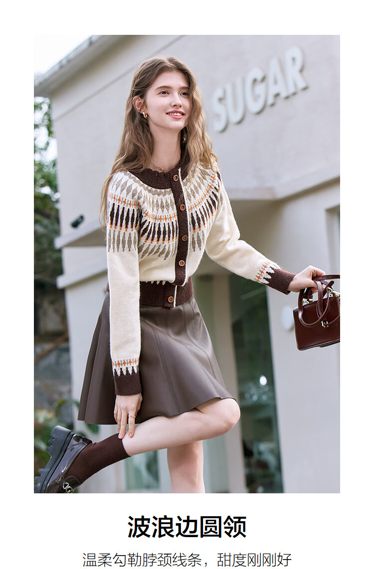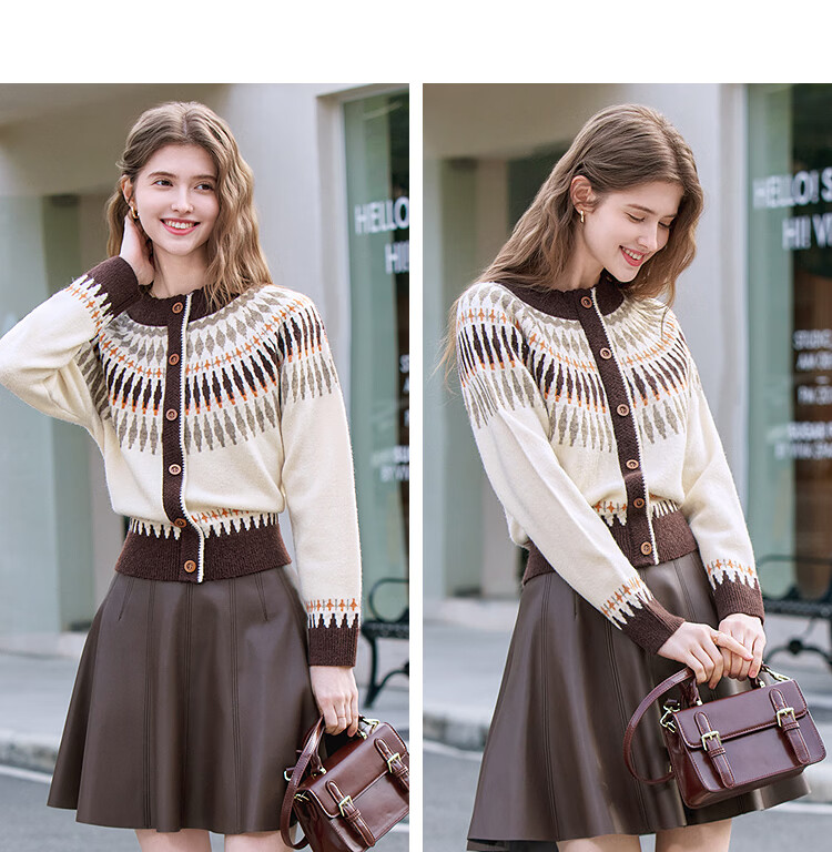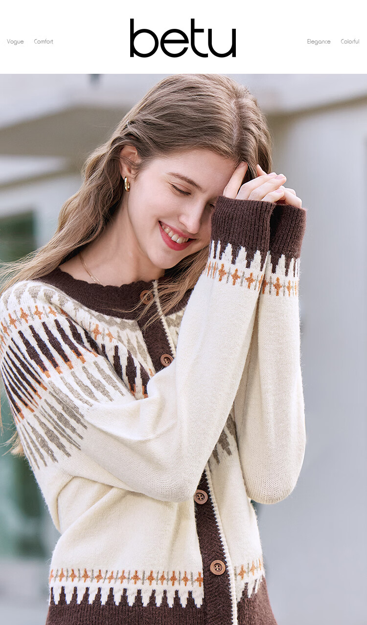 Betu Women's 2025 Winter New Wool Knitted Sweater Fair Isle Jacquard Slim Trendy Top Women 2412X03 Apricot S