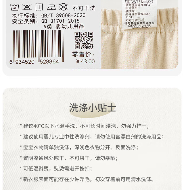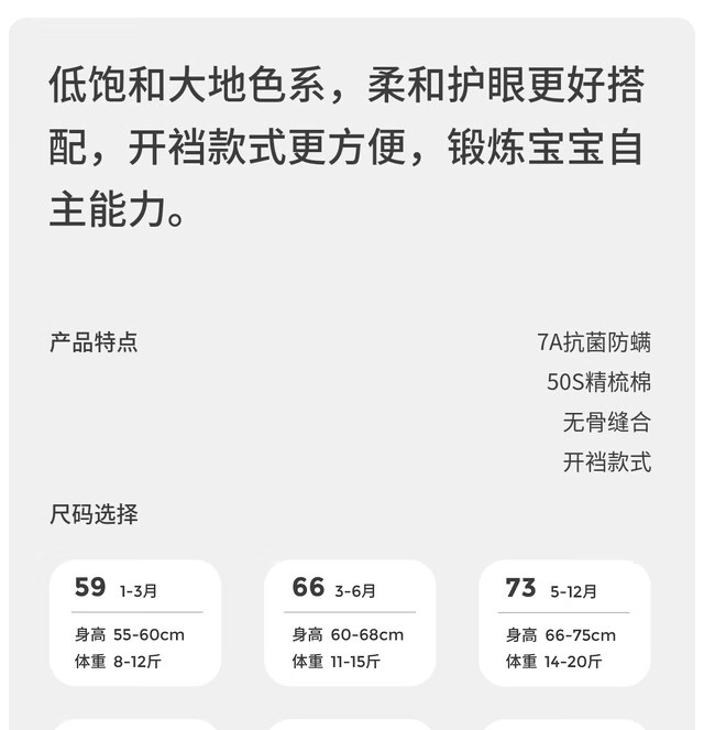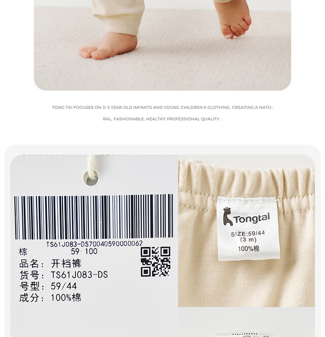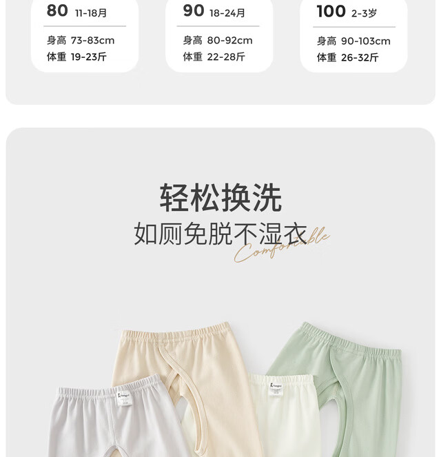 Tongtai (TONGTAI) baby crotchless pants spring and autumn pure cotton men's and women's baby clothes children's pants home pajamas bottoming trousers off-white 73