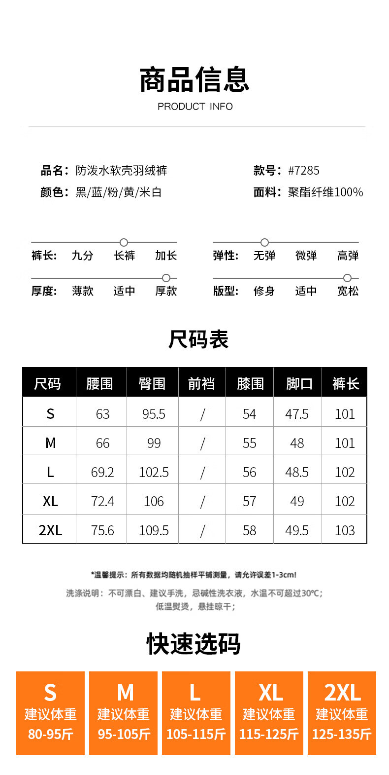 Outseam (cm) 99 cm 101.5 cm 104 cm 106.5 cm 109 cm