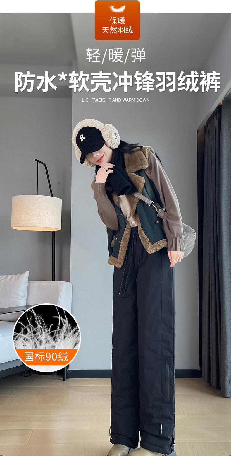 Woodpecker down pants women's outer wear 2025 winter new Northeast Snow Country minus 40 degrees cold and waterproof workwear assault pants off-white M