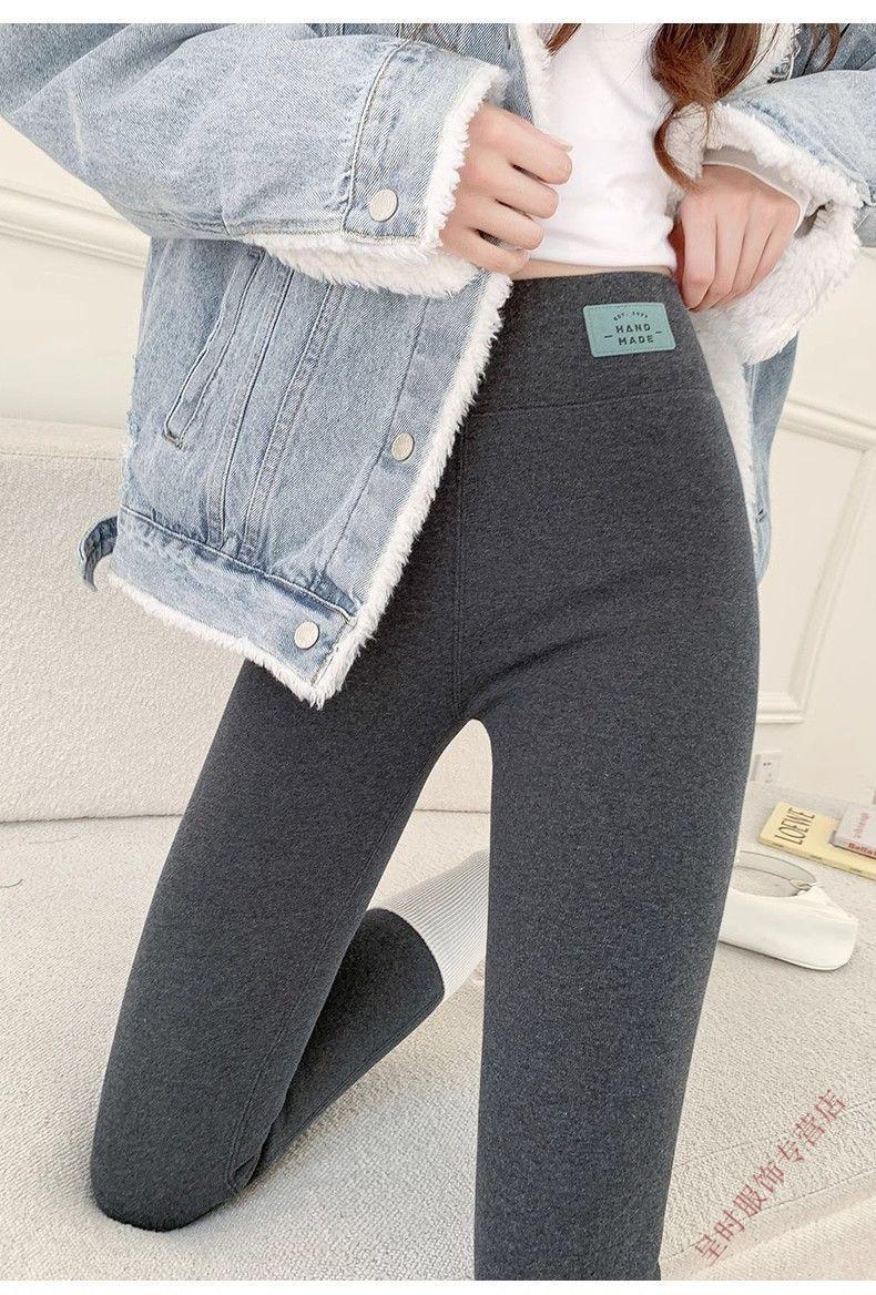 Extra thick lambswool leggings for women in winter, new style plus velvet, thickened high waist, tummy control, Northeast cold resistant warm pants, gray - regular style, baby fleece M, recommended 75-95Jin Jin is equal to 0.5kg