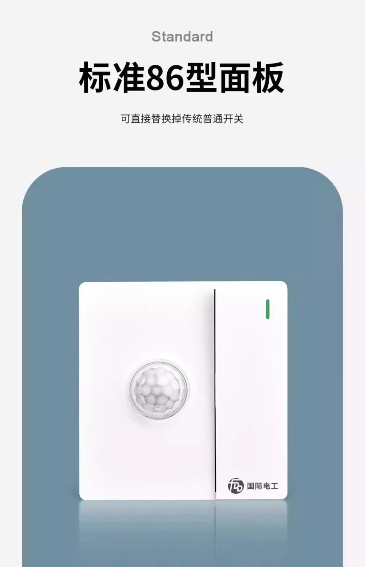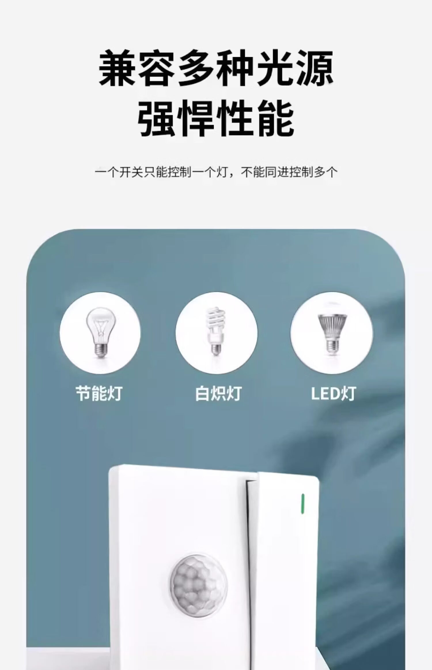 Type 86 one-open dual-control plus human body sensor switch with light control sensor plus switch panel intelligent delay white one-open with human body sensor + bright box