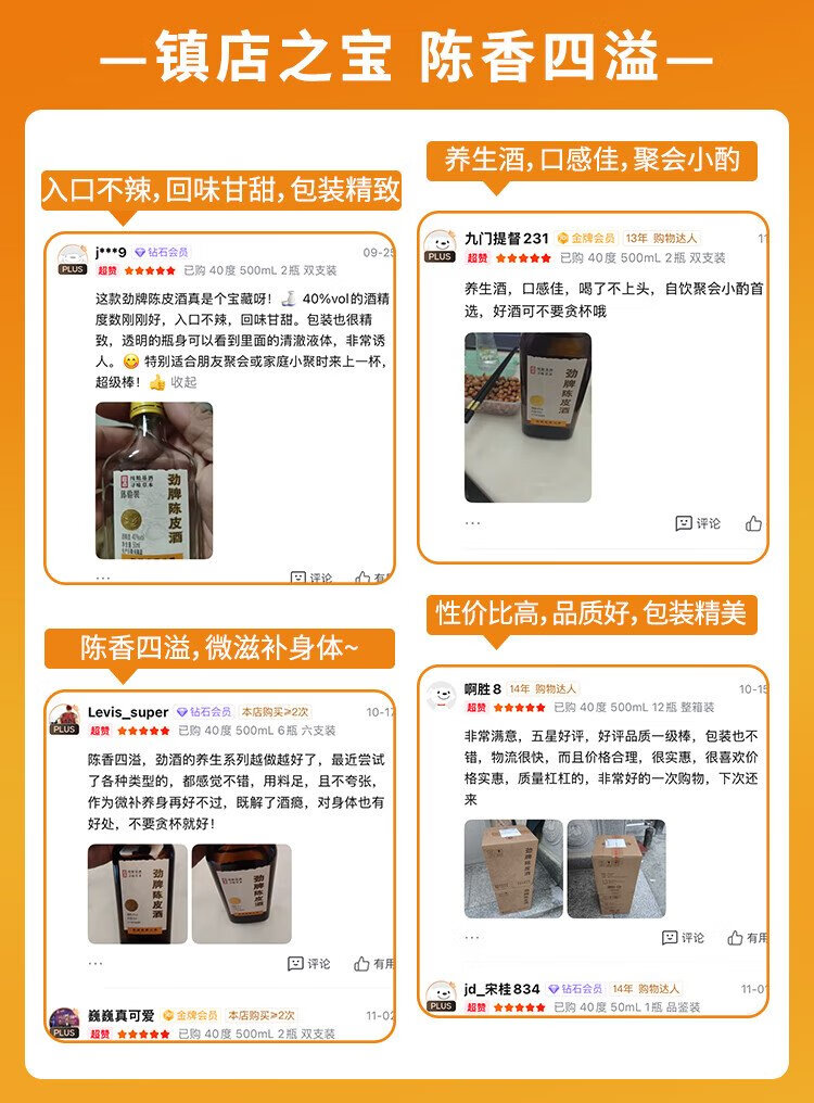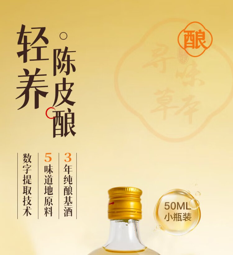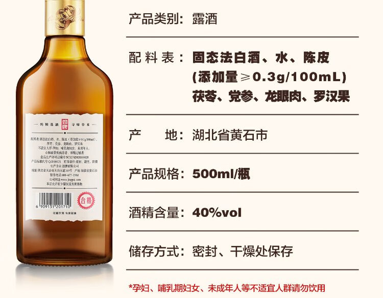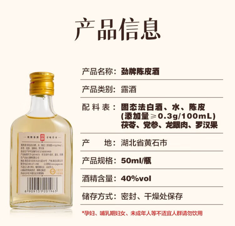 Jin brand Jinjiu tangerine peel wine 40% 50mL/500mL 5 flavors of local medicinal materials prepared wine health wine gift for elders 40% 500mL 1 bottle single bottle