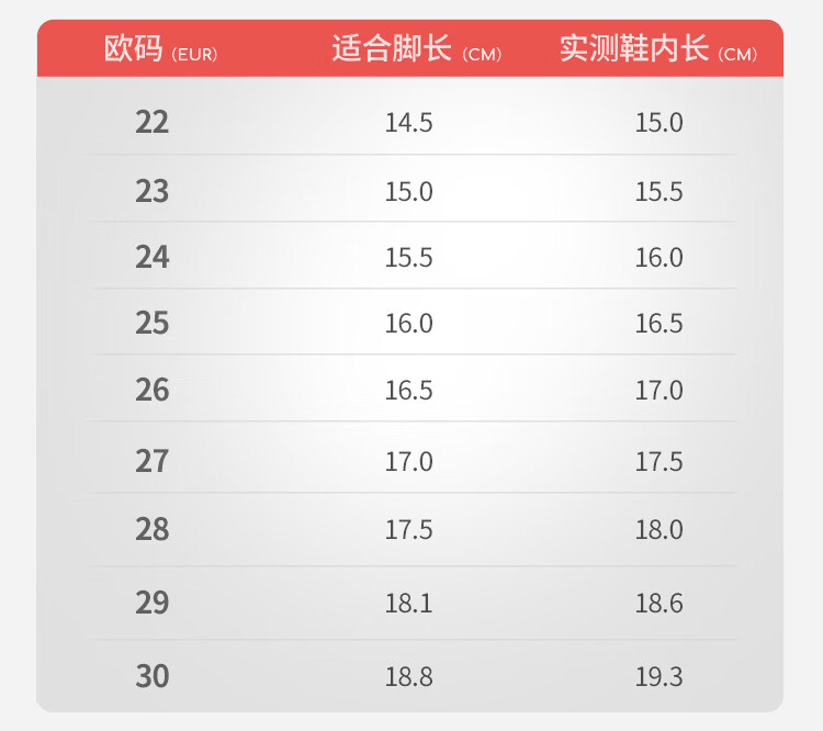 Length (cm) 22.8 23.1 23.5 24.1 24.5 25.1 25.7 26 26.7 27.3 27.9 28.6 29.2