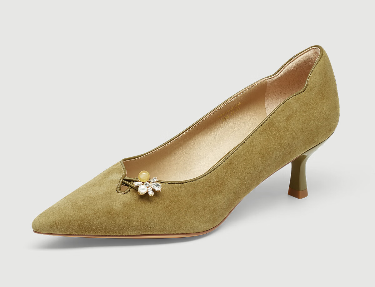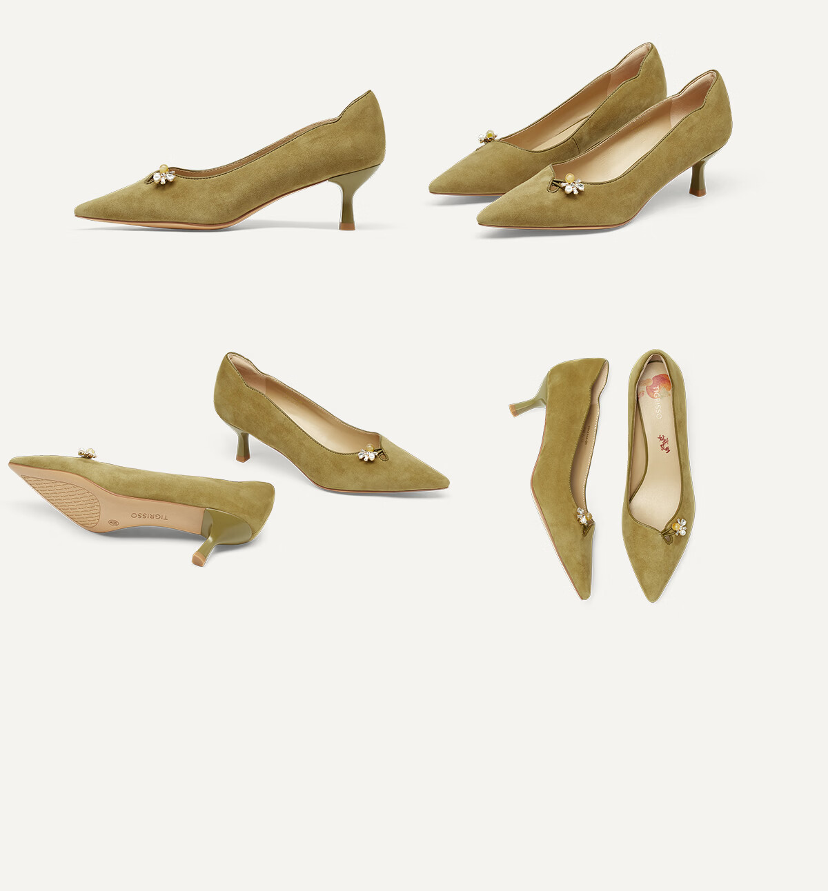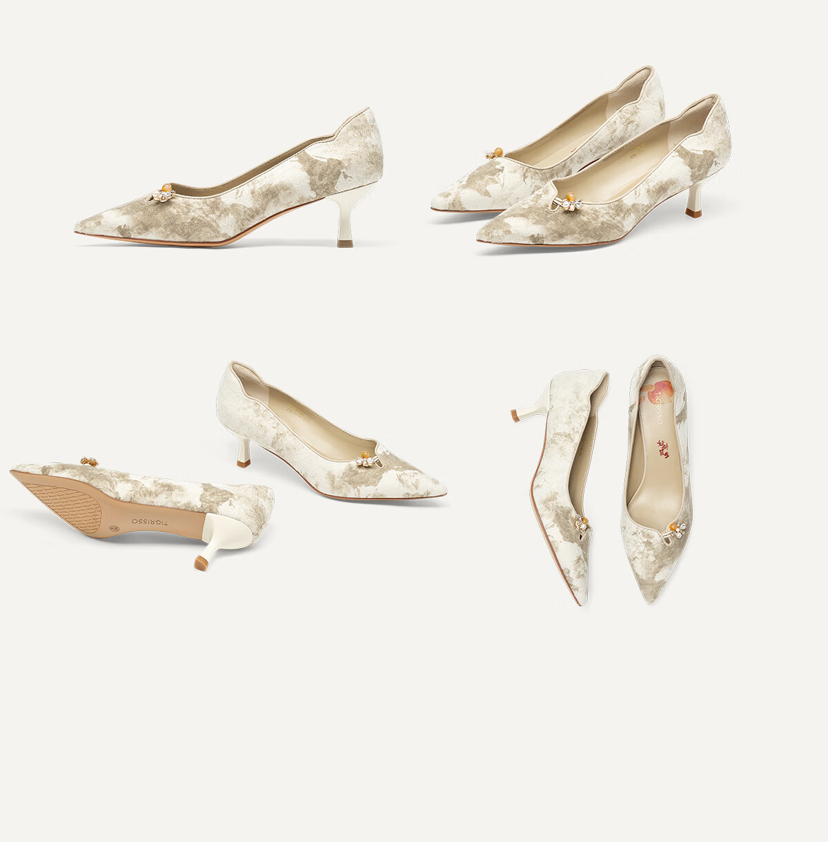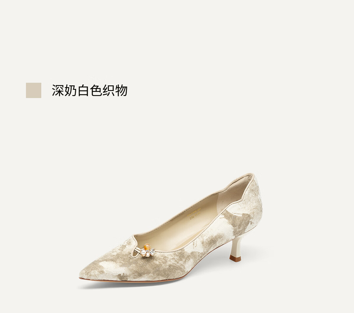 TIGRISSO New Year's Good Persimmon Peanut 26th Spring New Cashmere Temperament Single Shoes New Chinese Style High Heels T76116A-02 Dark Milk White Fabric 36