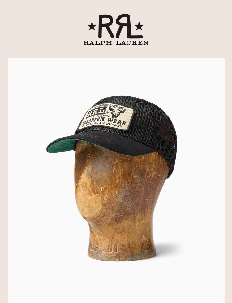 RRL Unisex 26 Spring Denim Visor Mesh Trucker Hat RL95628 001-Black ONE