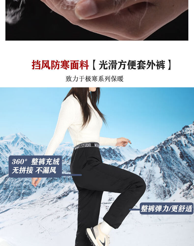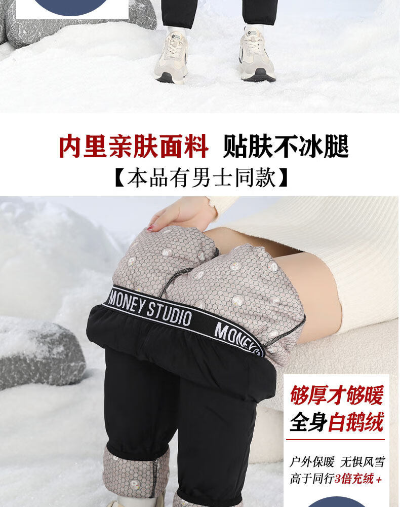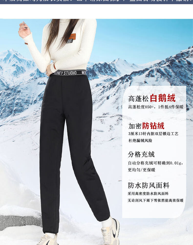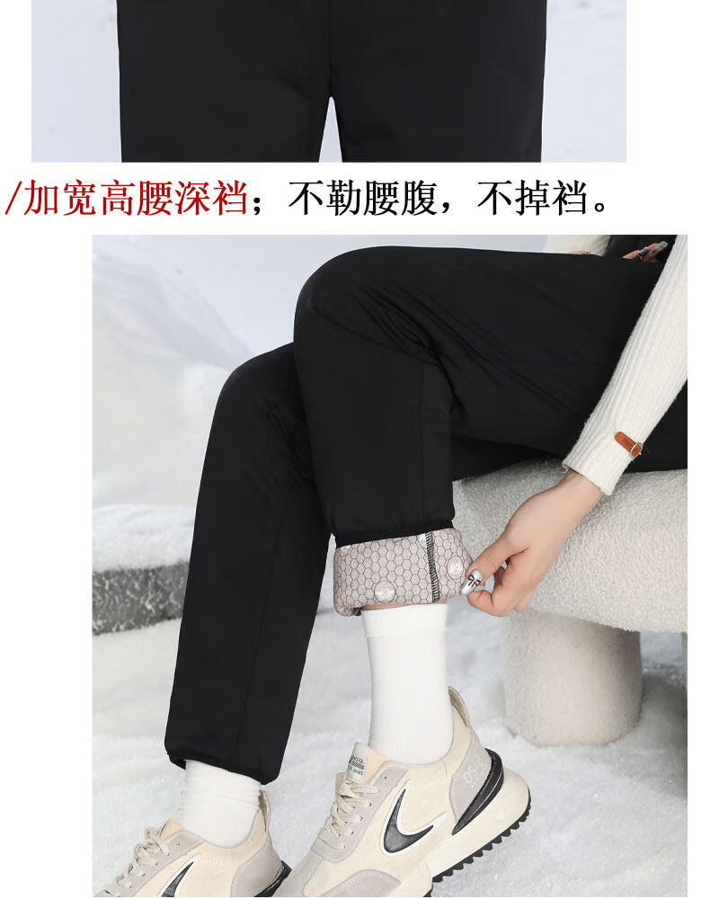 Woodpecker inner wear down pants for middle-aged and elderly women in winter, plus velvet and thickening, Northeast cold-proof cotton pants, elastic bottoming, goose down lining, black A S