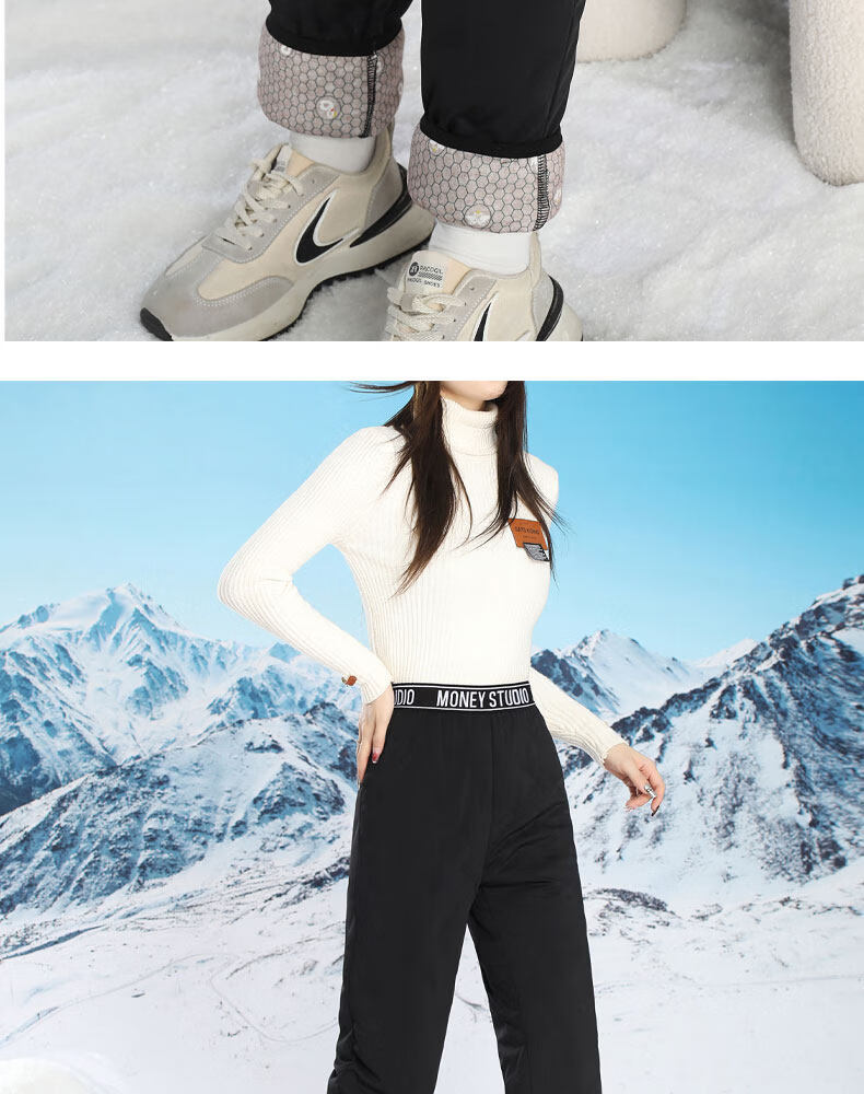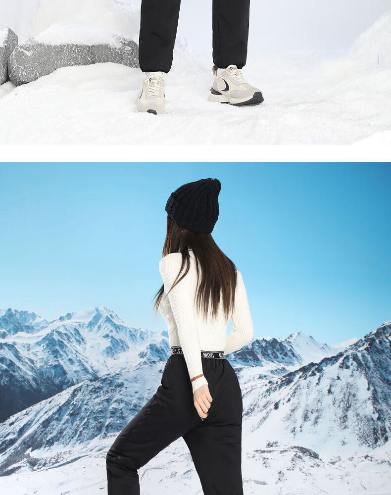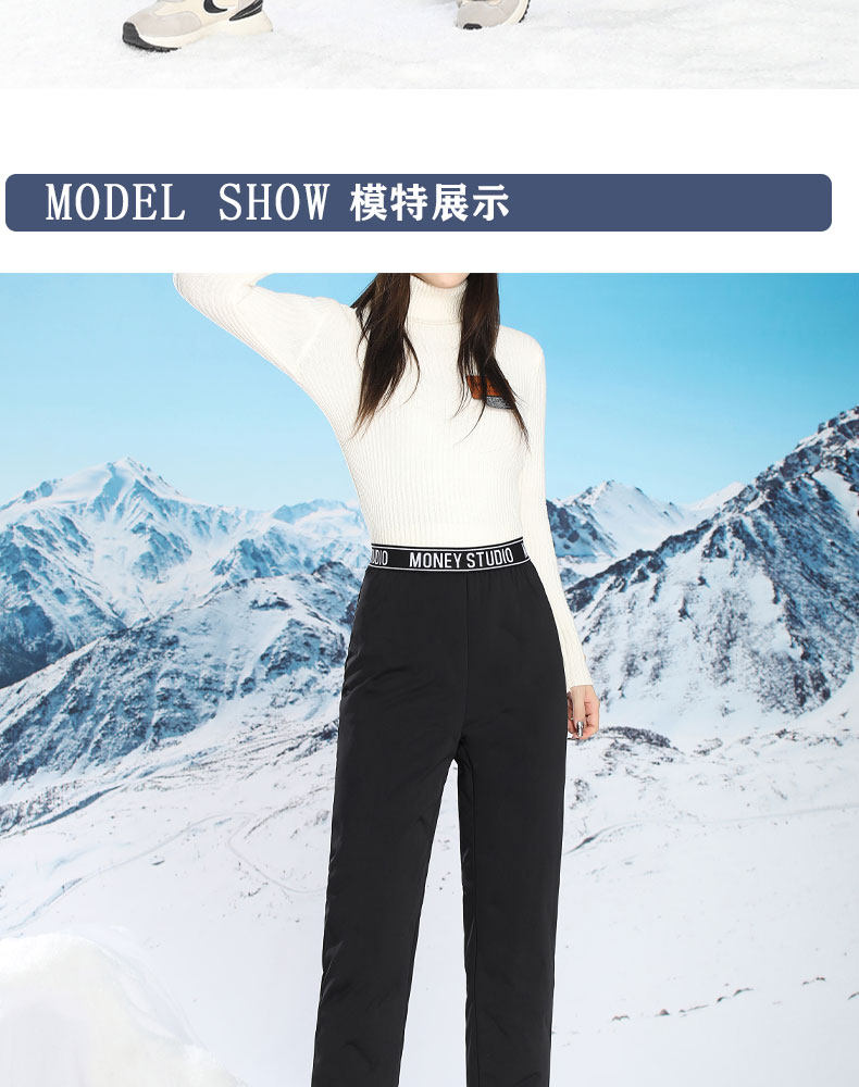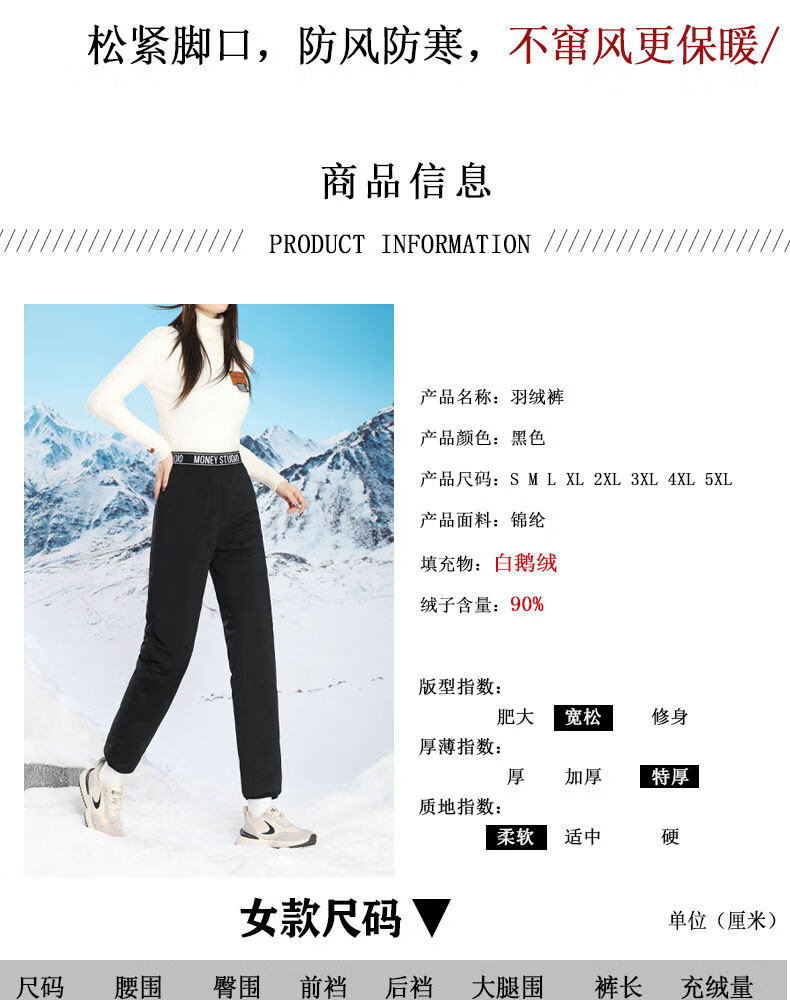 Woodpecker inner wear down pants for middle-aged and elderly women in winter, plus velvet and thickening, Northeast cold-proof cotton pants, elastic bottoming, goose down lining, black A S