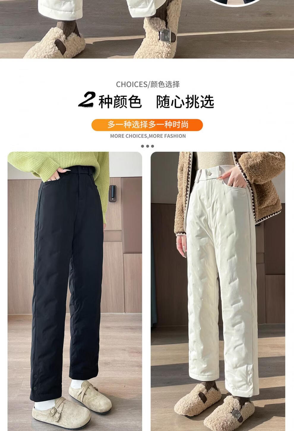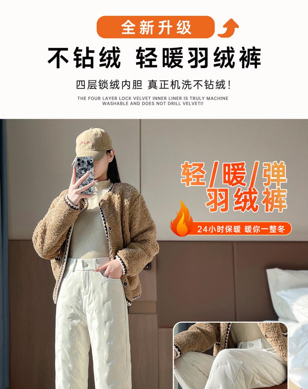 Woodpecker Black Down Pants Women's Outerwear 2025 New Fashion Winter Thickened Warm and Coldproof Cotton Pants Outerwear White S Recommended 80-95Jin Jin equals 0.5 kg