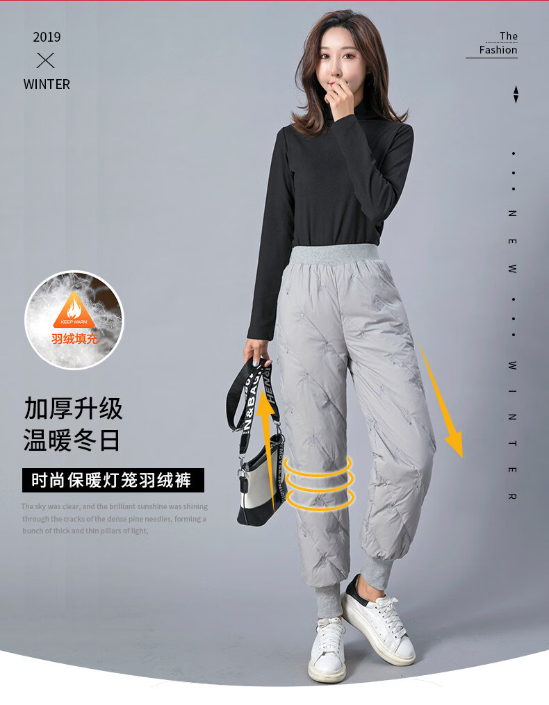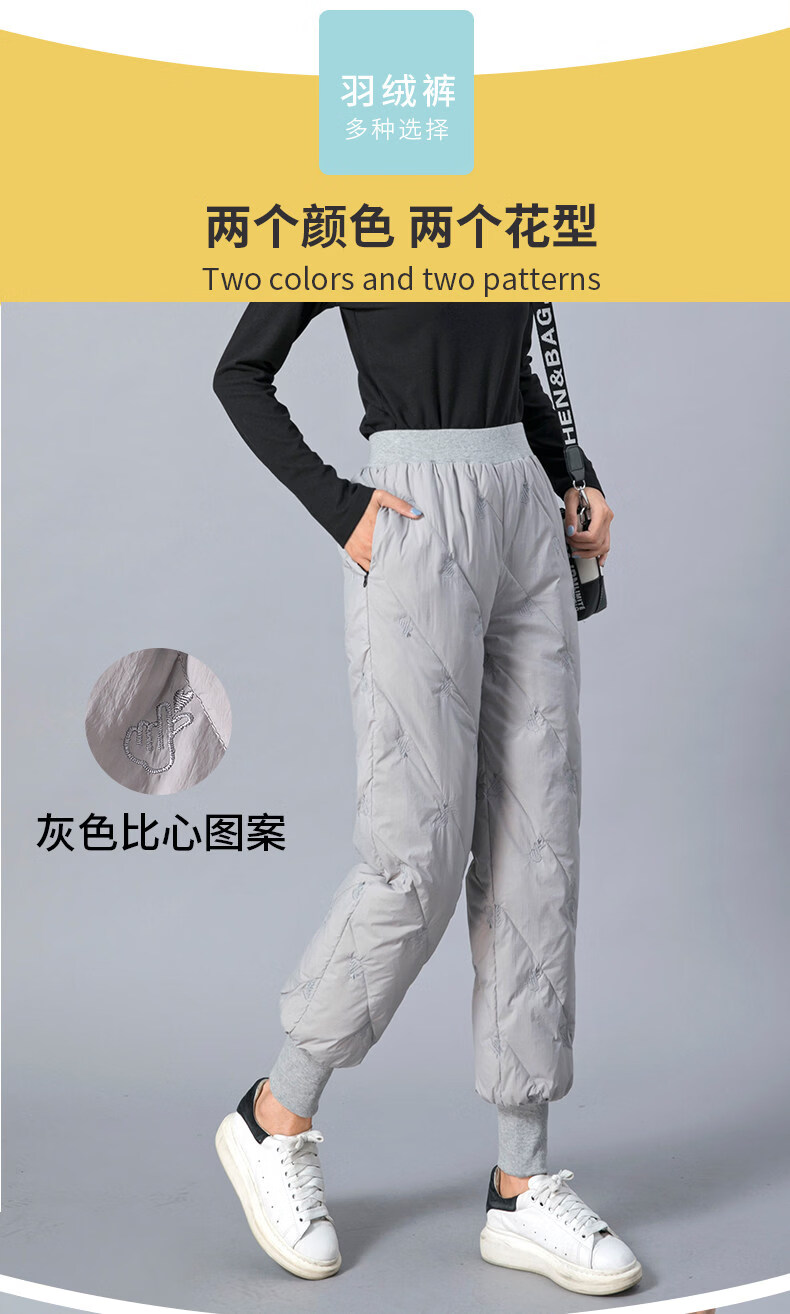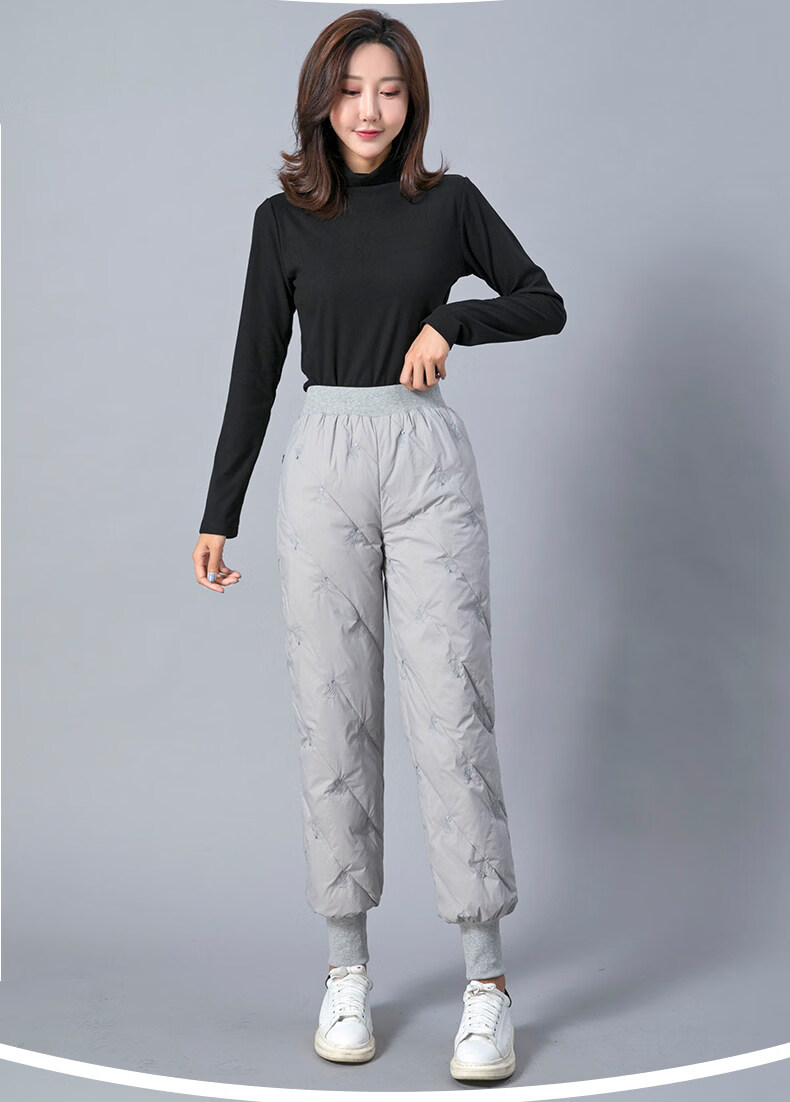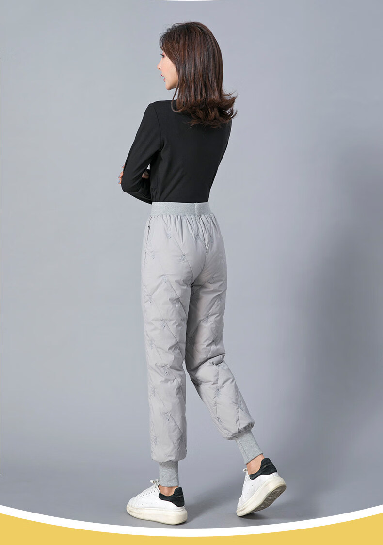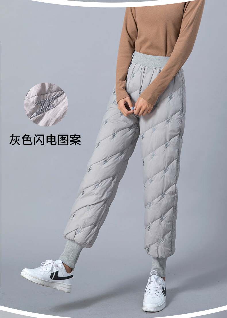 Woodpecker Down Pants Women's Outer Wear High Waist Thickened White Duck Down Slim Fit Bloomers Warm Casual Down Cotton Pants Winter Gray Lightning Pattern (Collection Gifted) M 85-110Jin Jin is equal to 0.5 kg