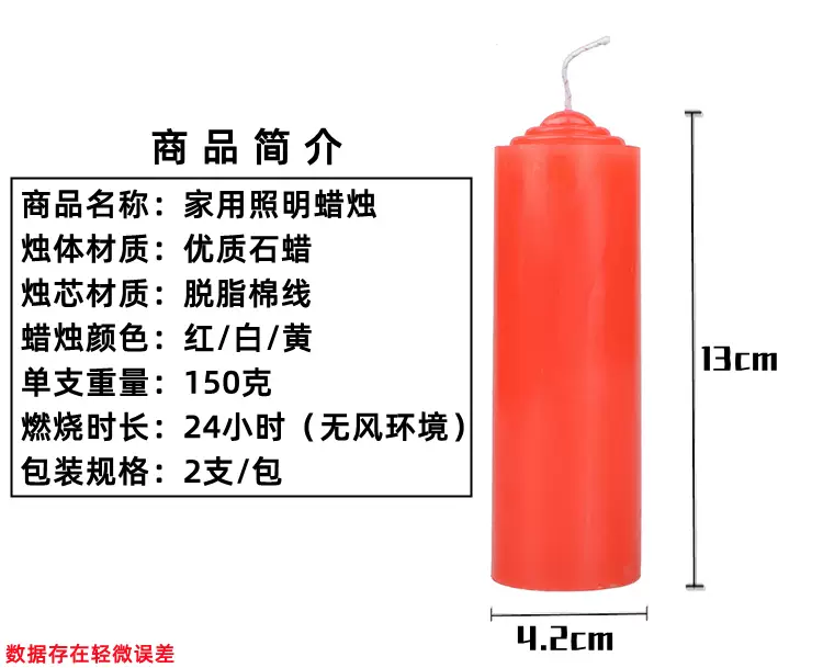 Yusenyi tasteless smoke-free holiday candle for blackout lighting for Buddha yellow thick cylinder burning red and white long-lasting flame-resistant family 6 red diameter 4.2 long 13cm