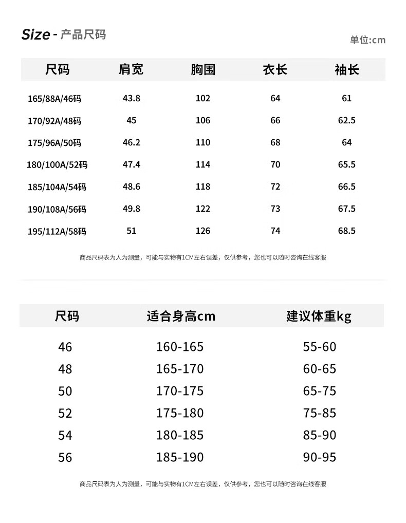Size (cm) 42 44 46 48 50
