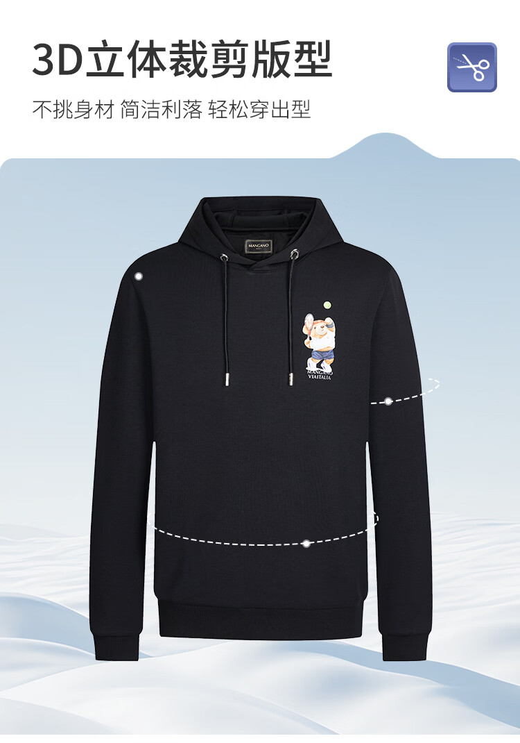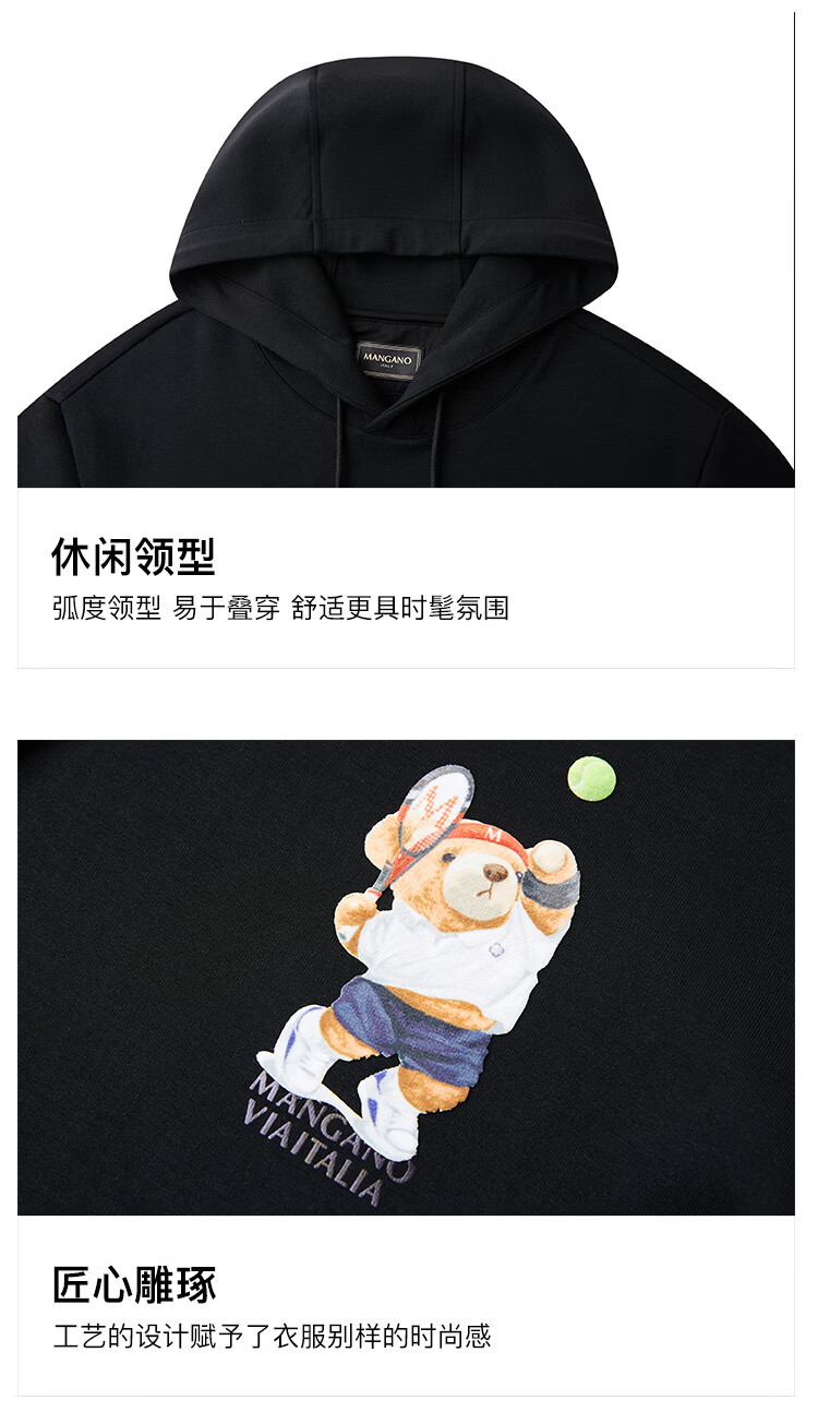 MANGANO high-end brand men's sweatshirt fashion hooded long-sleeved T-shirt luxury men's pullover outer top men's jacket white (double-sided bear pattern) XL (180/100A)