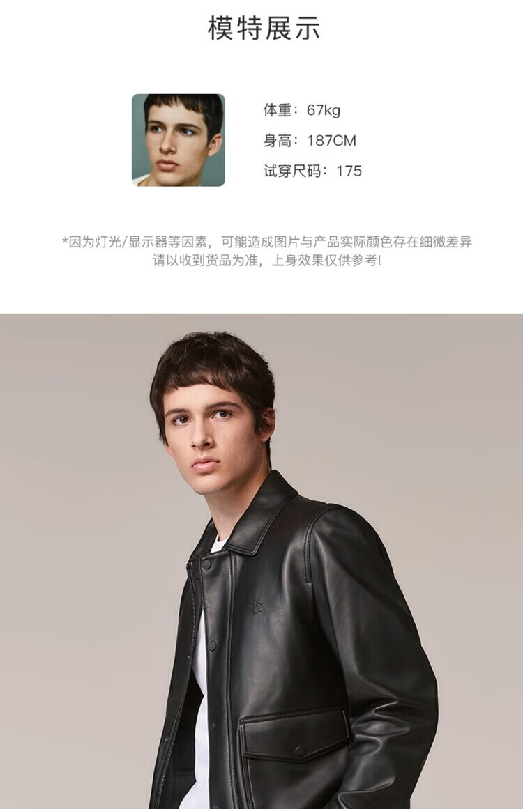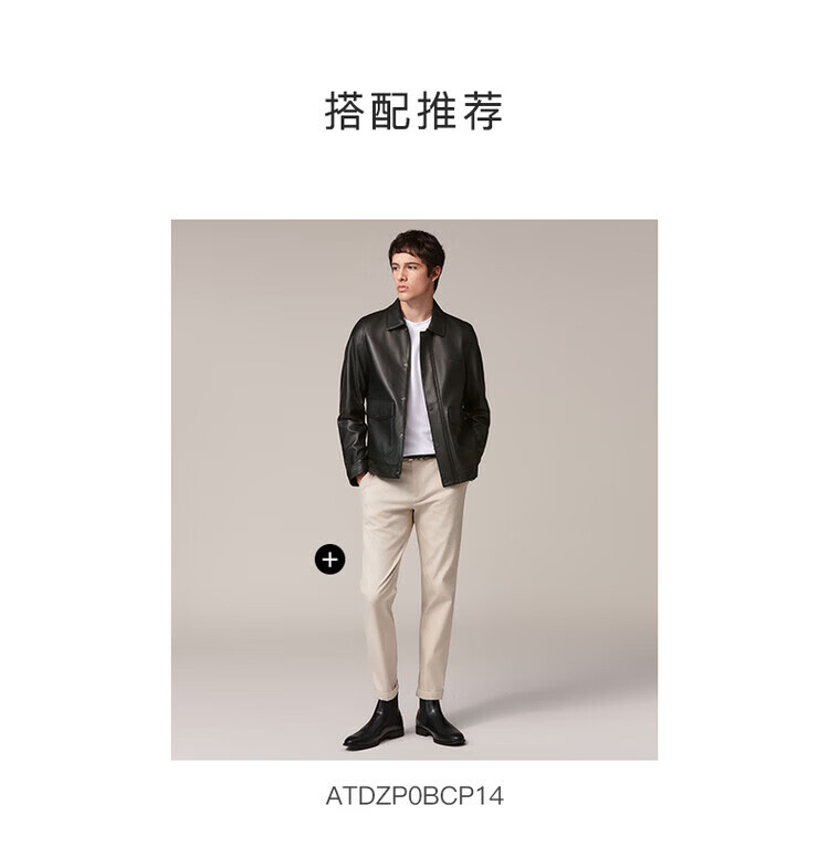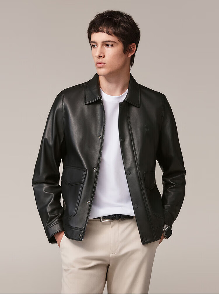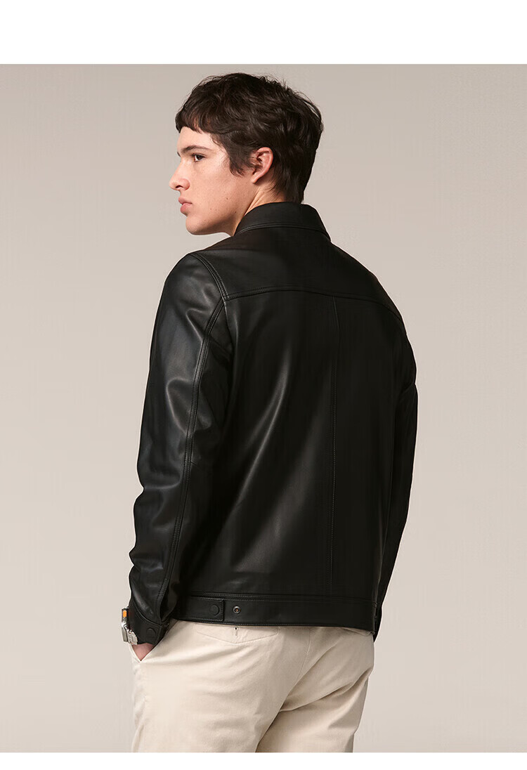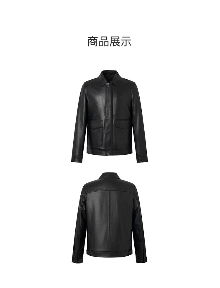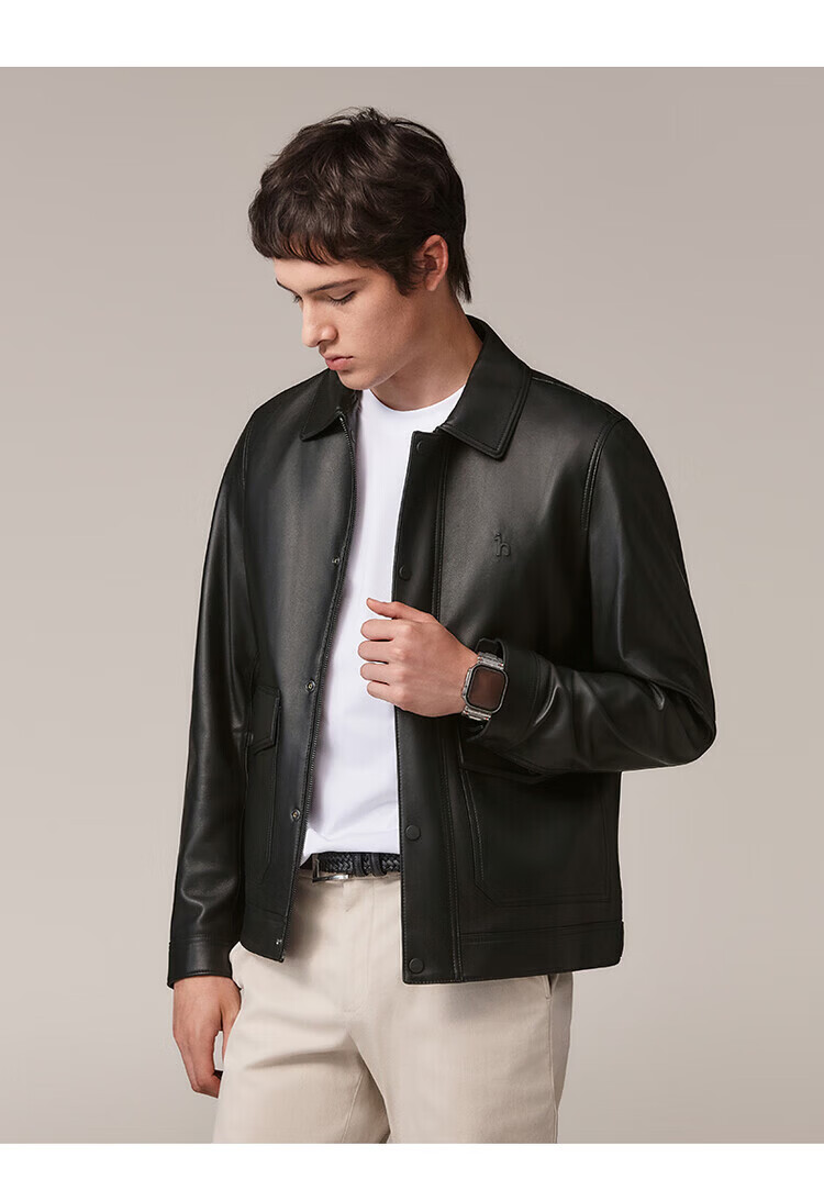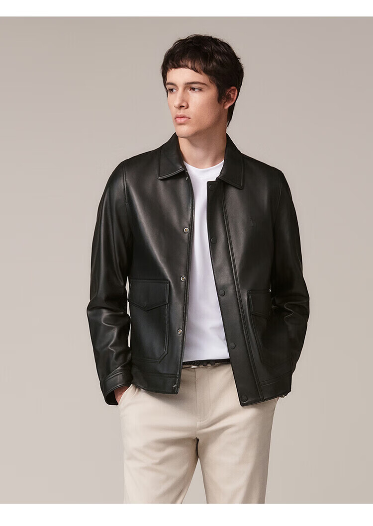 HAZZYS Autumn Selection Casual Commuting Leather Jacket Solid Color Long Sleeve Jacket Wide Lapel Top Black One Size 190/112A 56