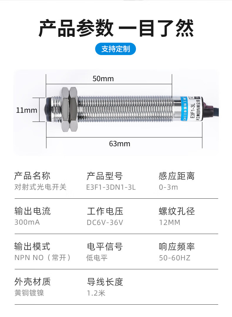 Hugong through-beam photoelectric switch E3F1-3DN1-3DN2-3DP1-3DP2-3L M12 E3F1-3DN2-3L